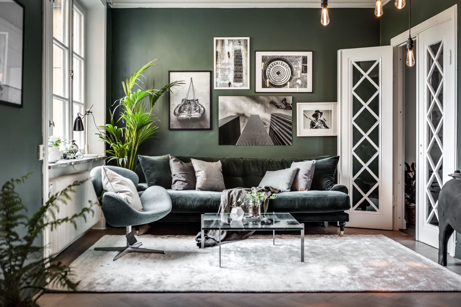 Гостиная с изумрудным диваном