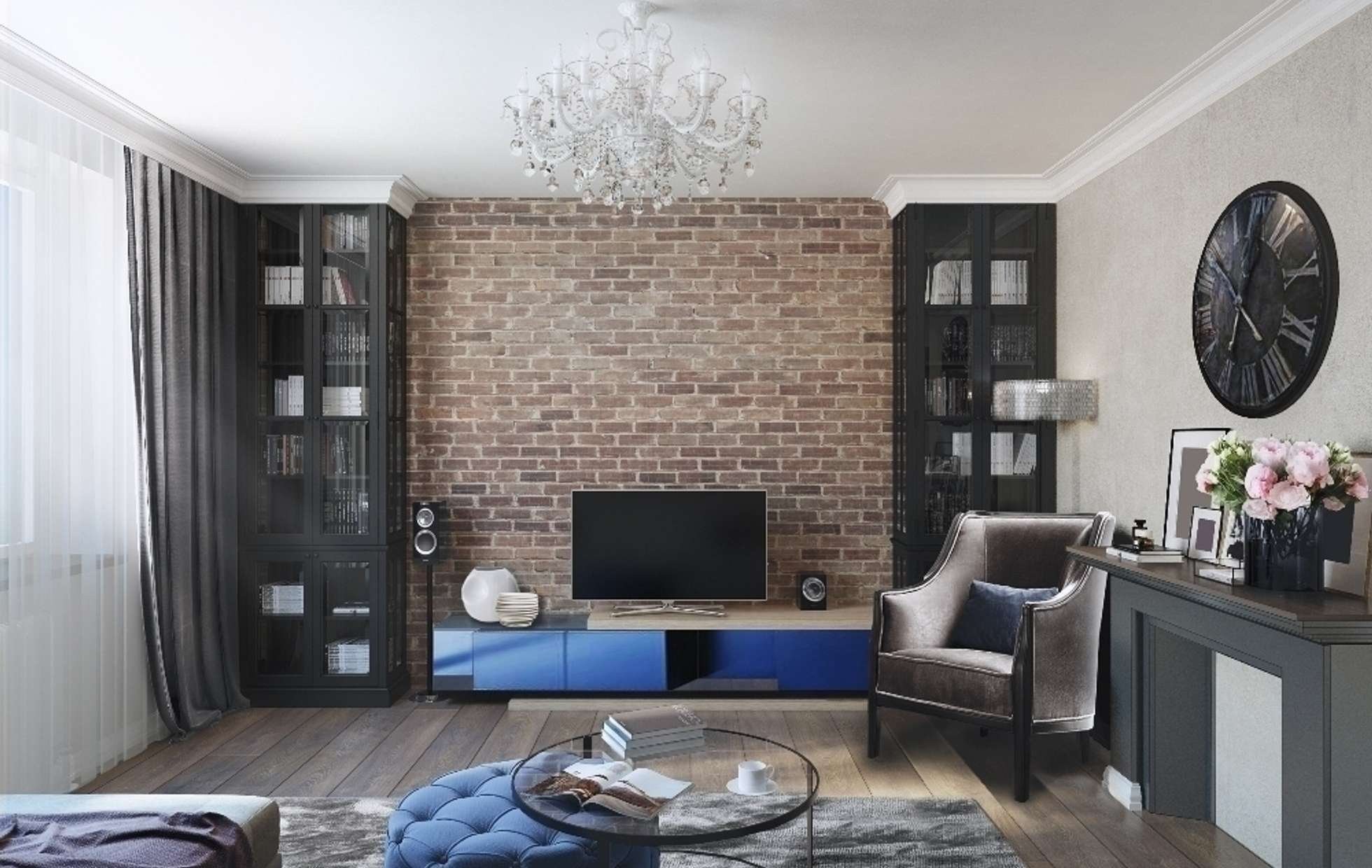 Кирпичная стена в интерьере