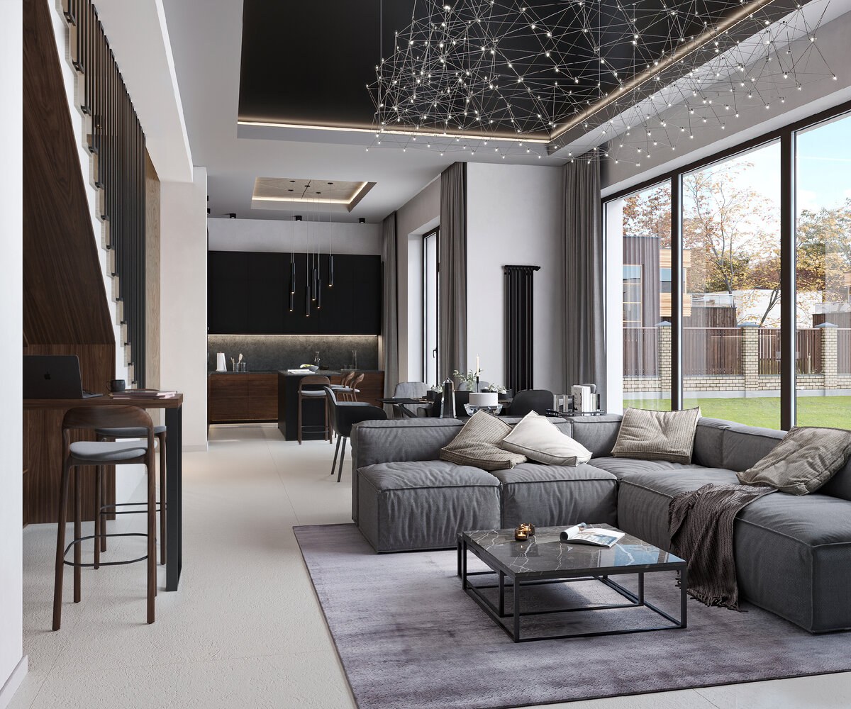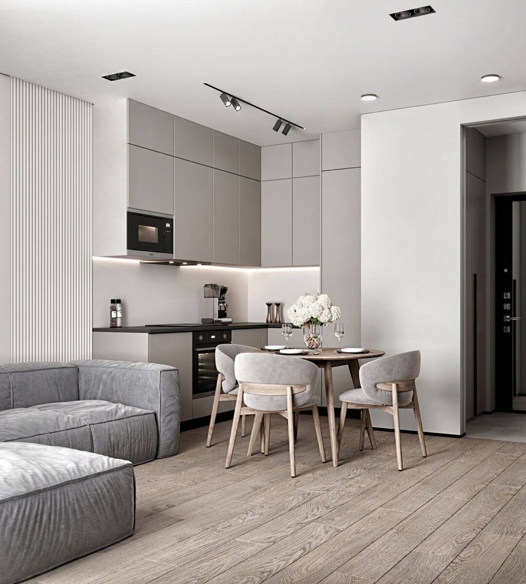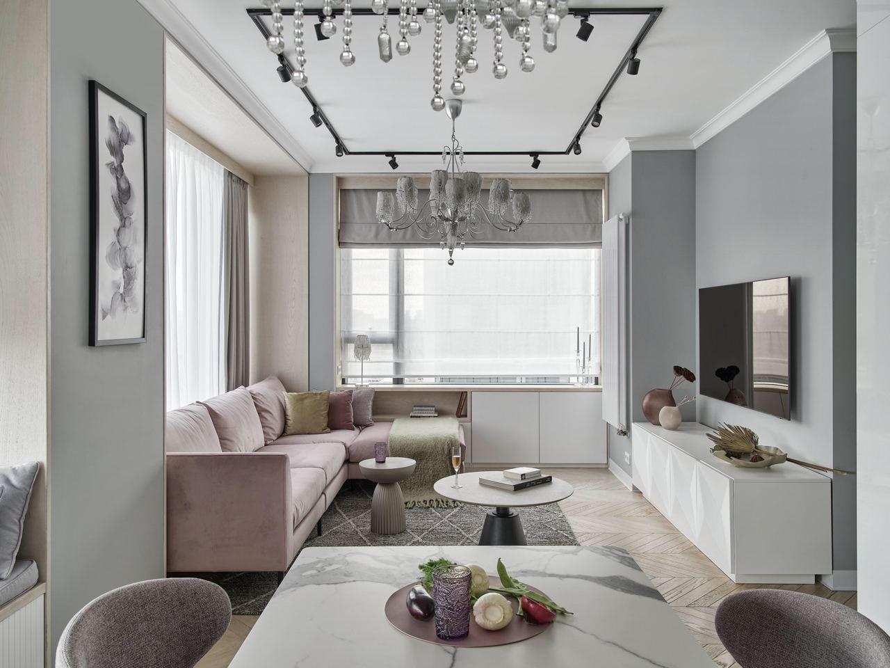 Кухня-гостиная 30 кв.м с диваном планировка прямоугольная