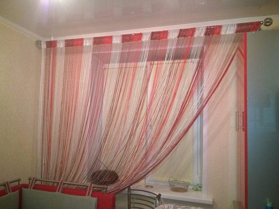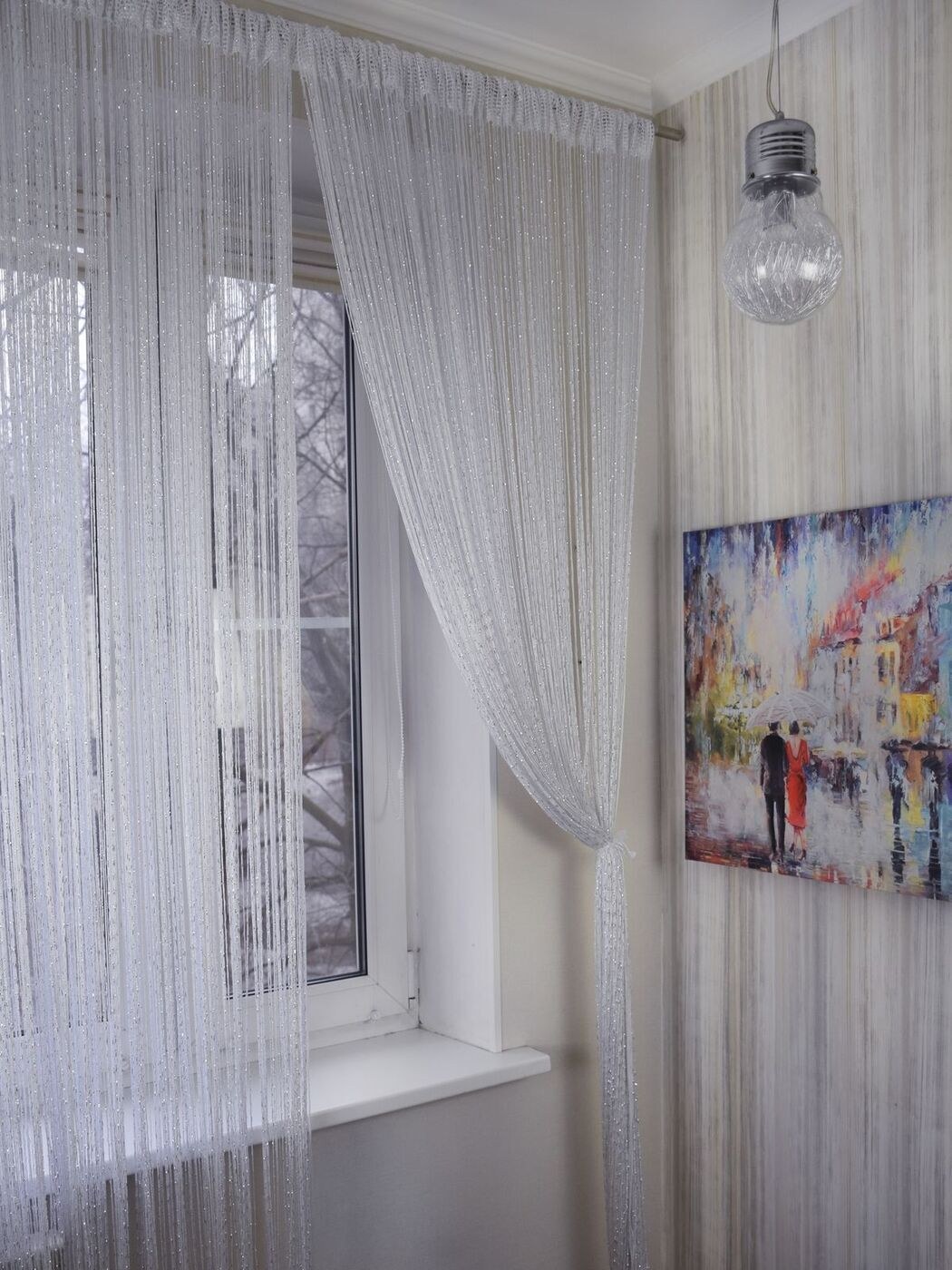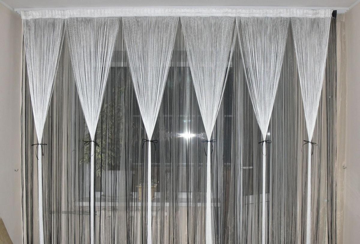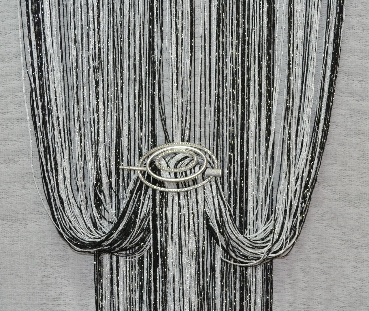 Кисея шторы нити блистер 9+111 (черные нити +белый Жемчужины )