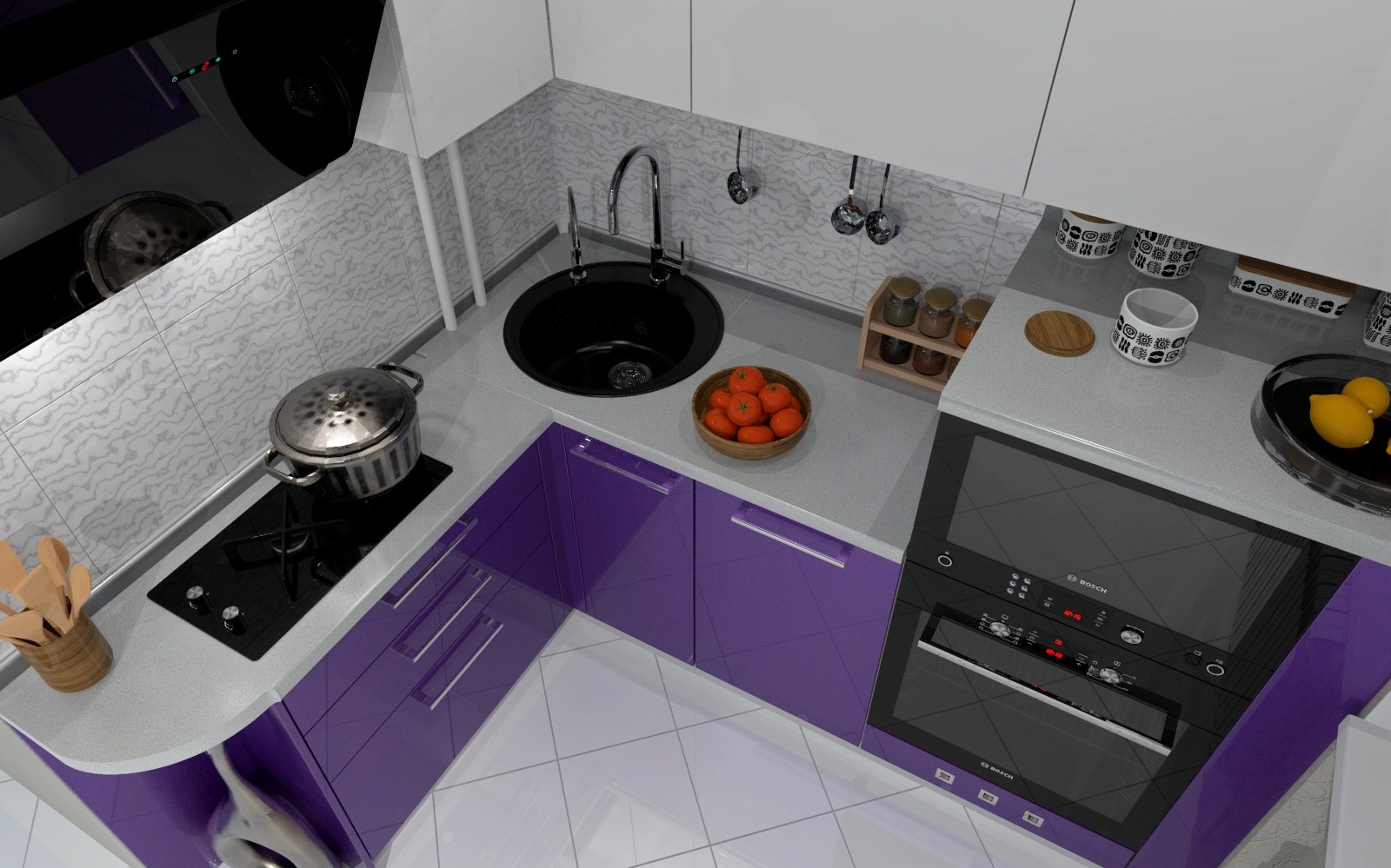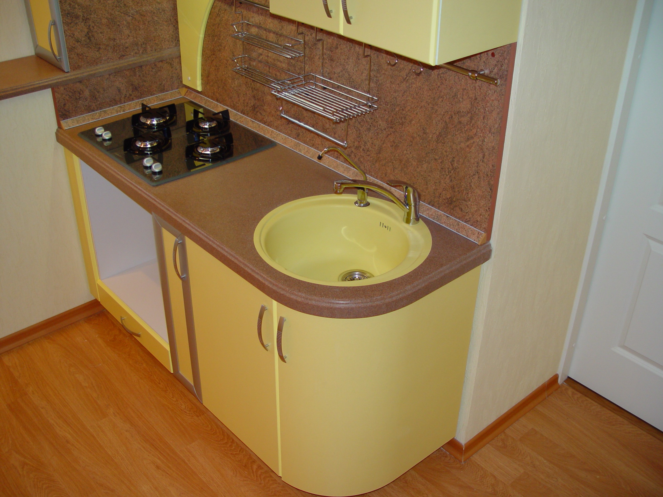 Кухонный гарнитур с угловой мойкой для маленькой кухни