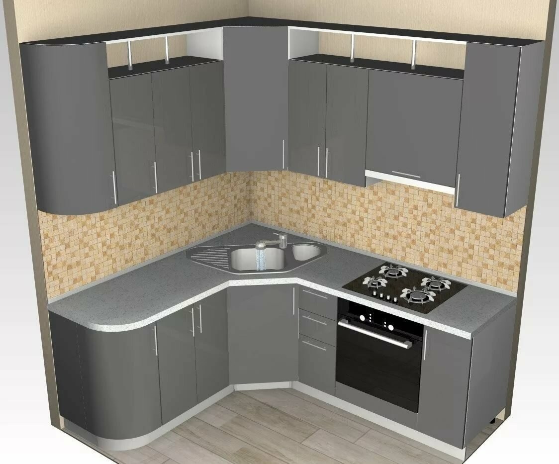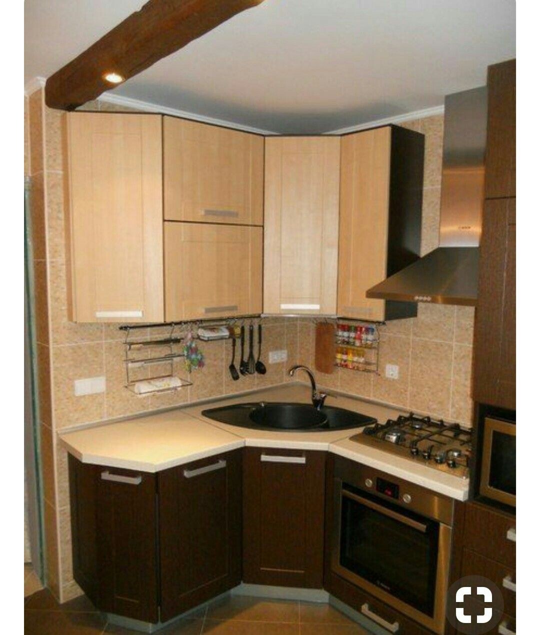 Угловая кухня с угловой мойкой для маленькой кухни