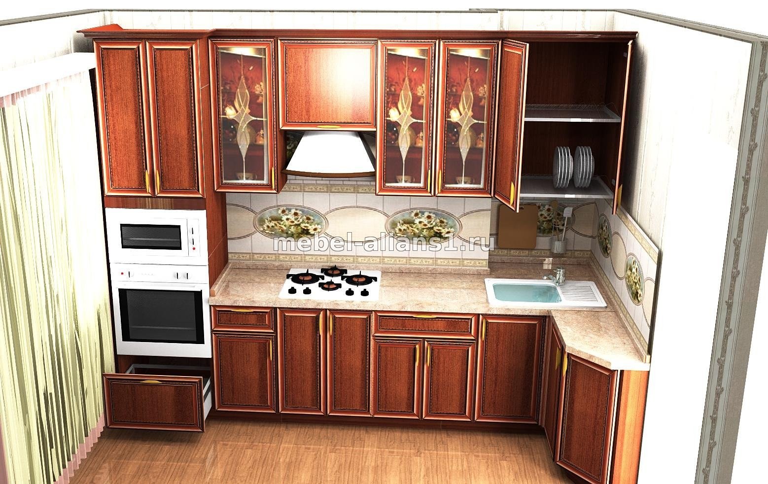 Кухонный гарнитур угловой с нишей