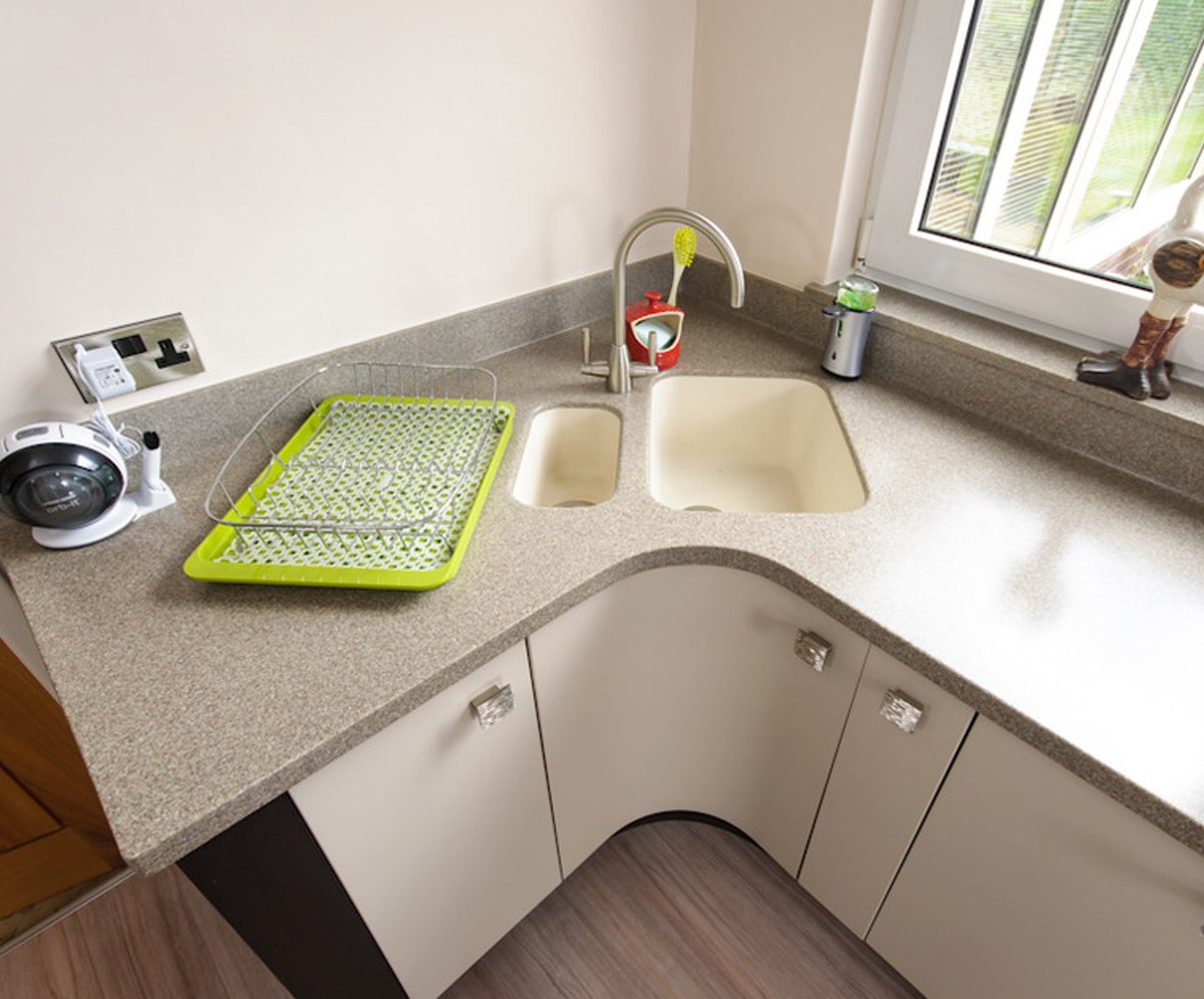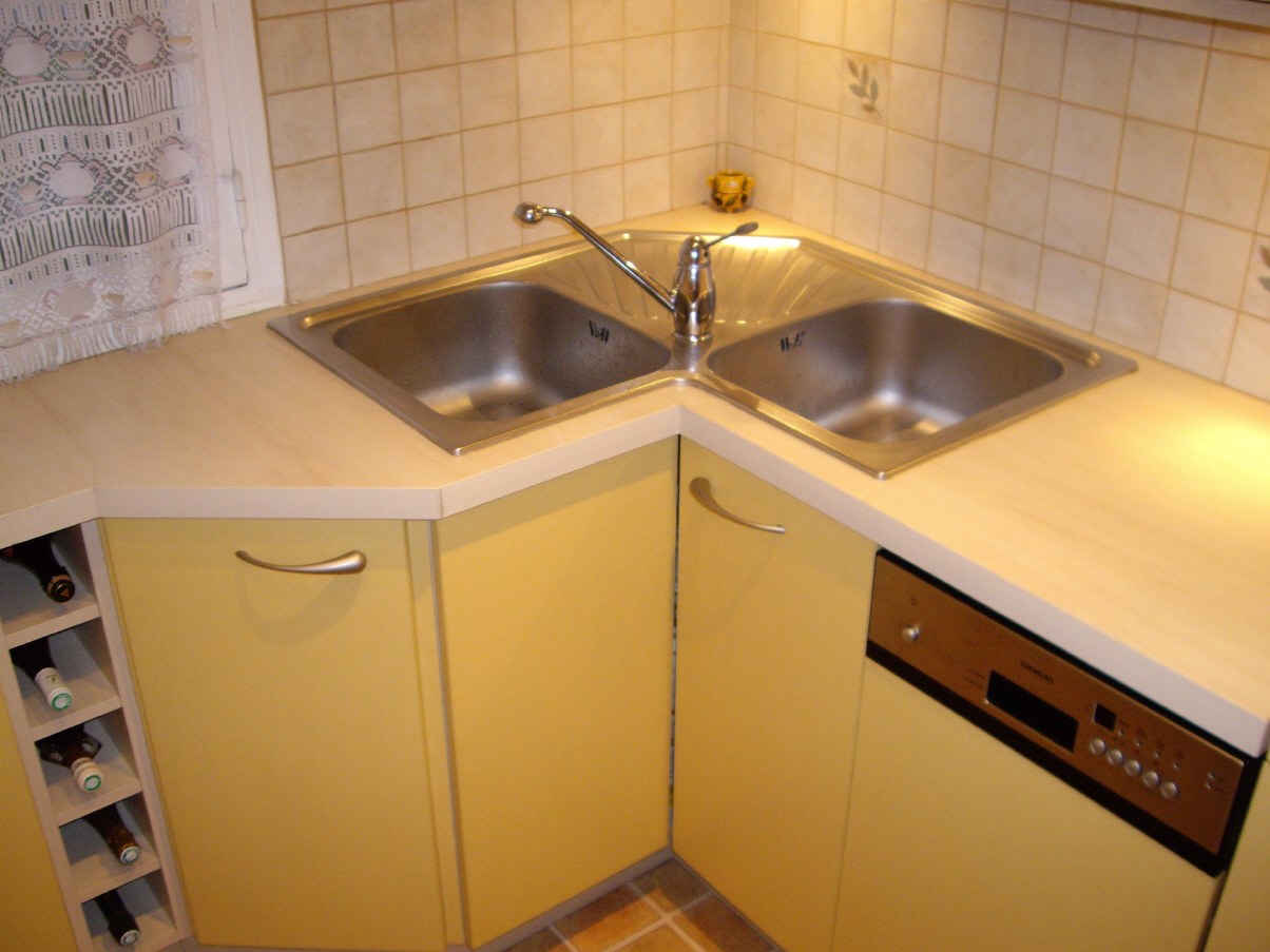 Мойка в углу кухни