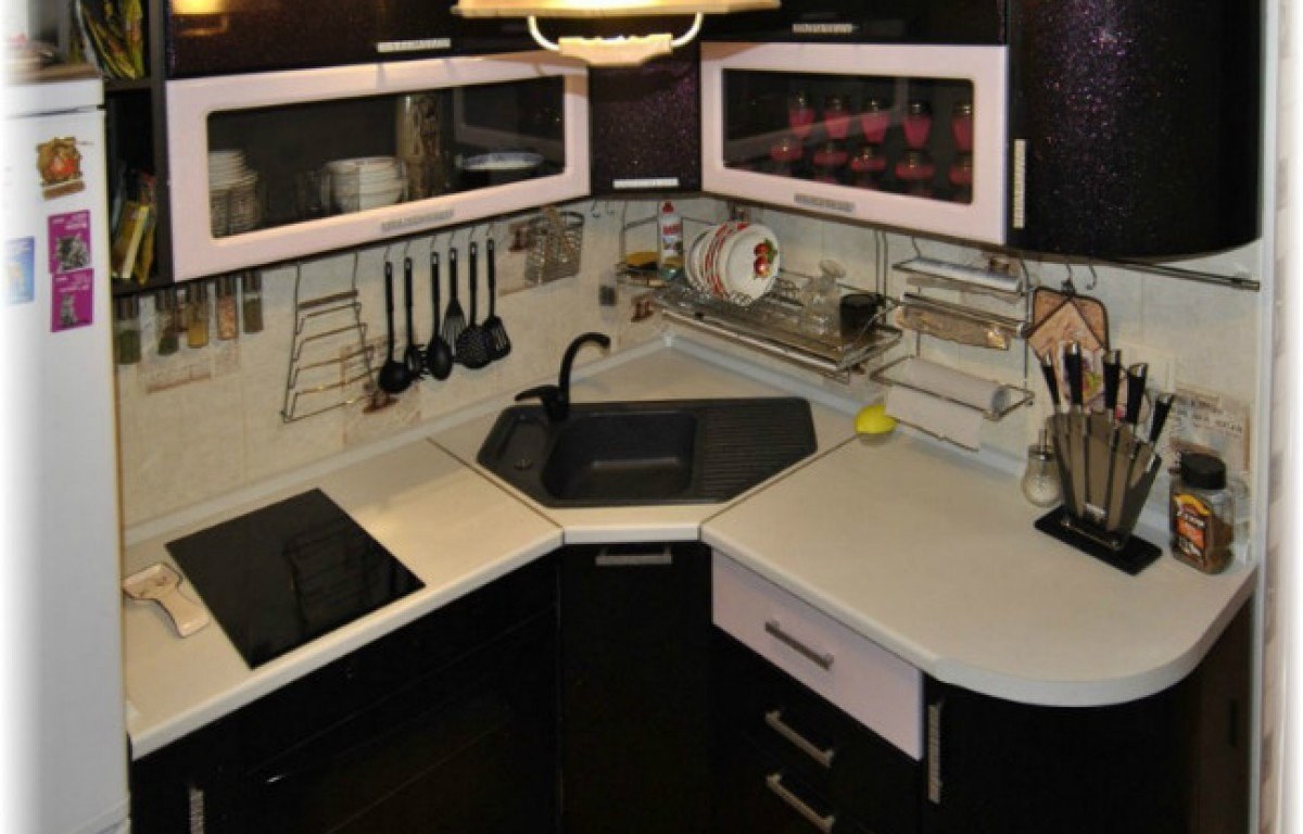 Маленькая угловая кухня с угловой раковиной (94 фото)