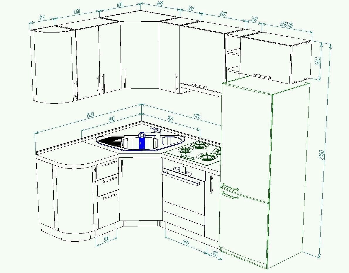 Кухни для хрущевок 2000мм на 1600мм чертежи