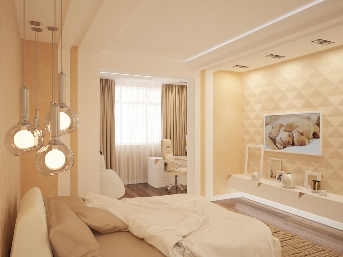 Бежевый интерьер спальни