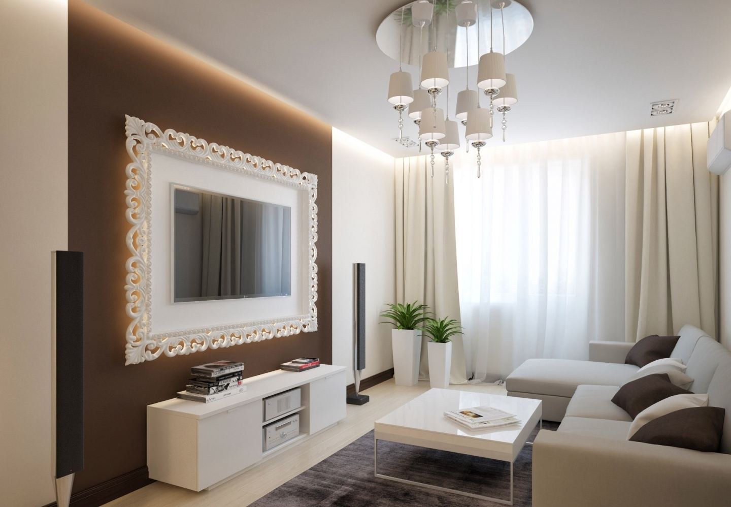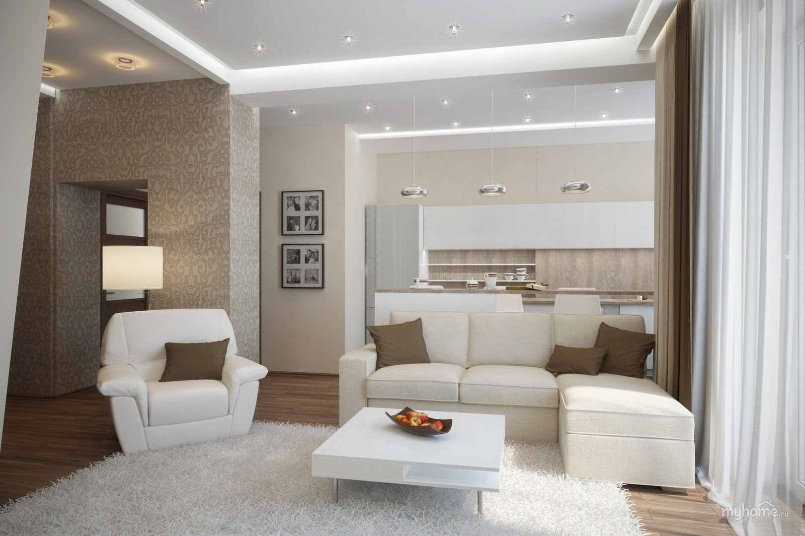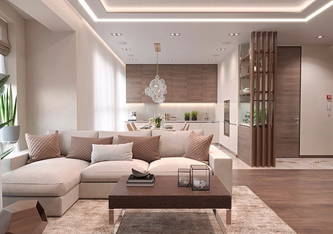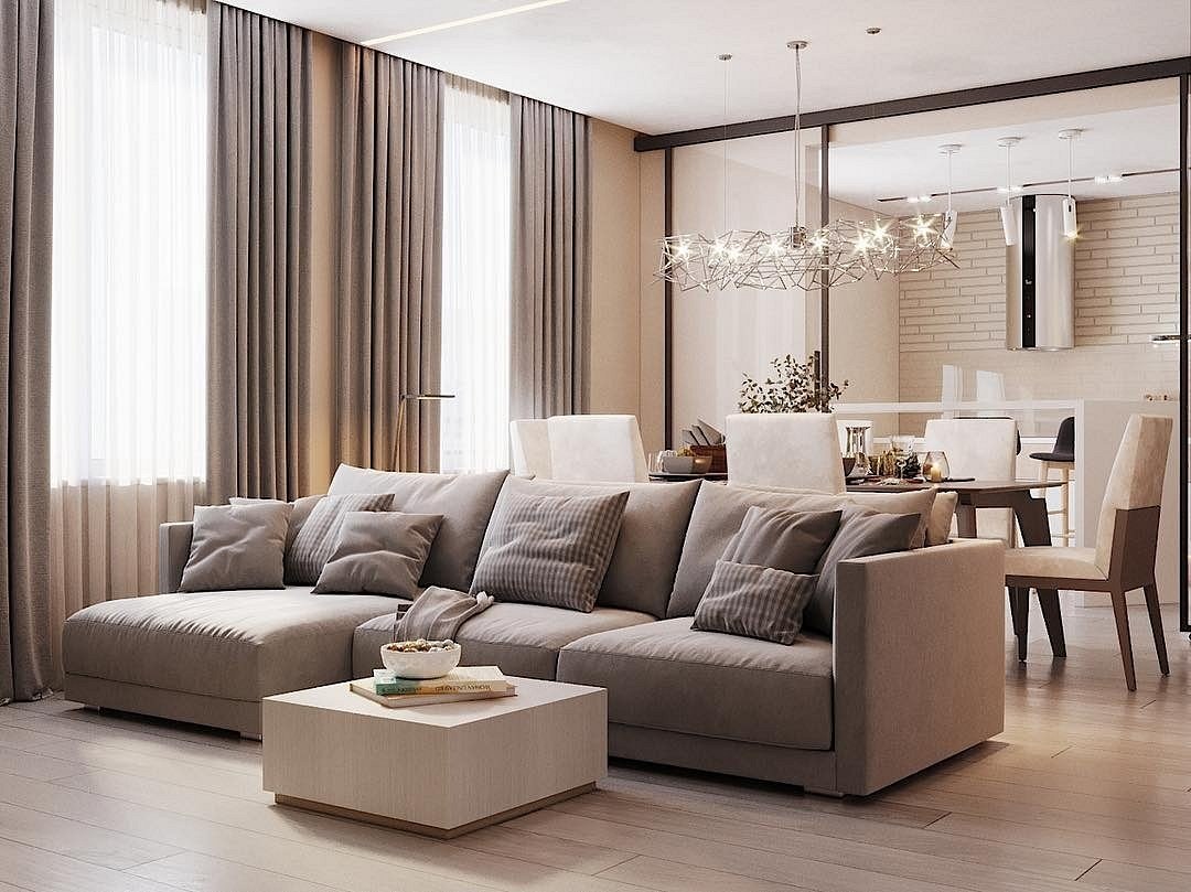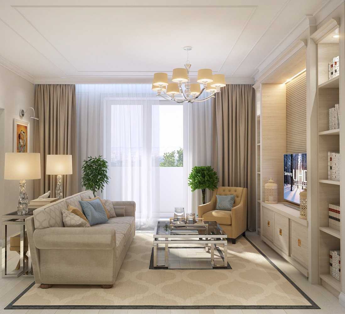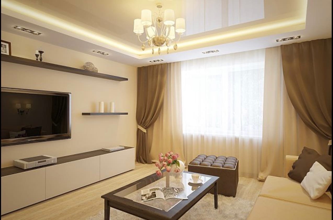Интерьер гостиной 18кв м в бежевых тонах