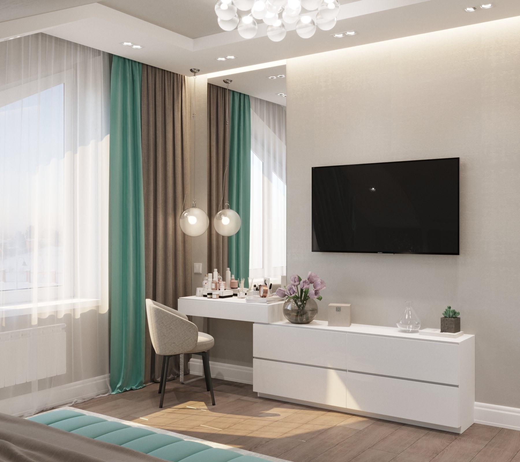 Гостиная в бежево бирюзовом цвете