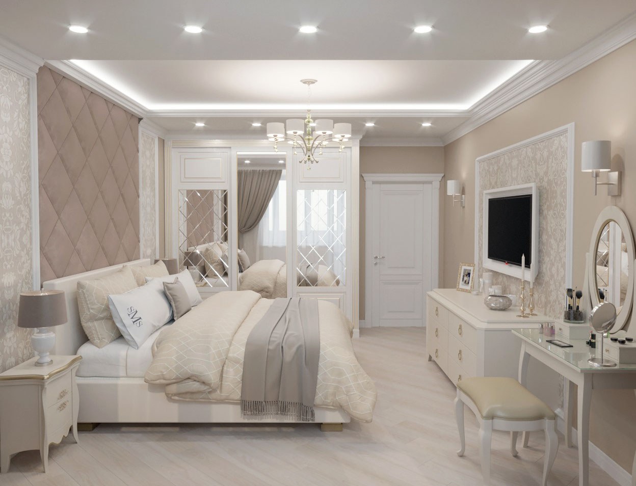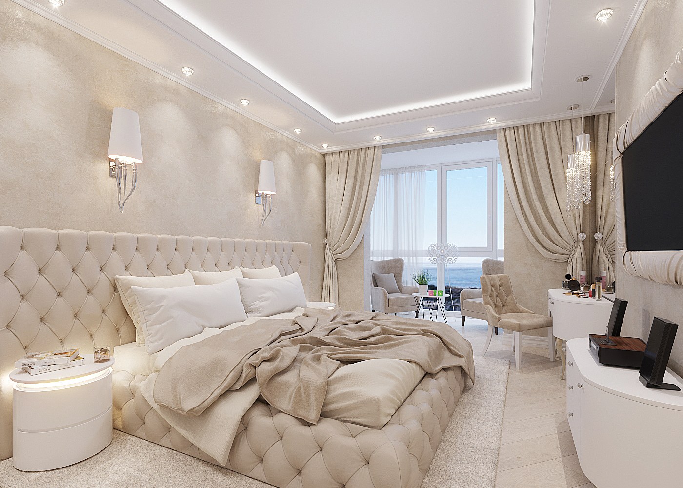 Спальня в бело бежевых тонах