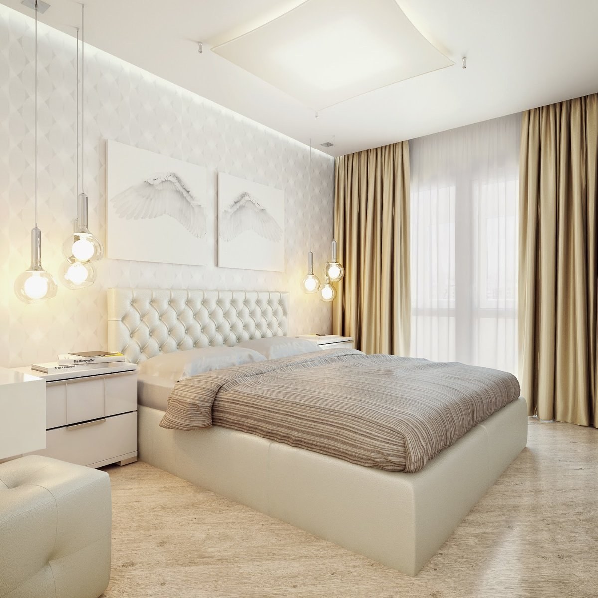 Бело бежевая спальня