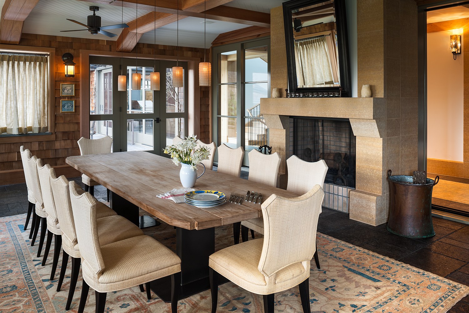 Столовая с камином в частном доме