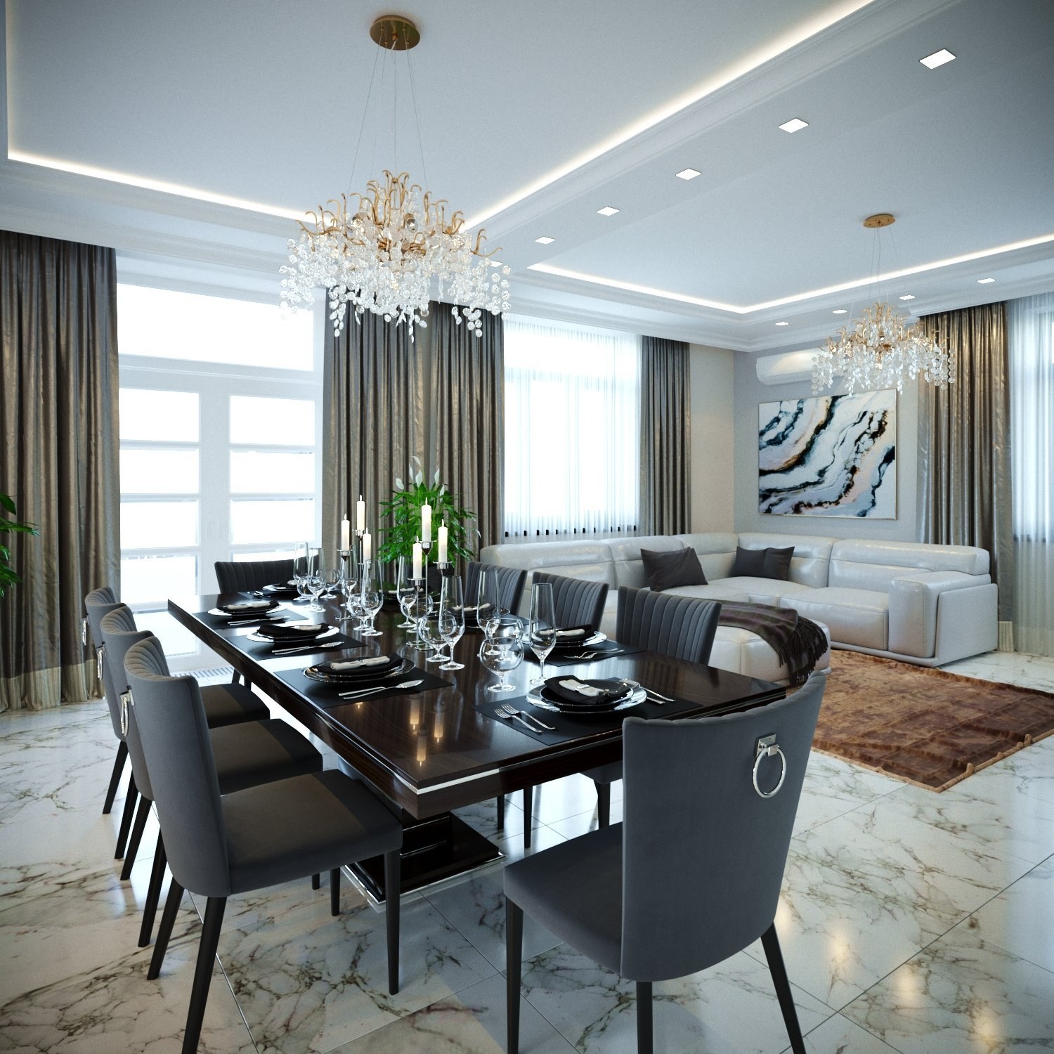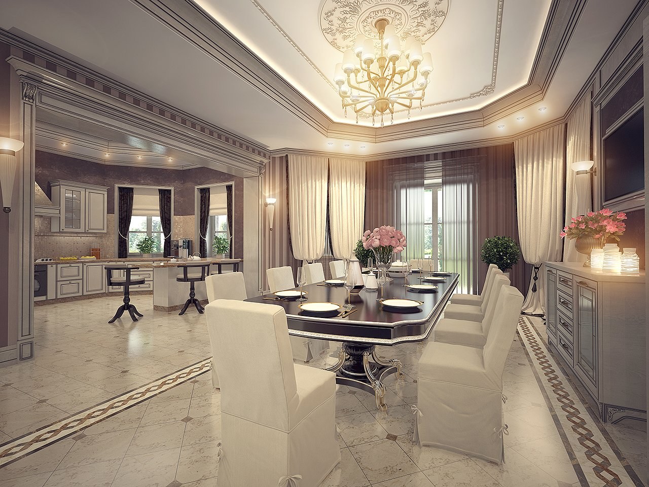 Гостиная-столовая в классическом стиле