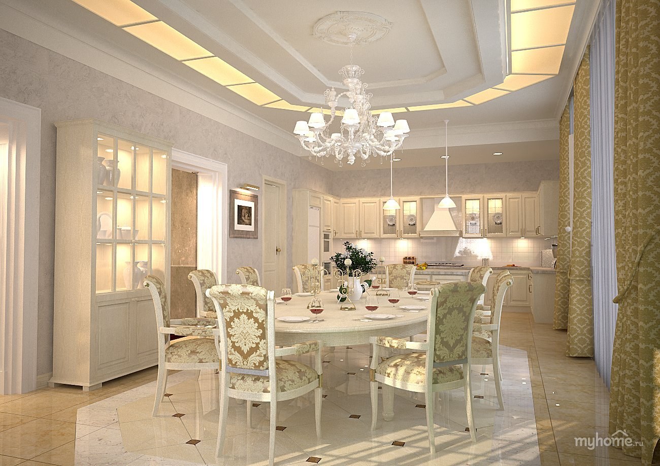 Большая столовая в частном доме (95 фото)