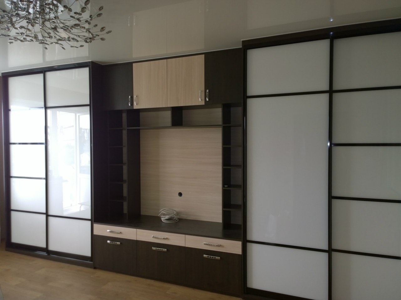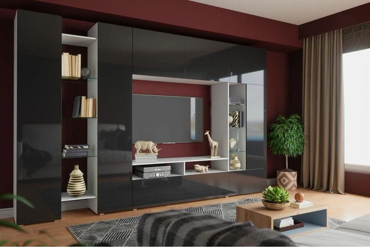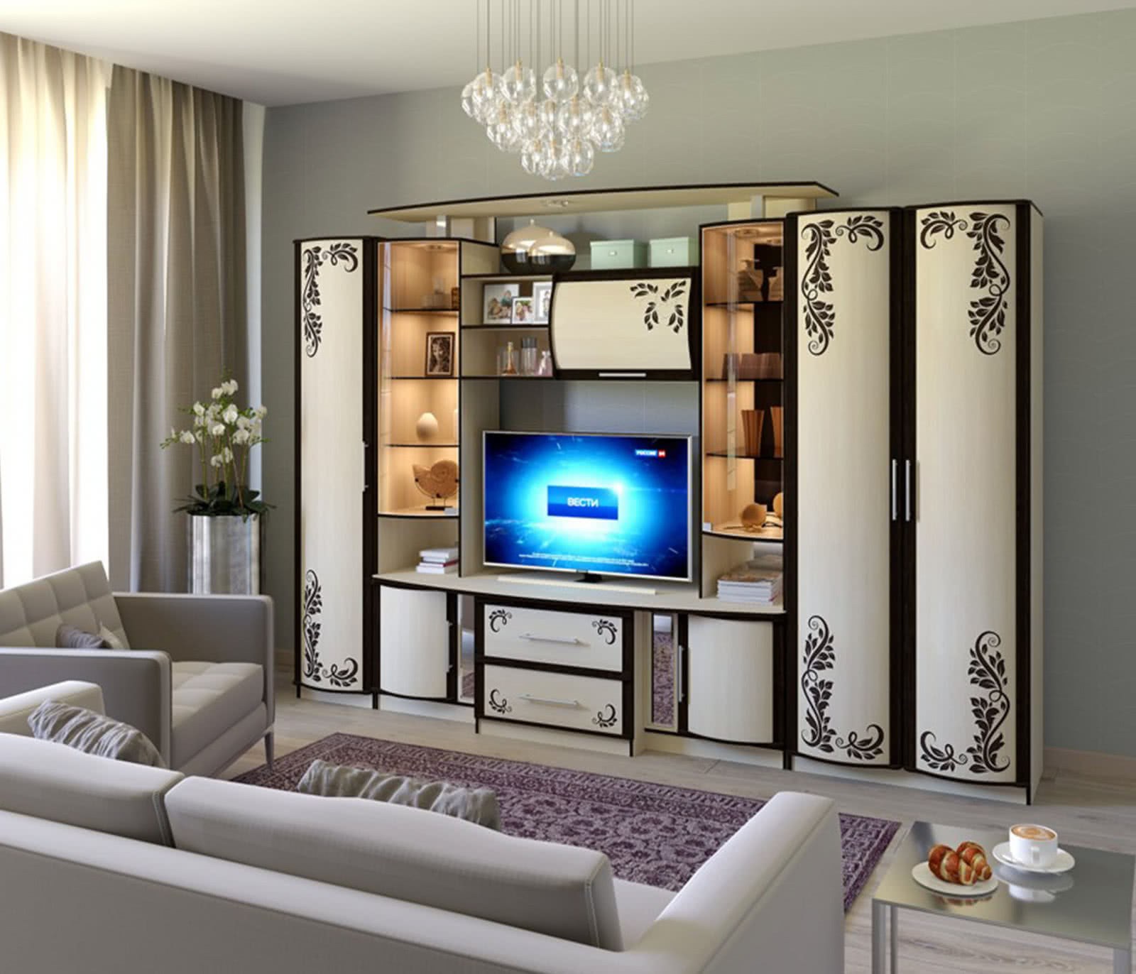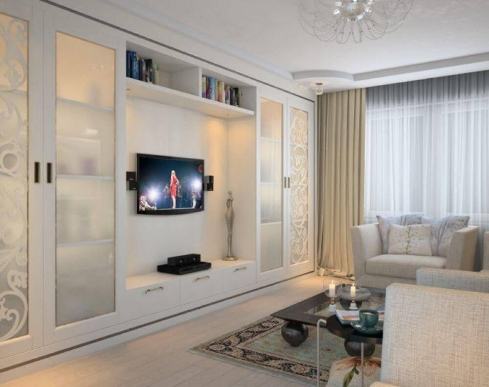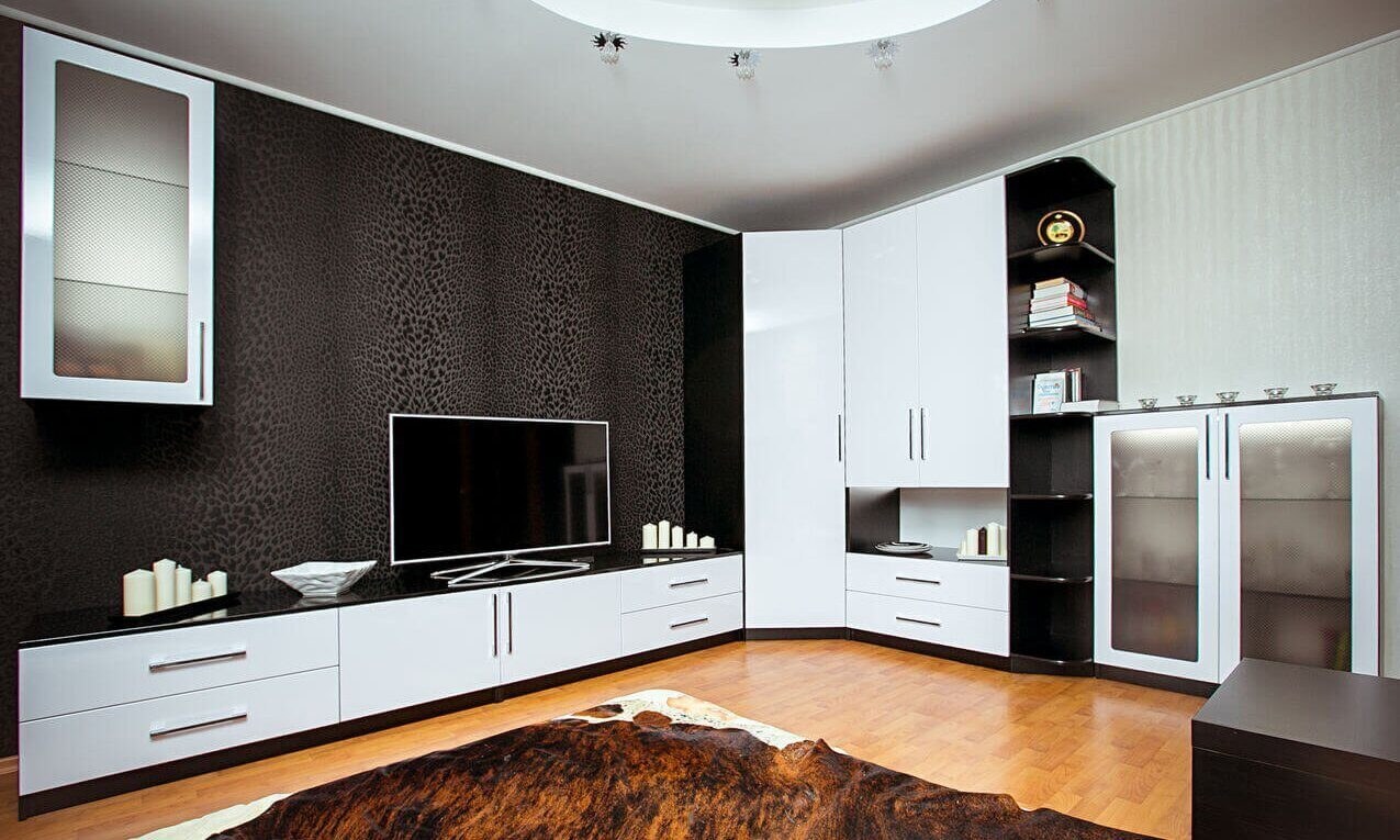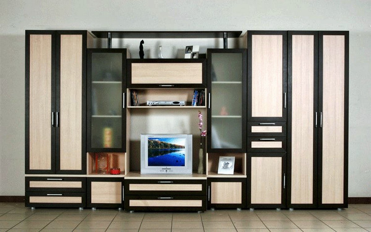 Стенка в большую комнату со шкафом в современном стиле (88 фото)