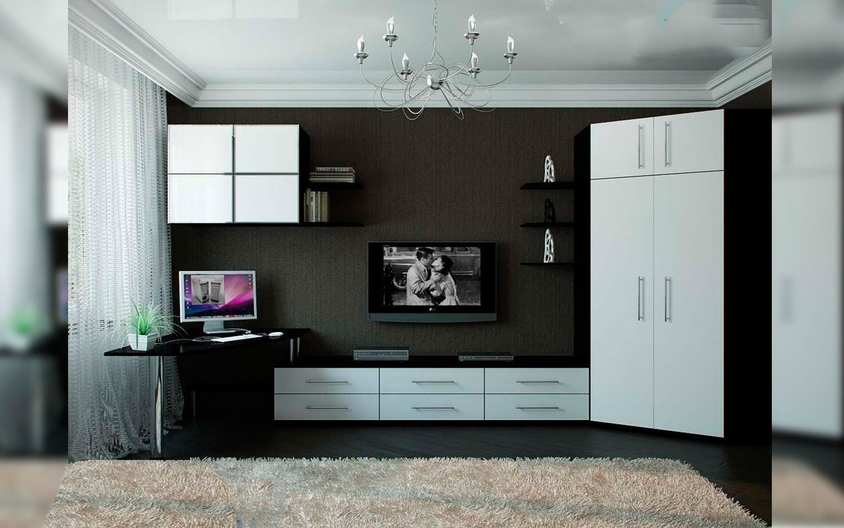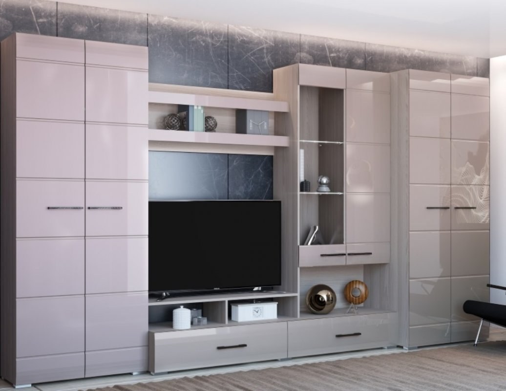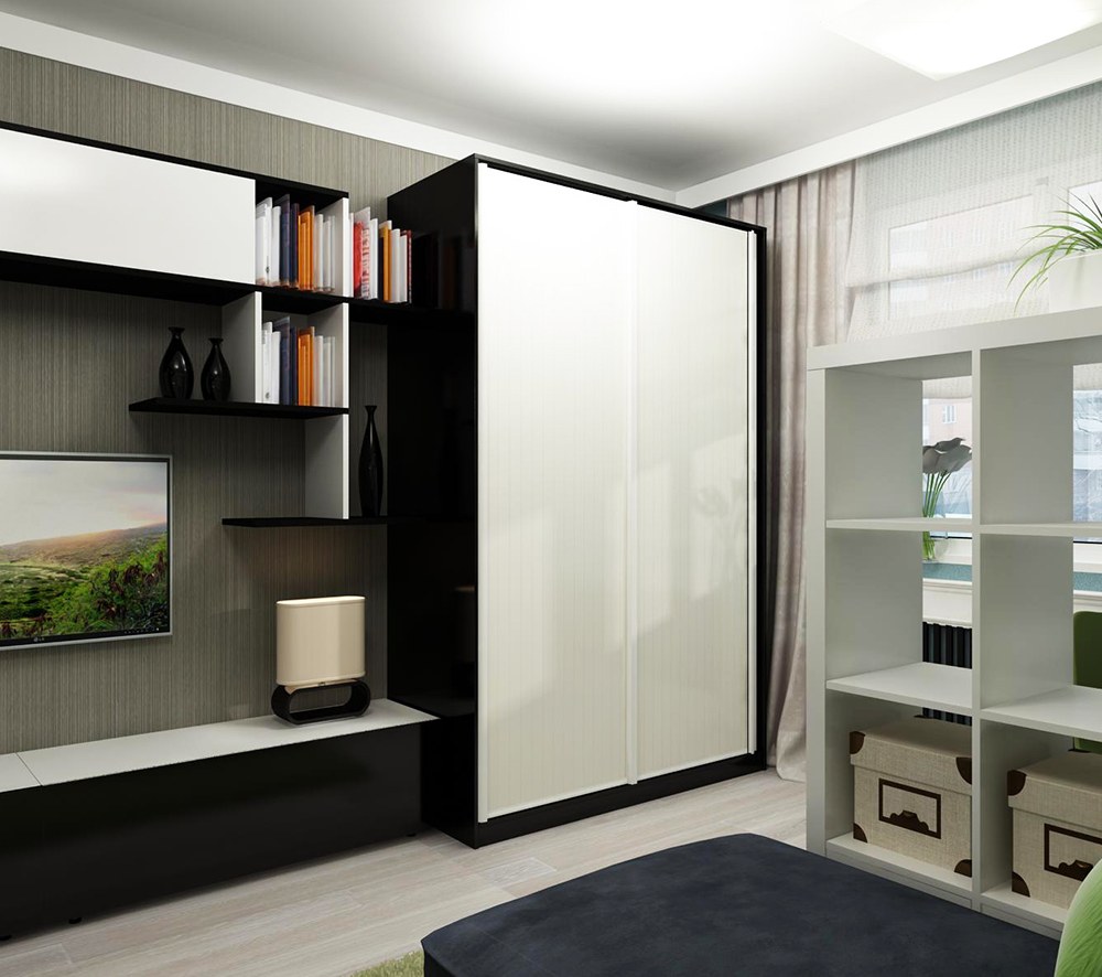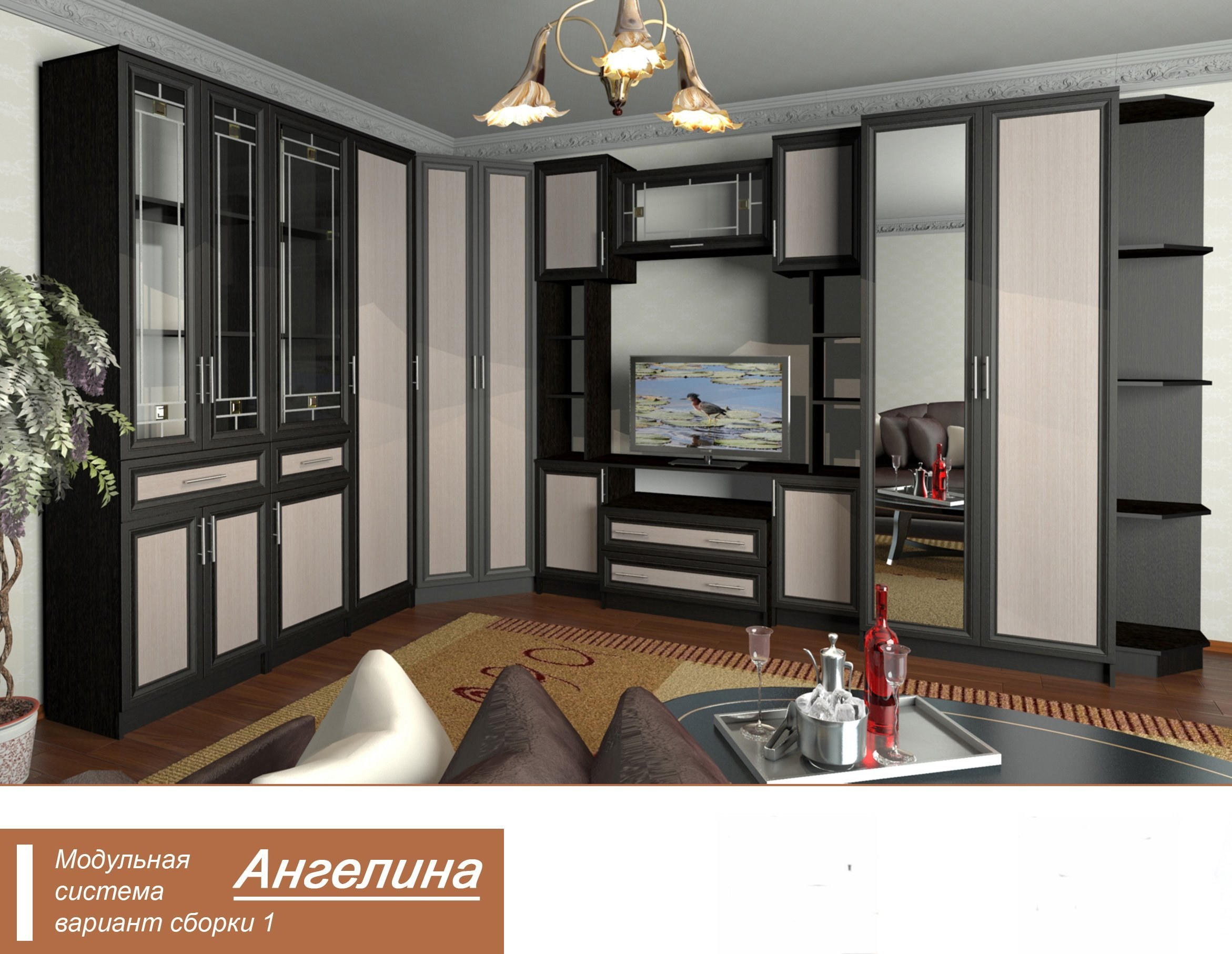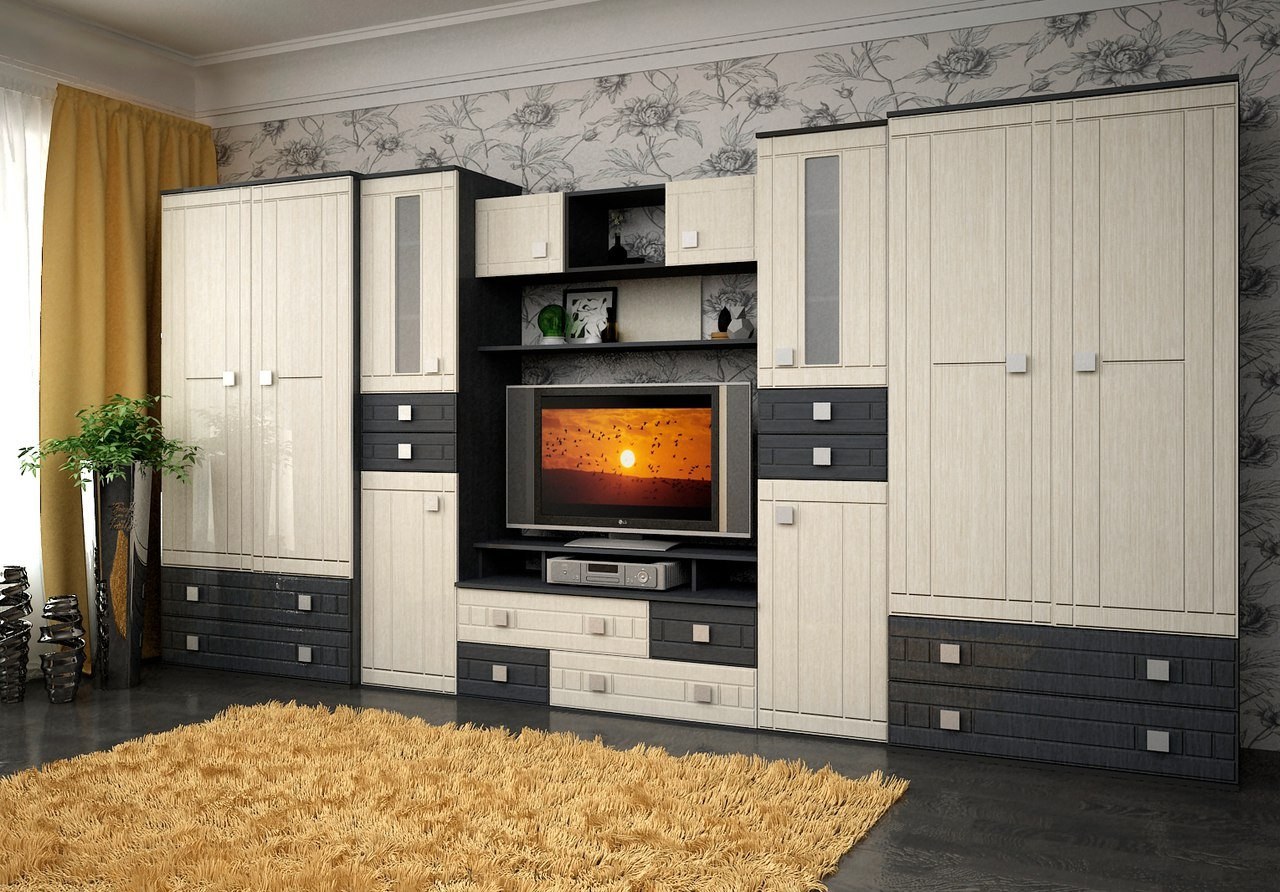 Стенка в большую комнату со шкафом в современном стиле (88 фото)