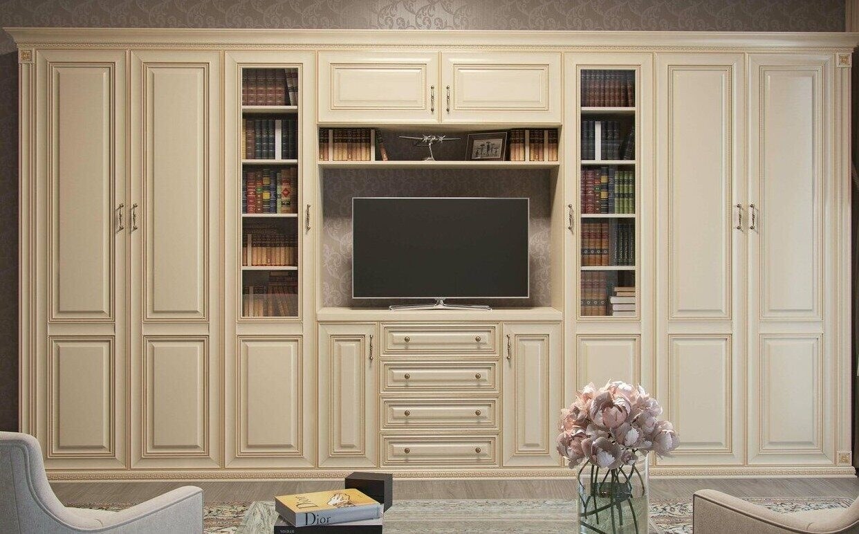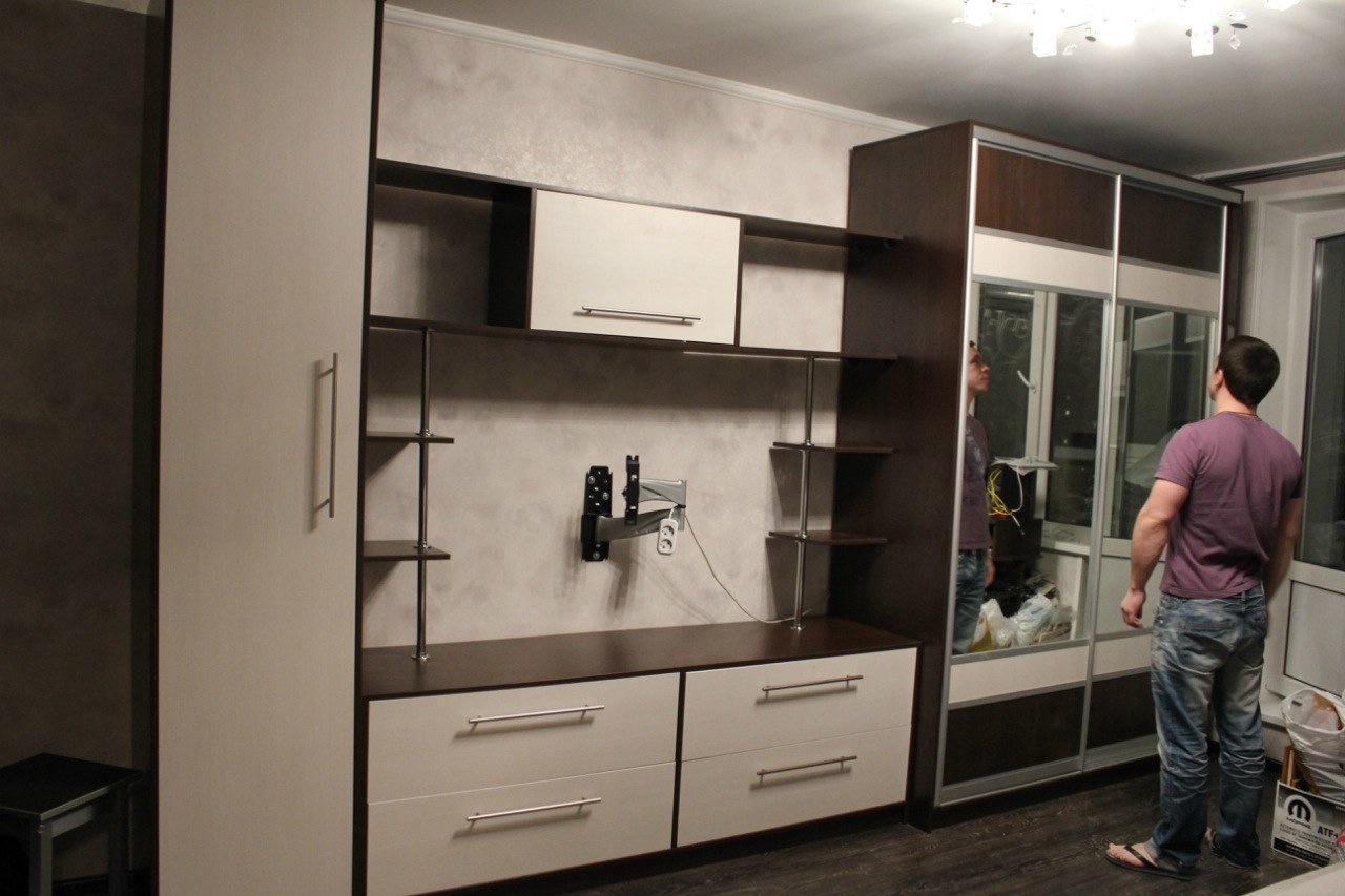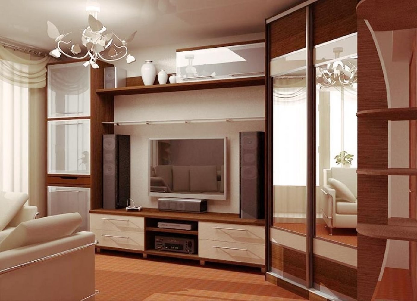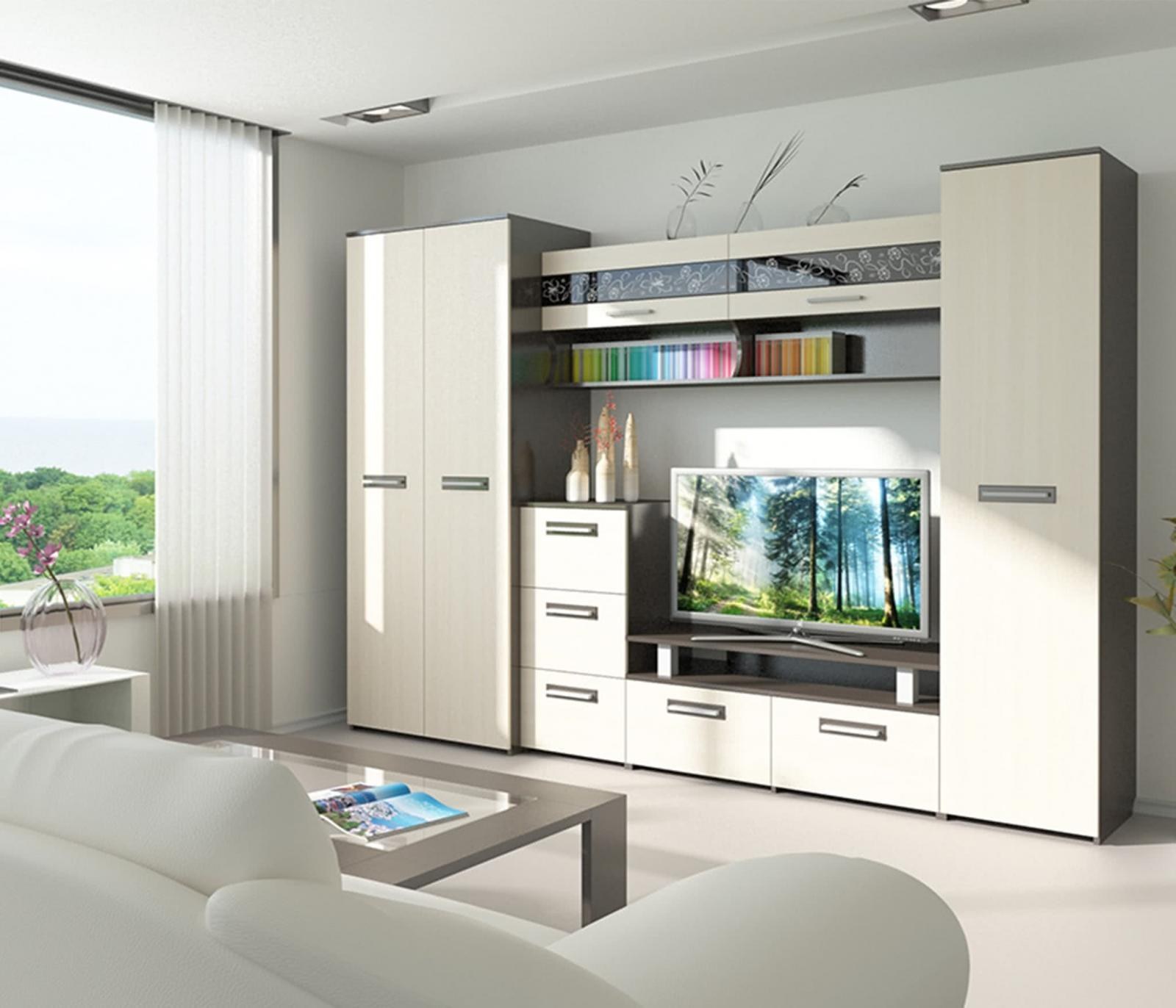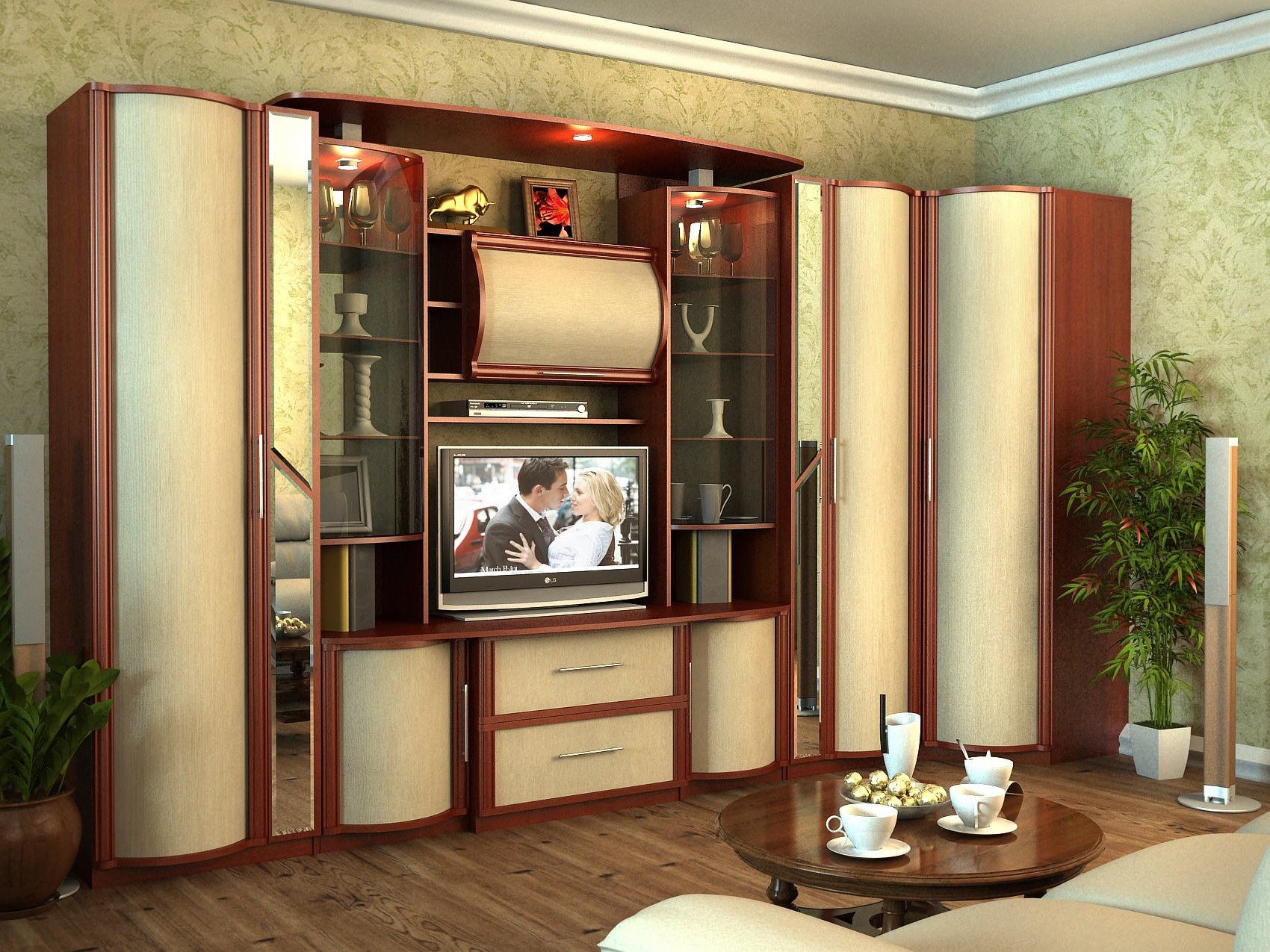 Стенка в большую комнату со шкафом в современном стиле (88 фото)