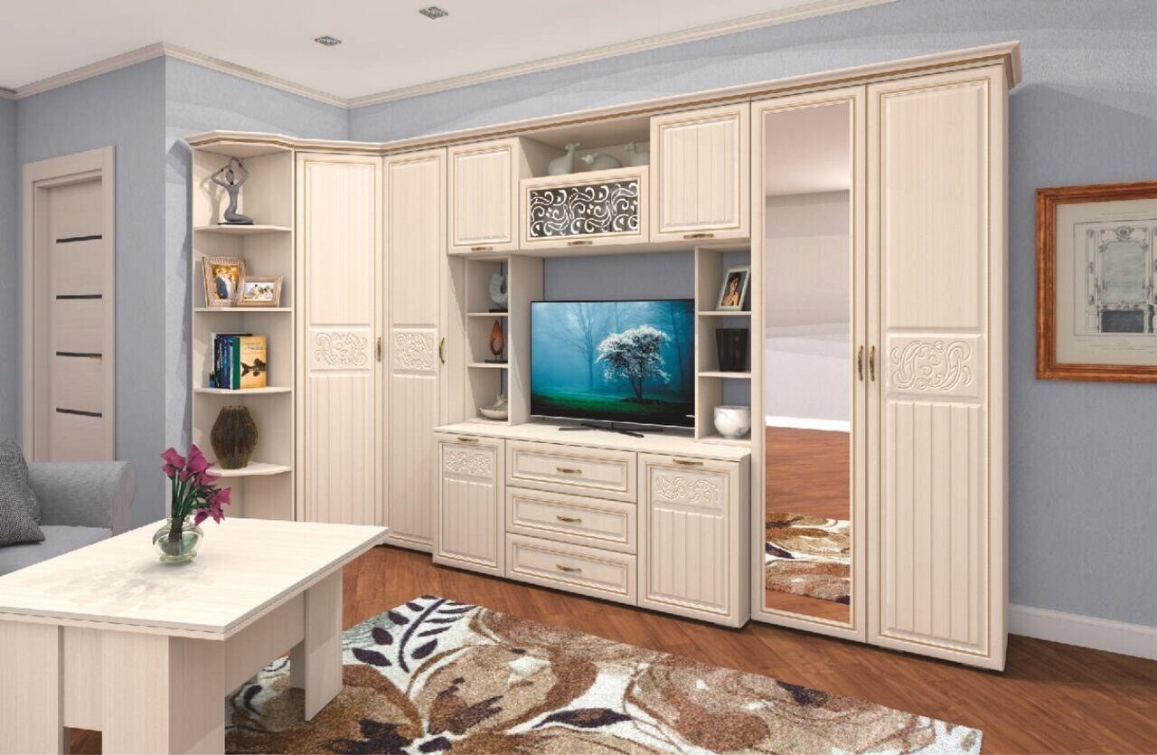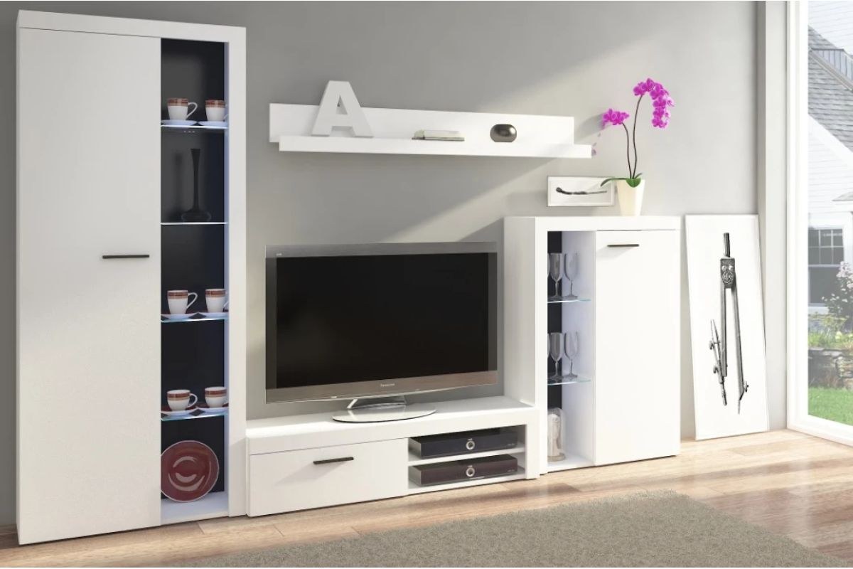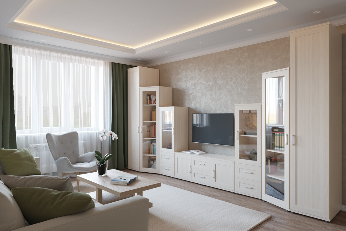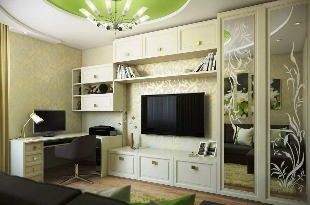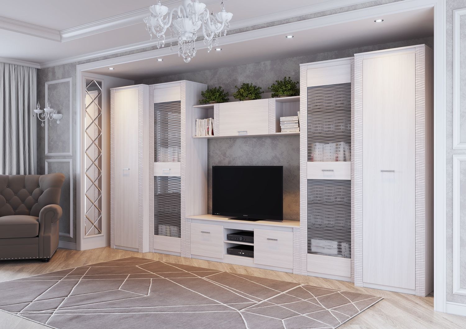 Стенка в большую комнату со шкафом в современном стиле (88 фото)