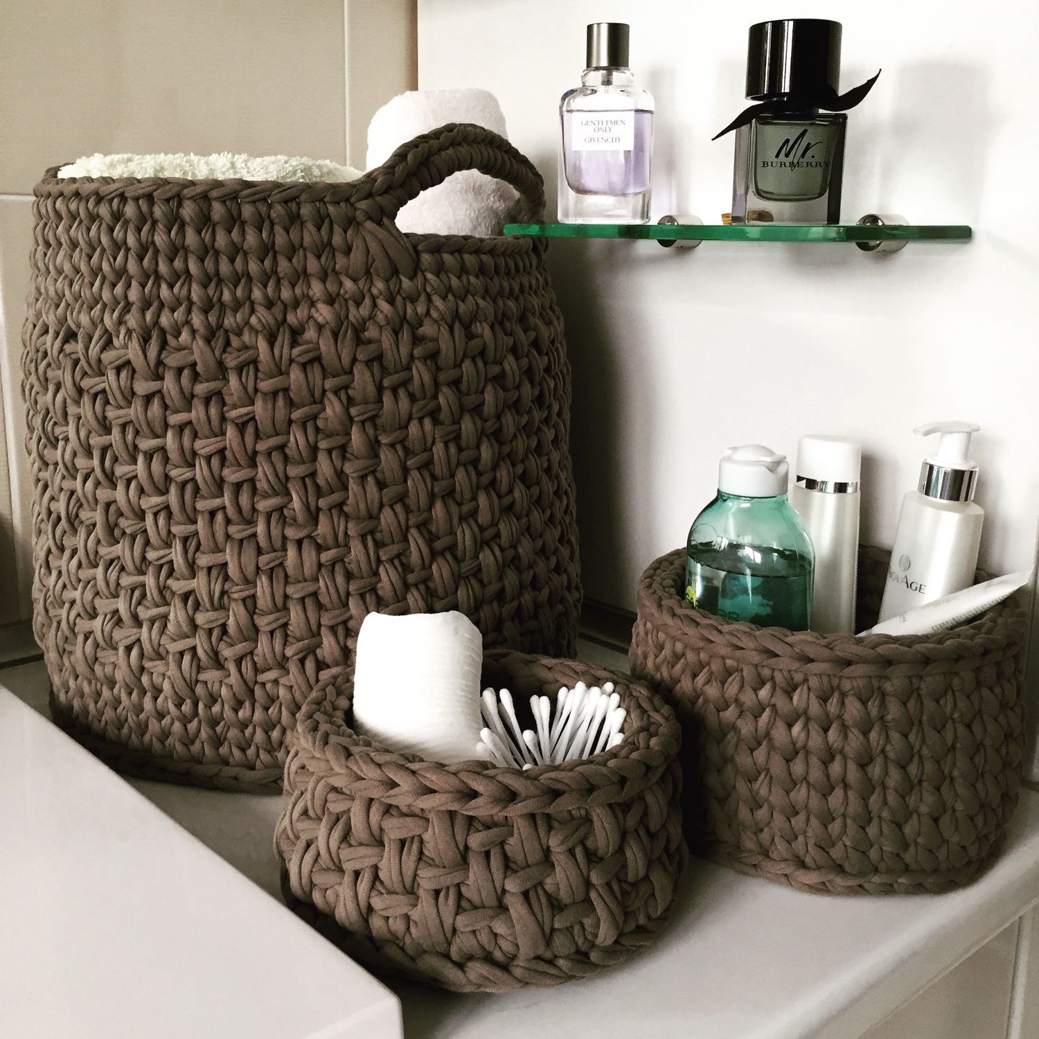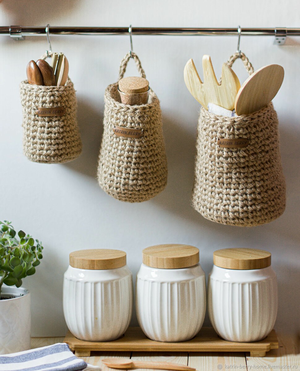 Вязаные корзины в интерьере