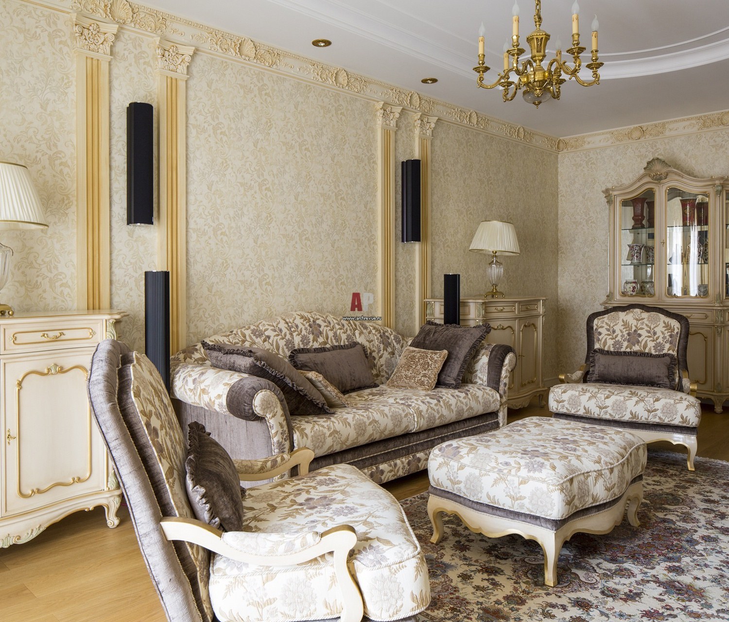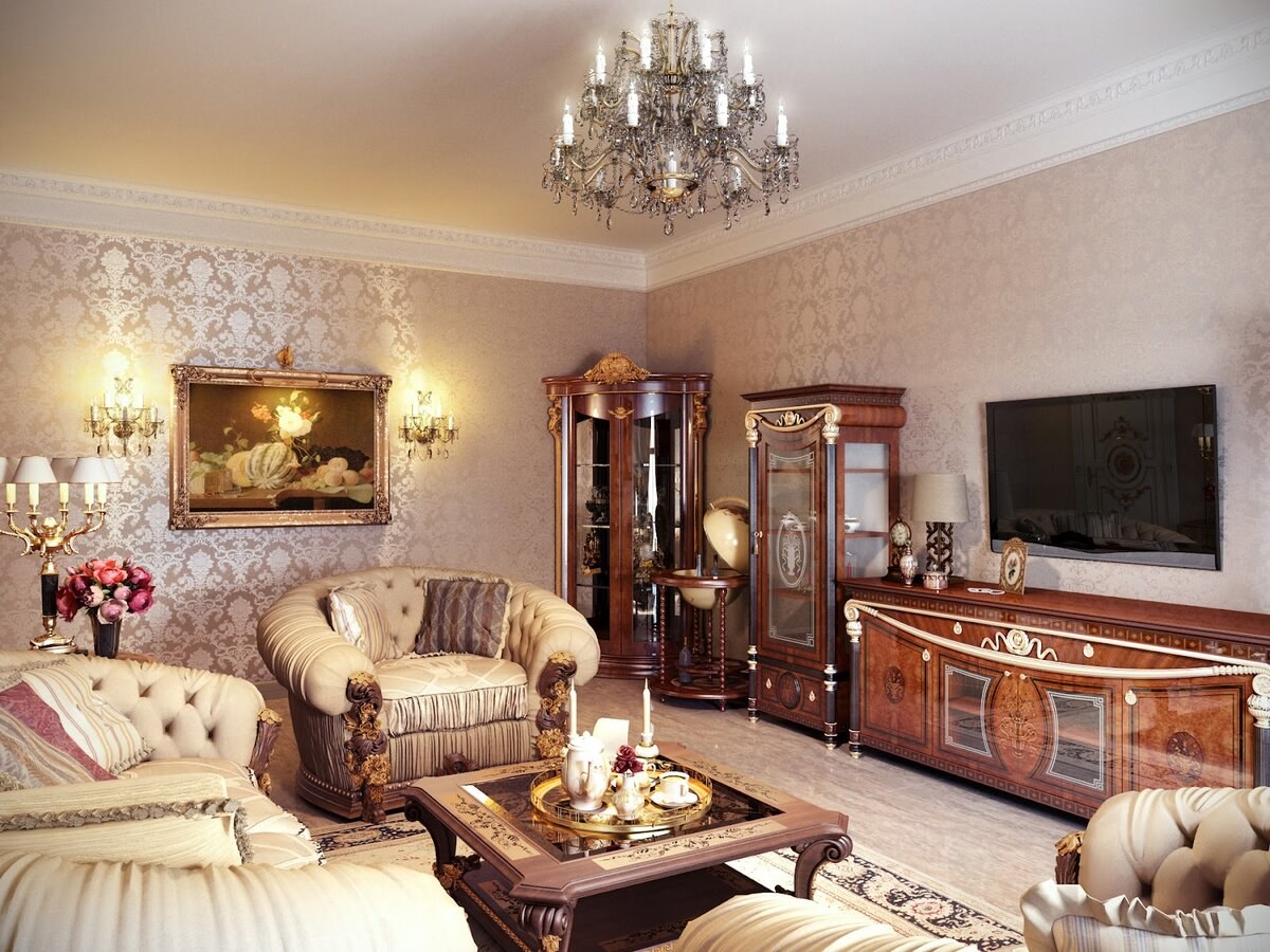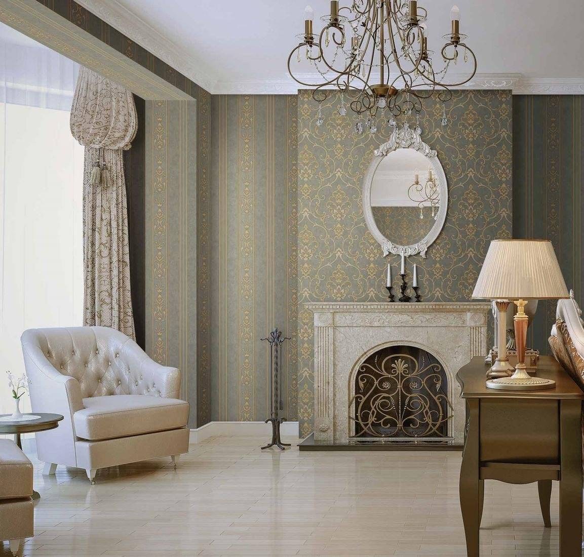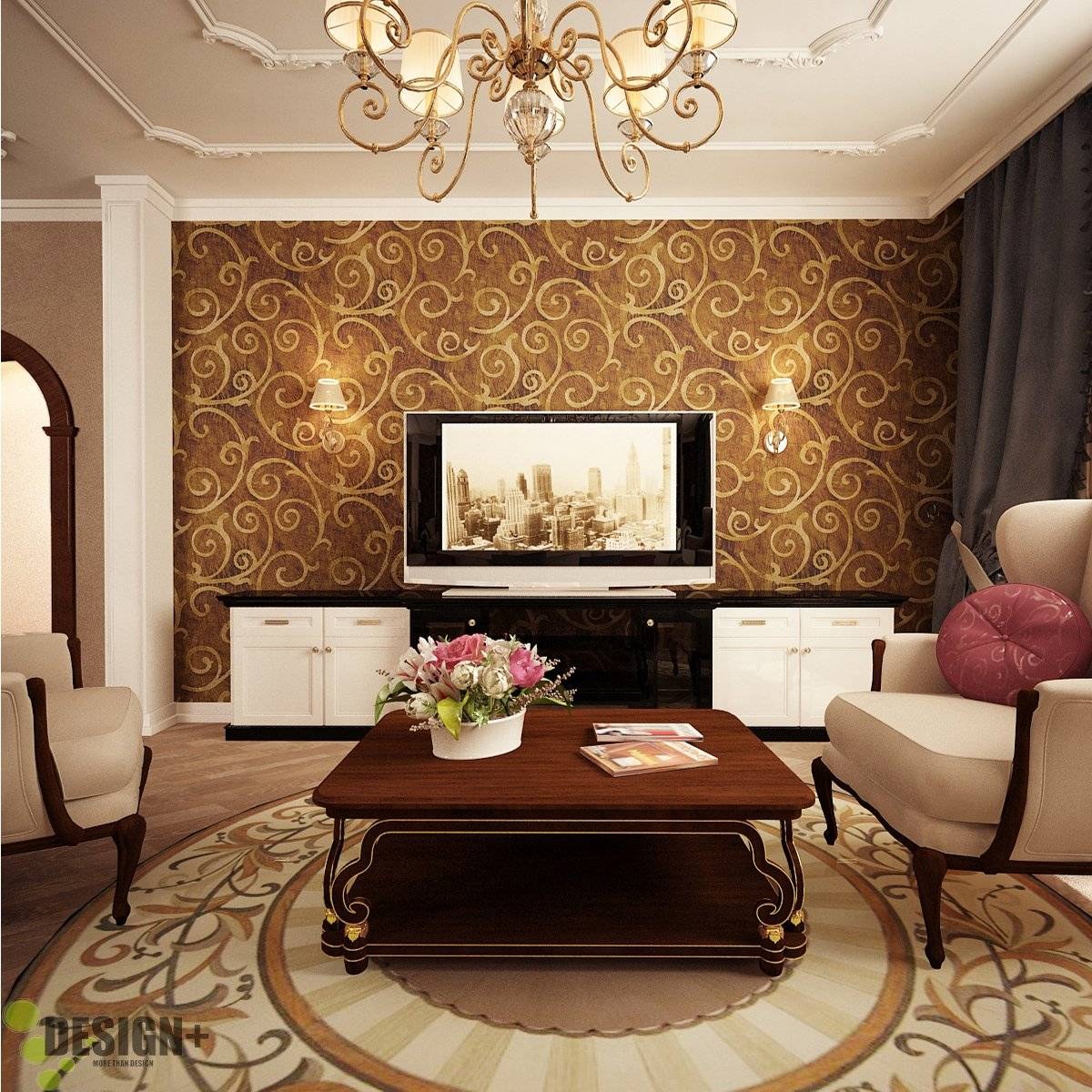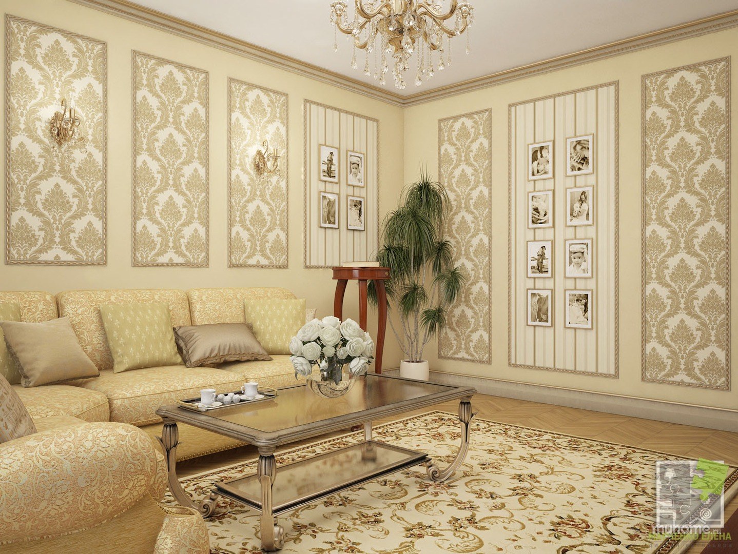 Обои в классическом стиле в интерьере в гостиной (95 фото)