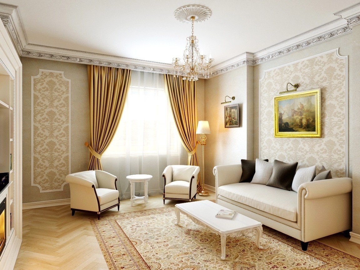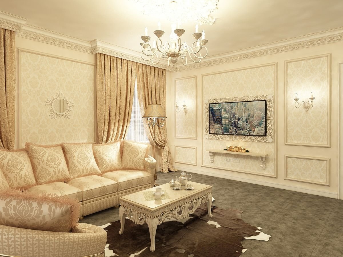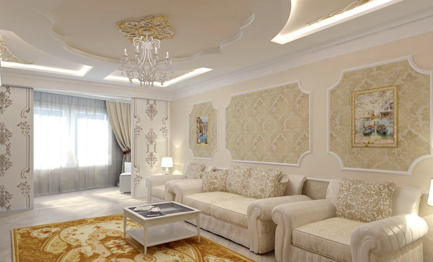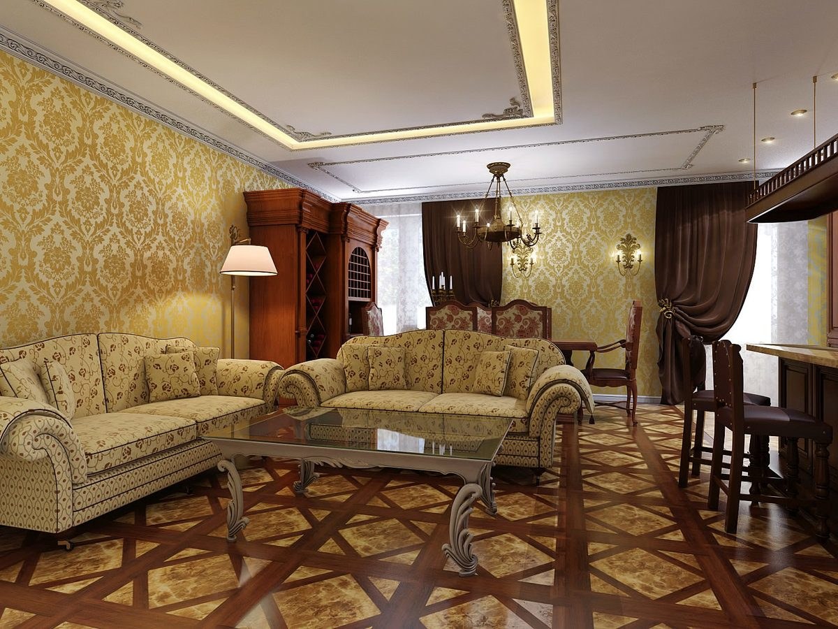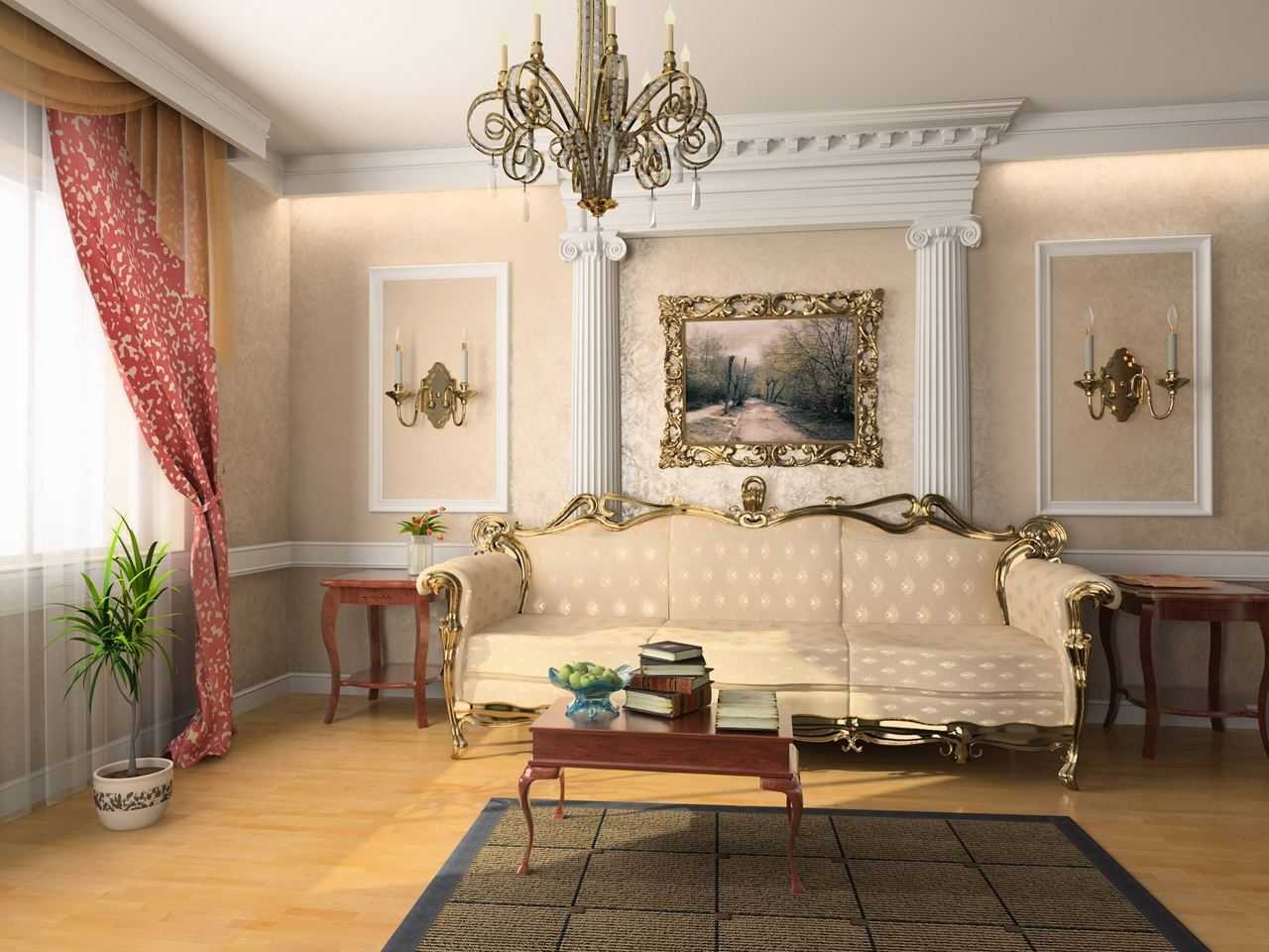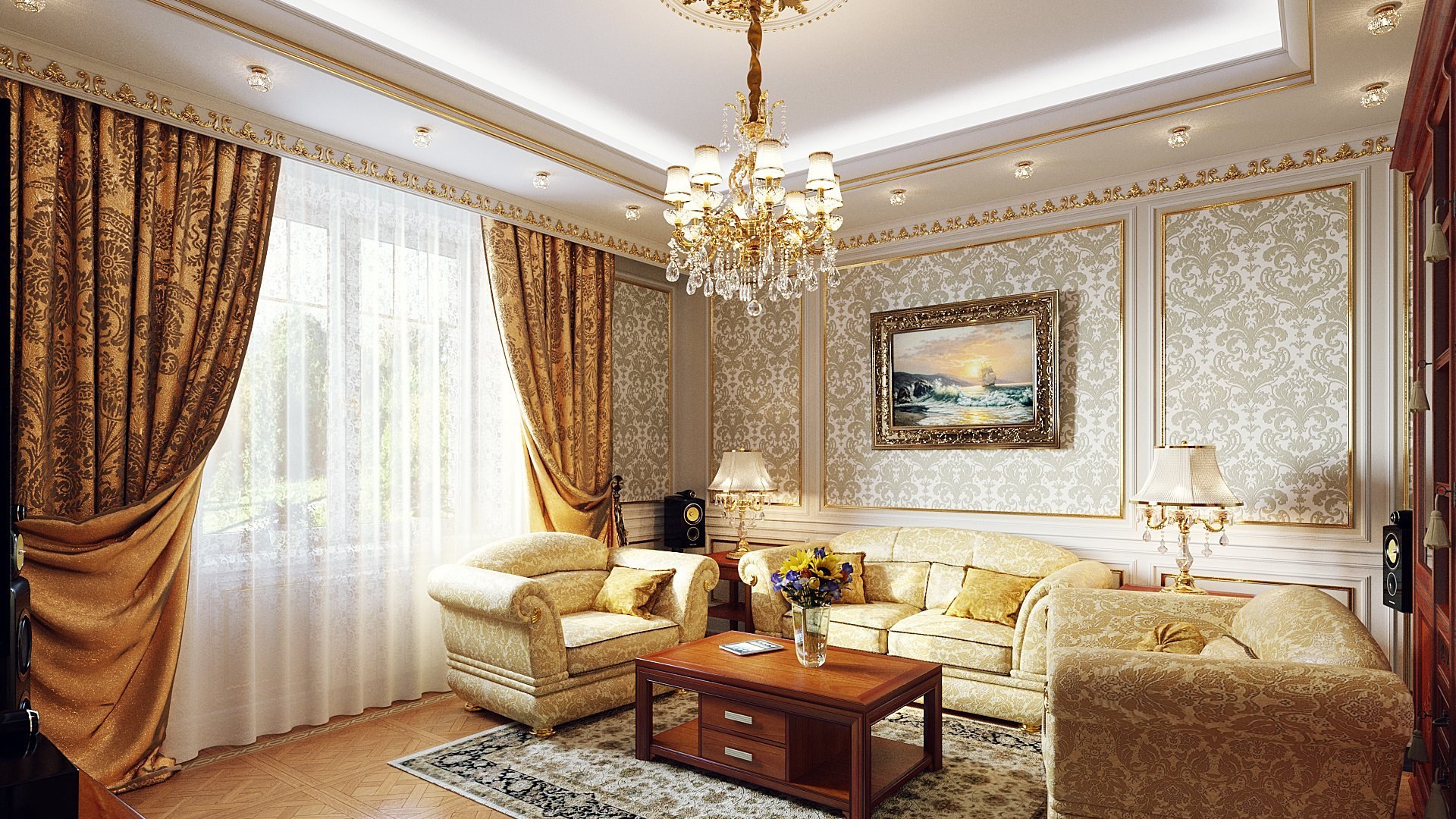 Обои в классическом стиле в интерьере в гостиной (95 фото)