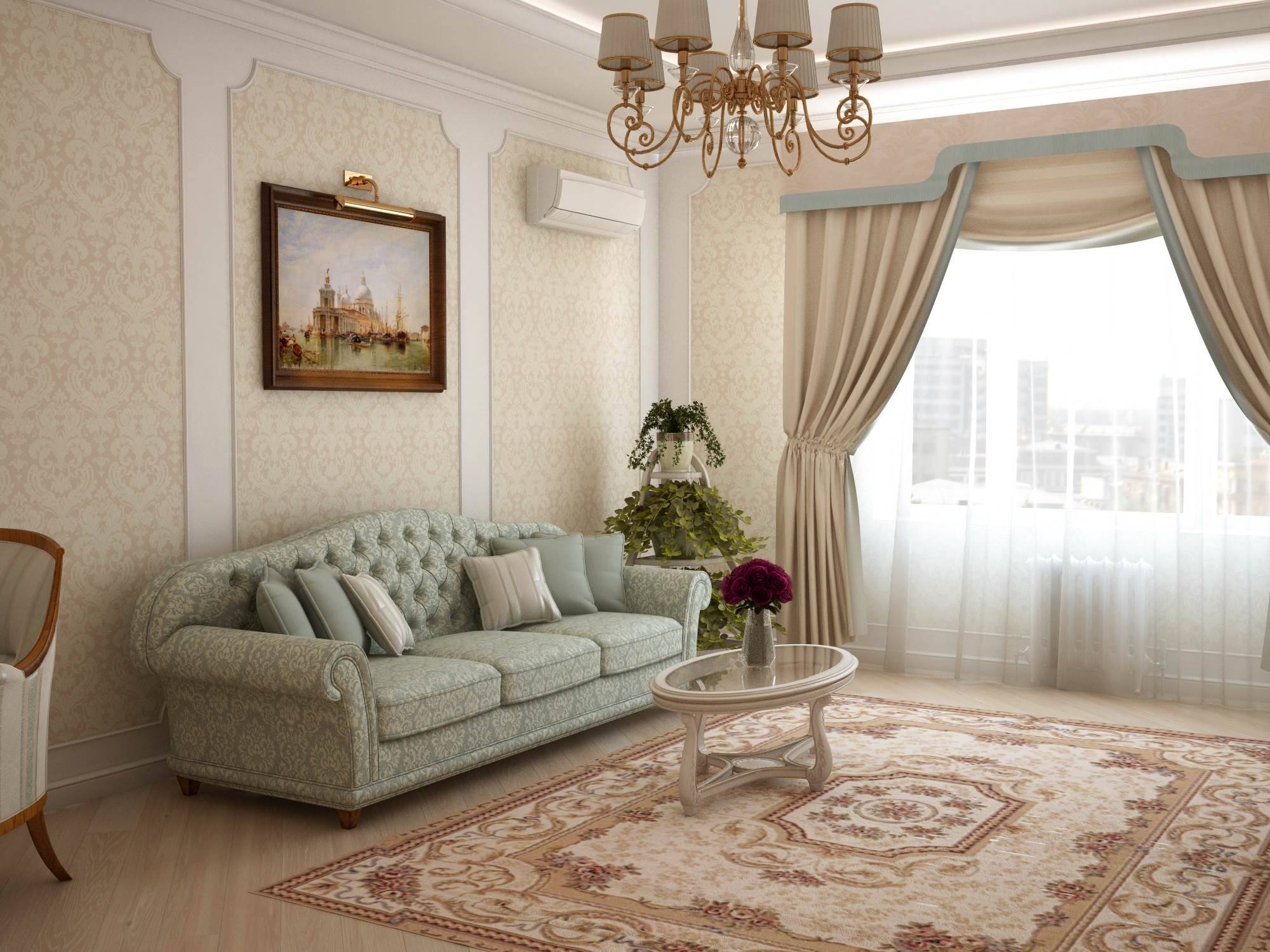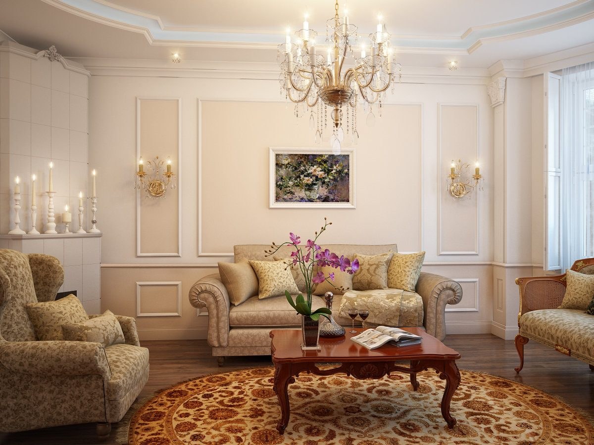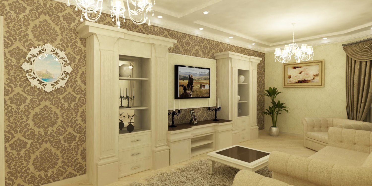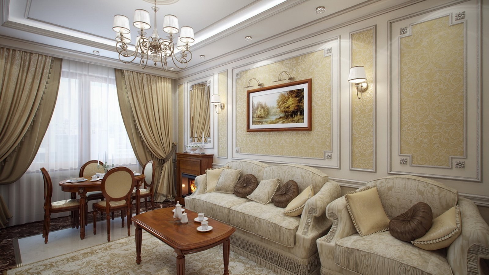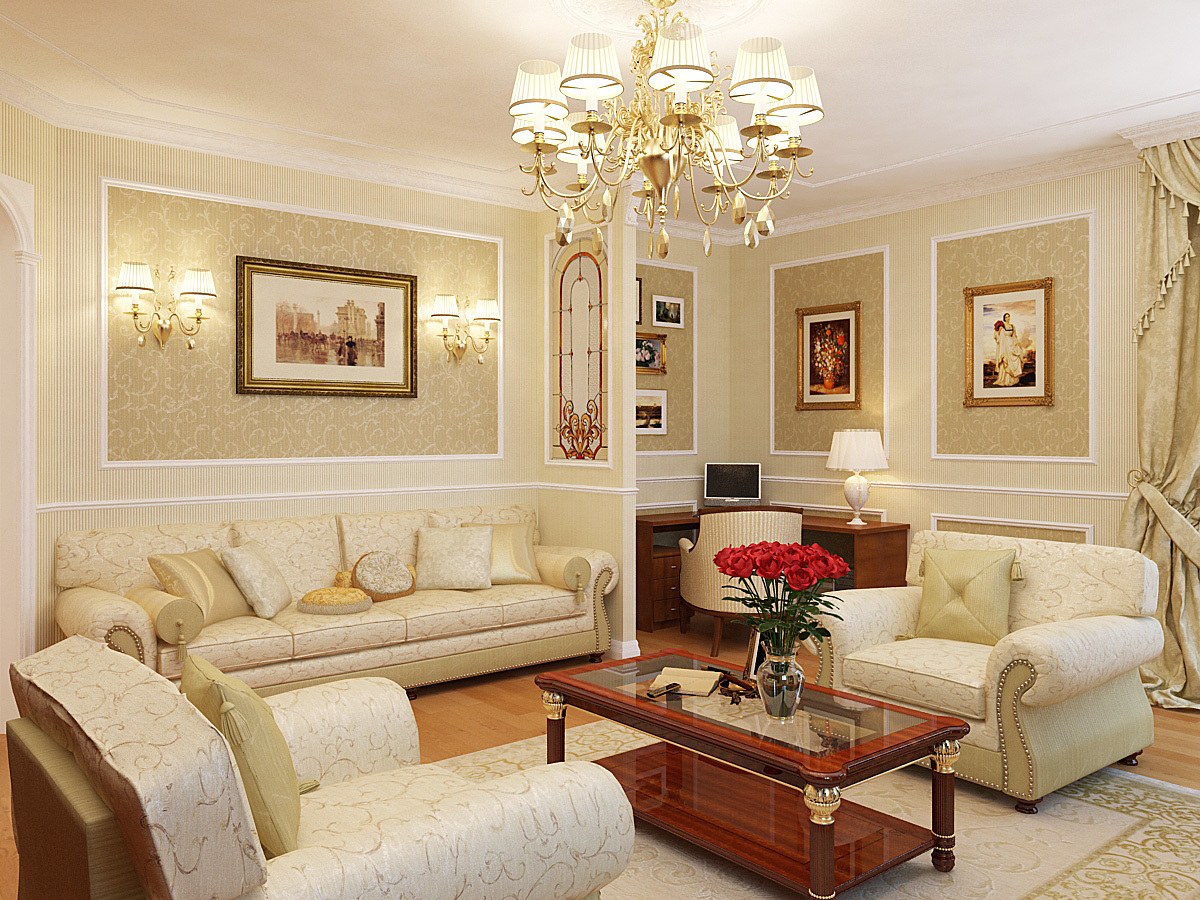 Обои в классическом стиле в интерьере в гостиной (95 фото)