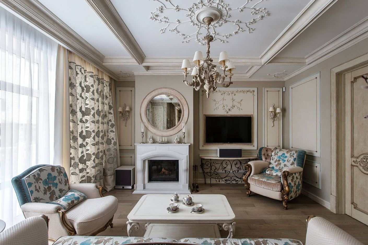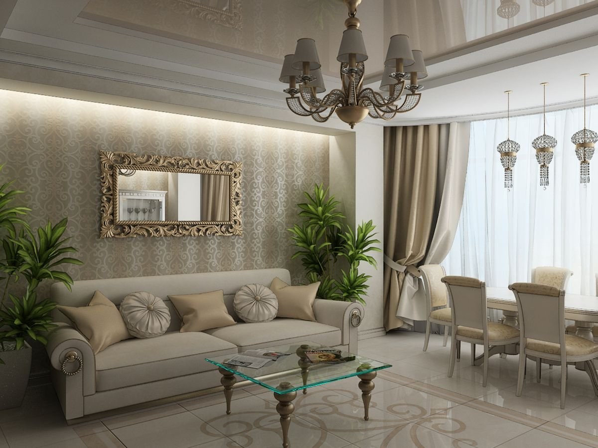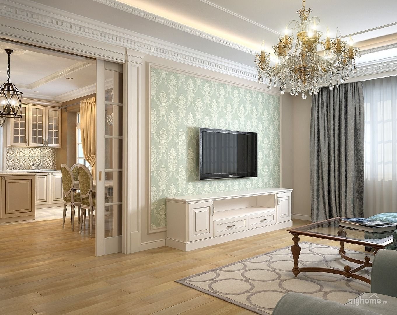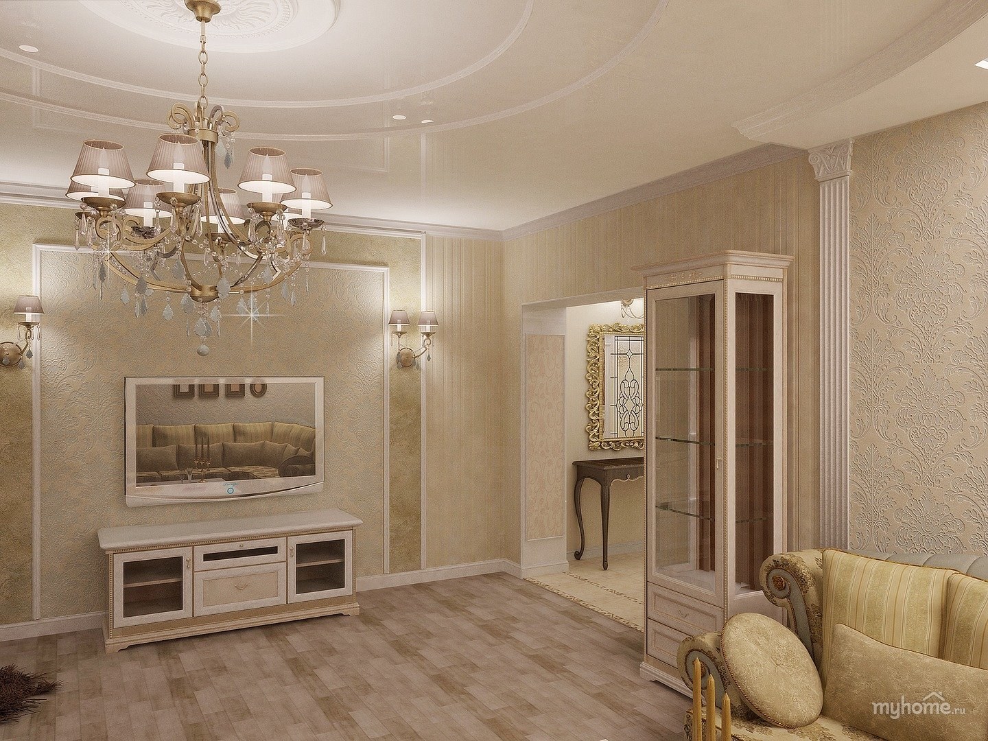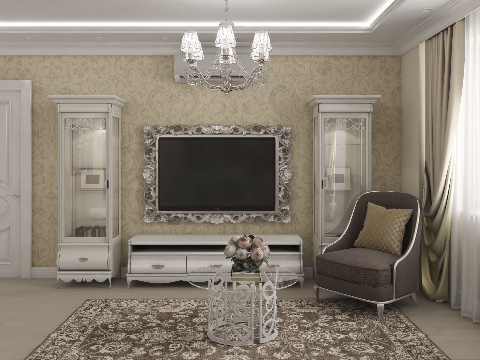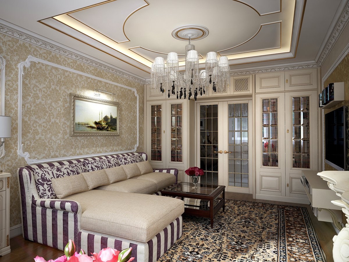 Обои в классическом стиле в интерьере в гостиной (95 фото)