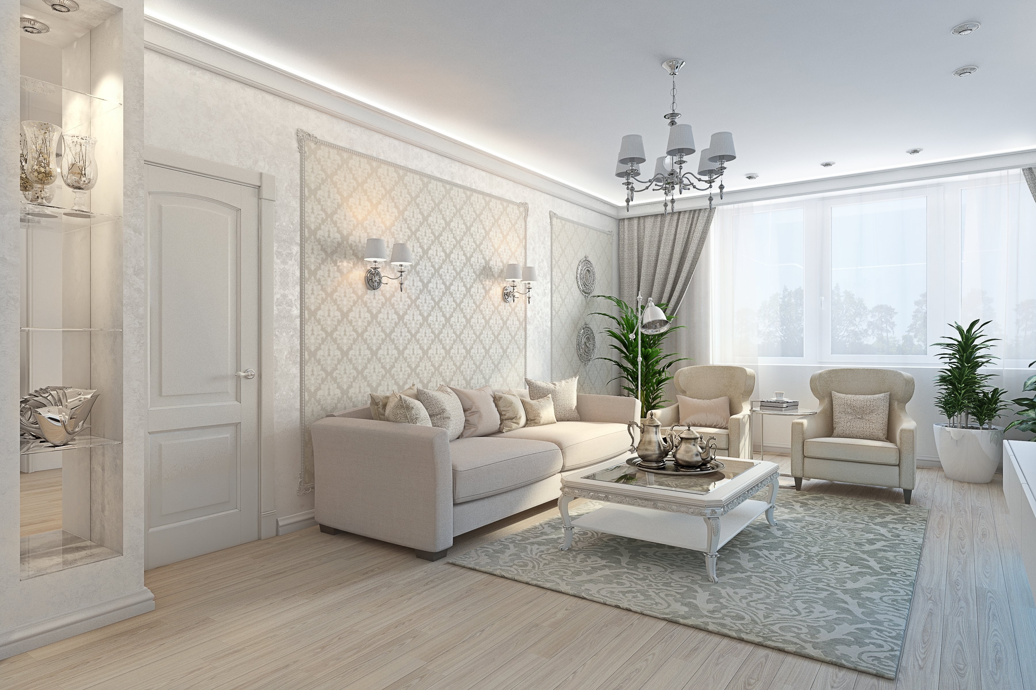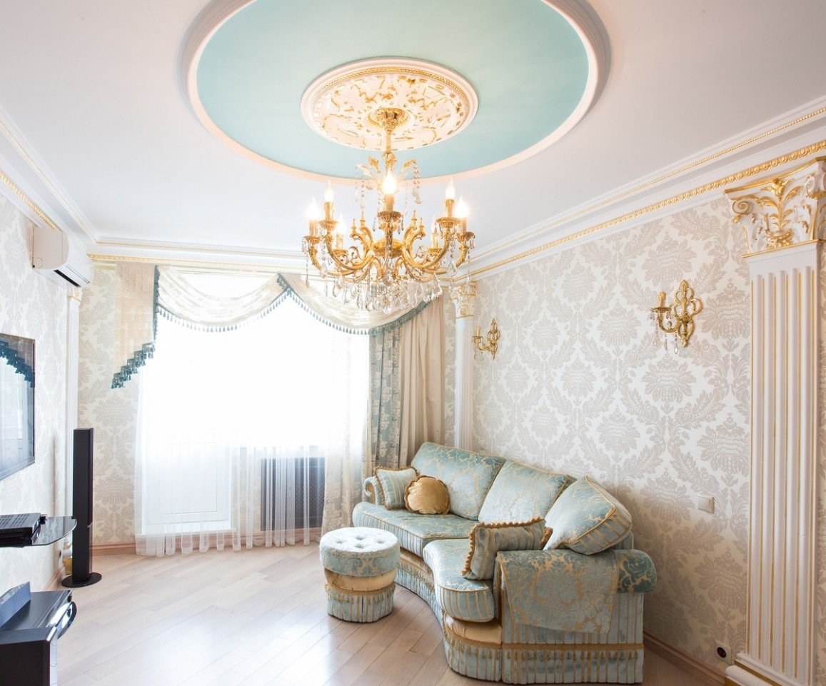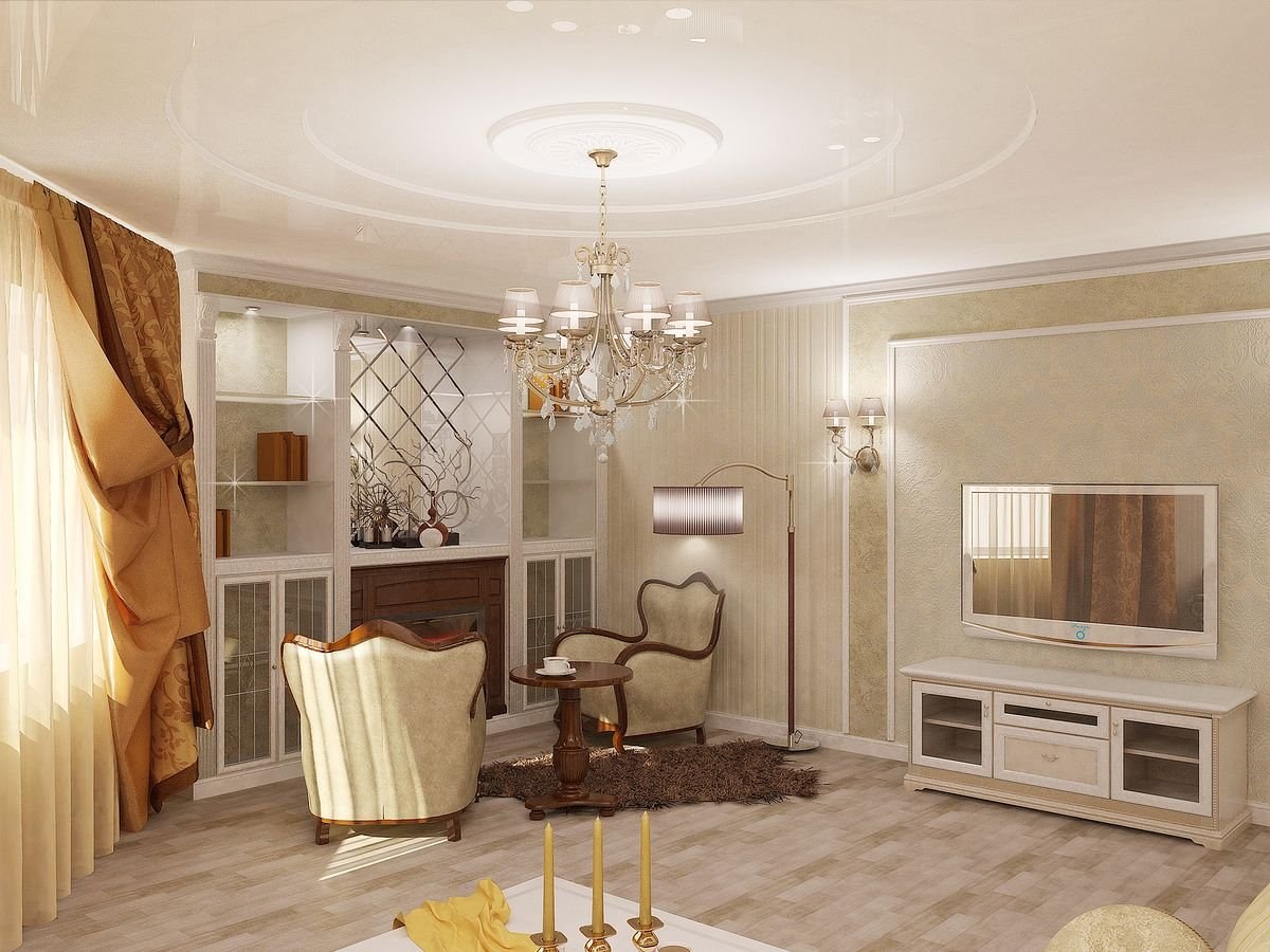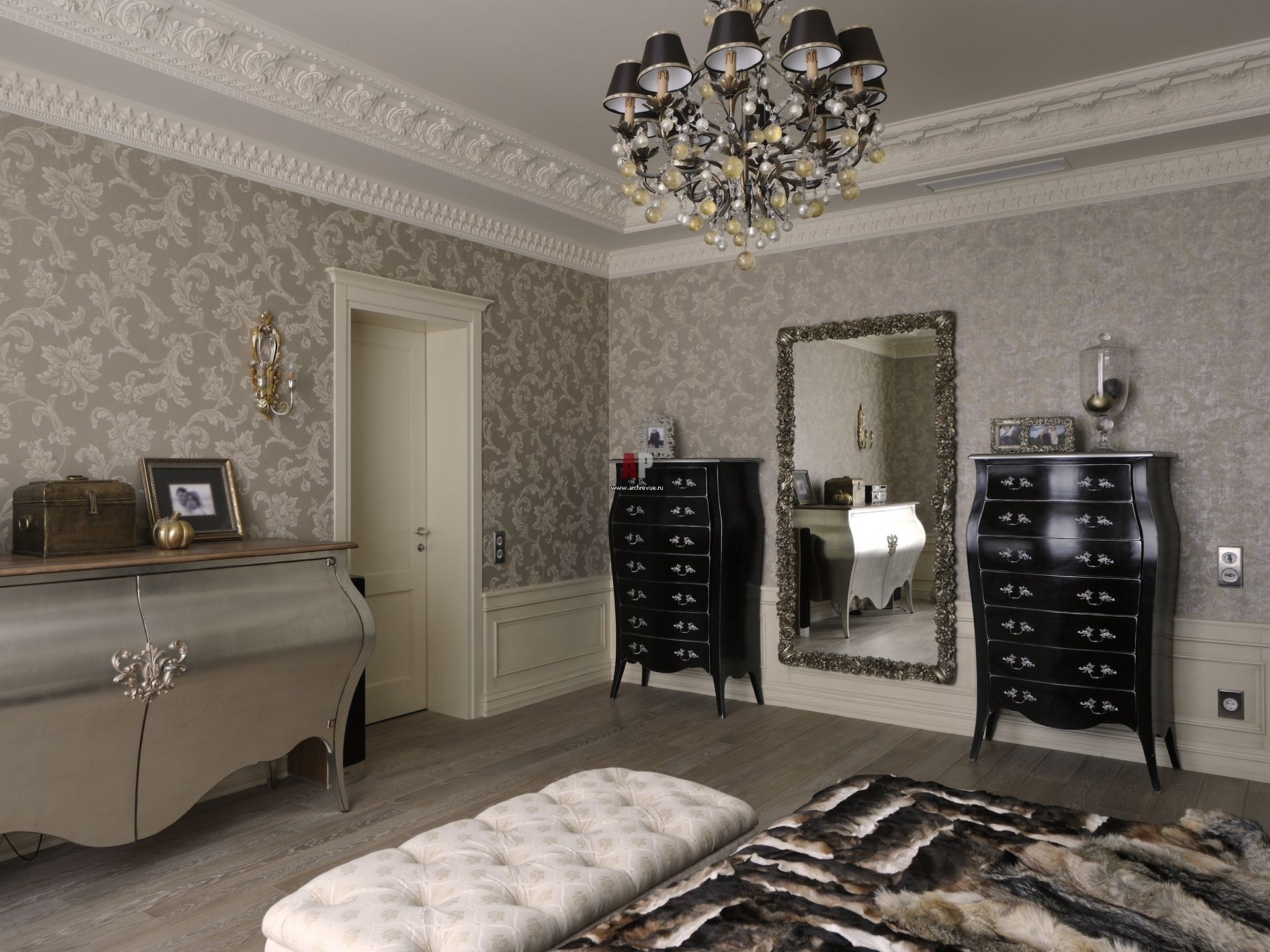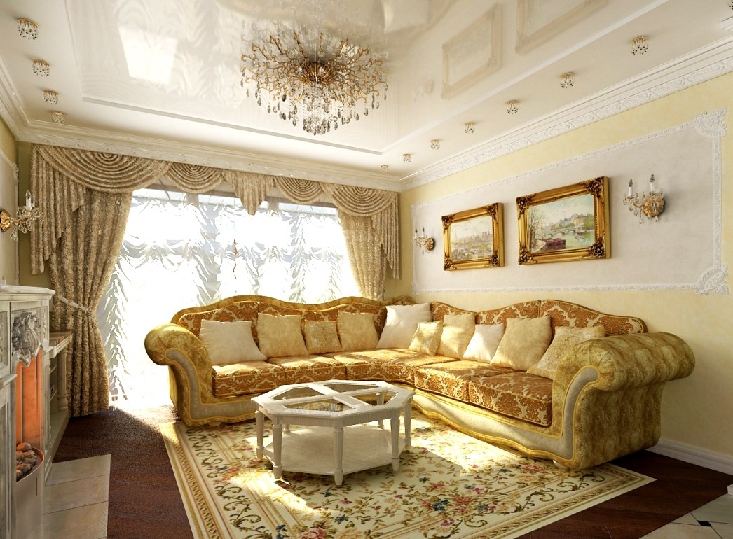 Обои в классическом стиле в интерьере в гостиной (95 фото)