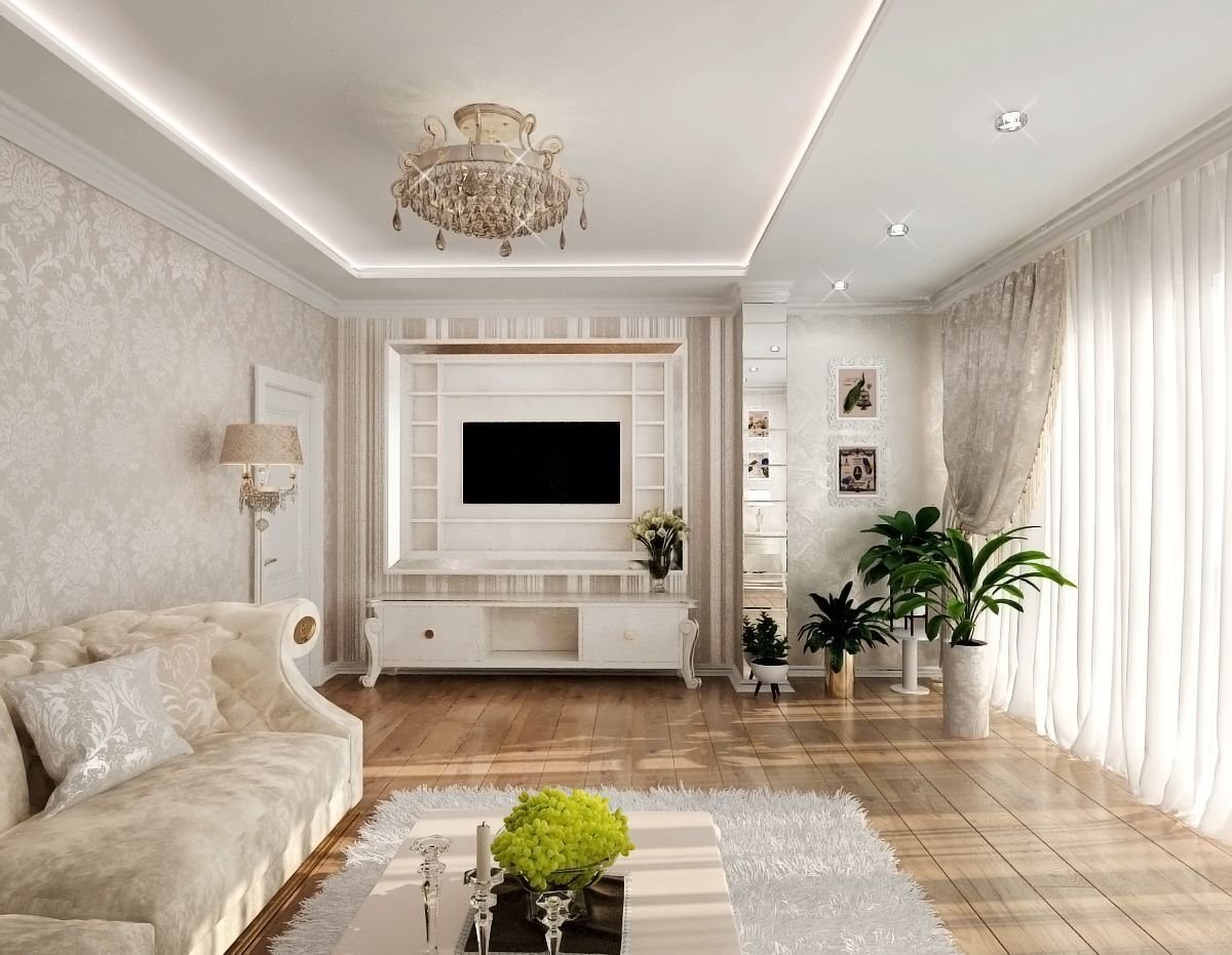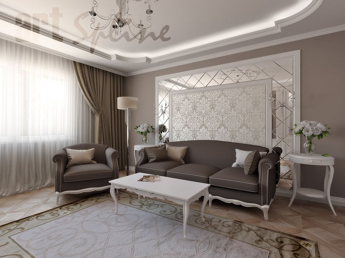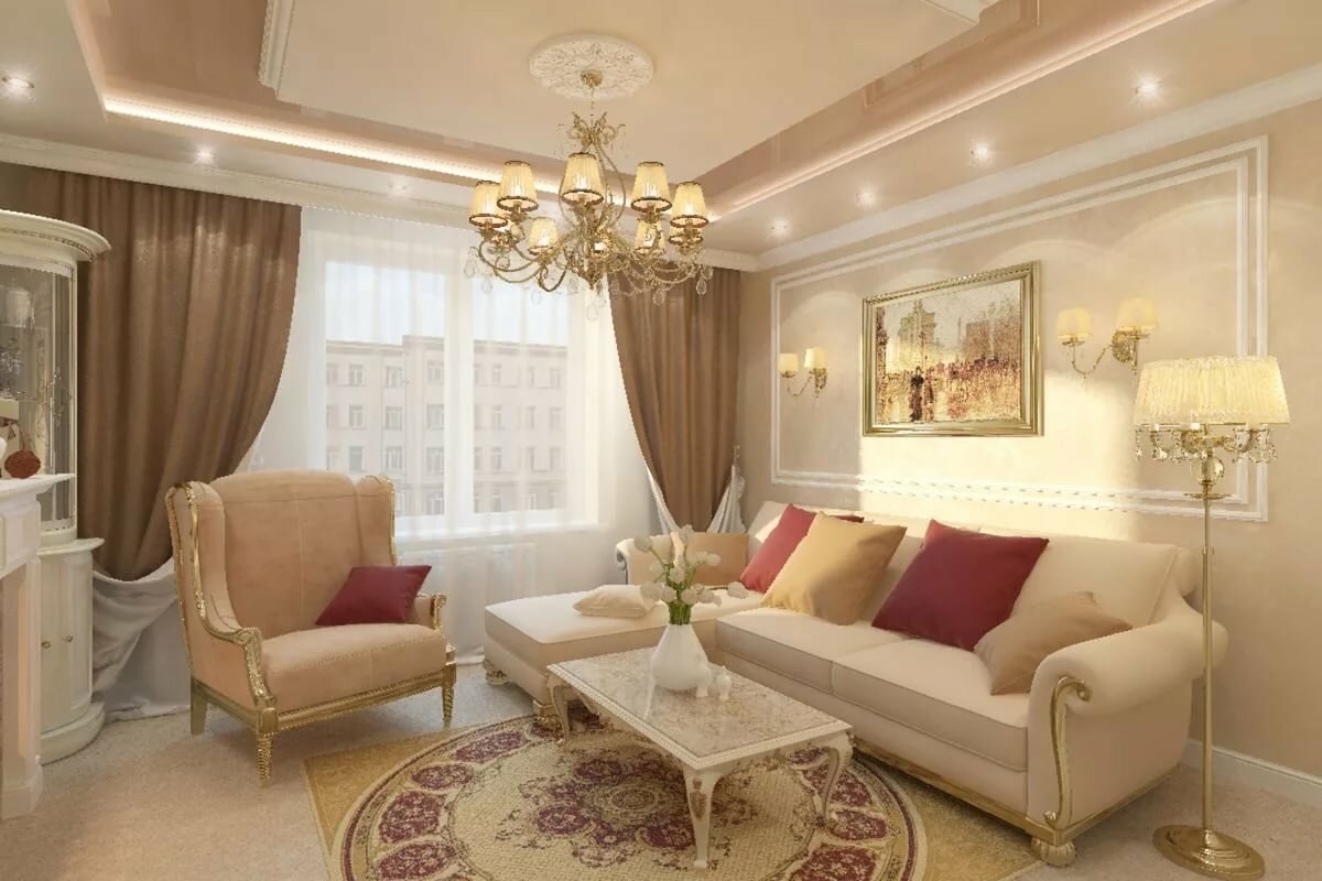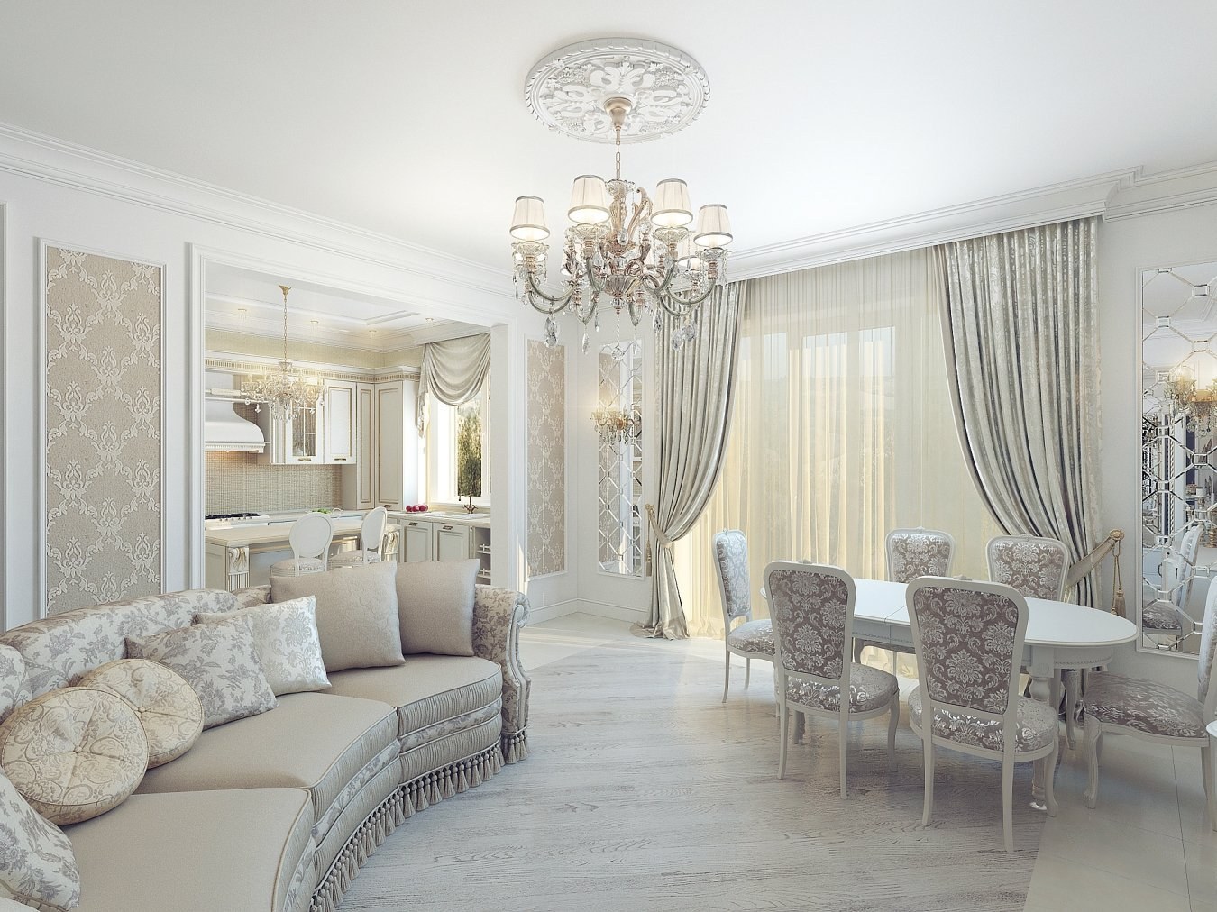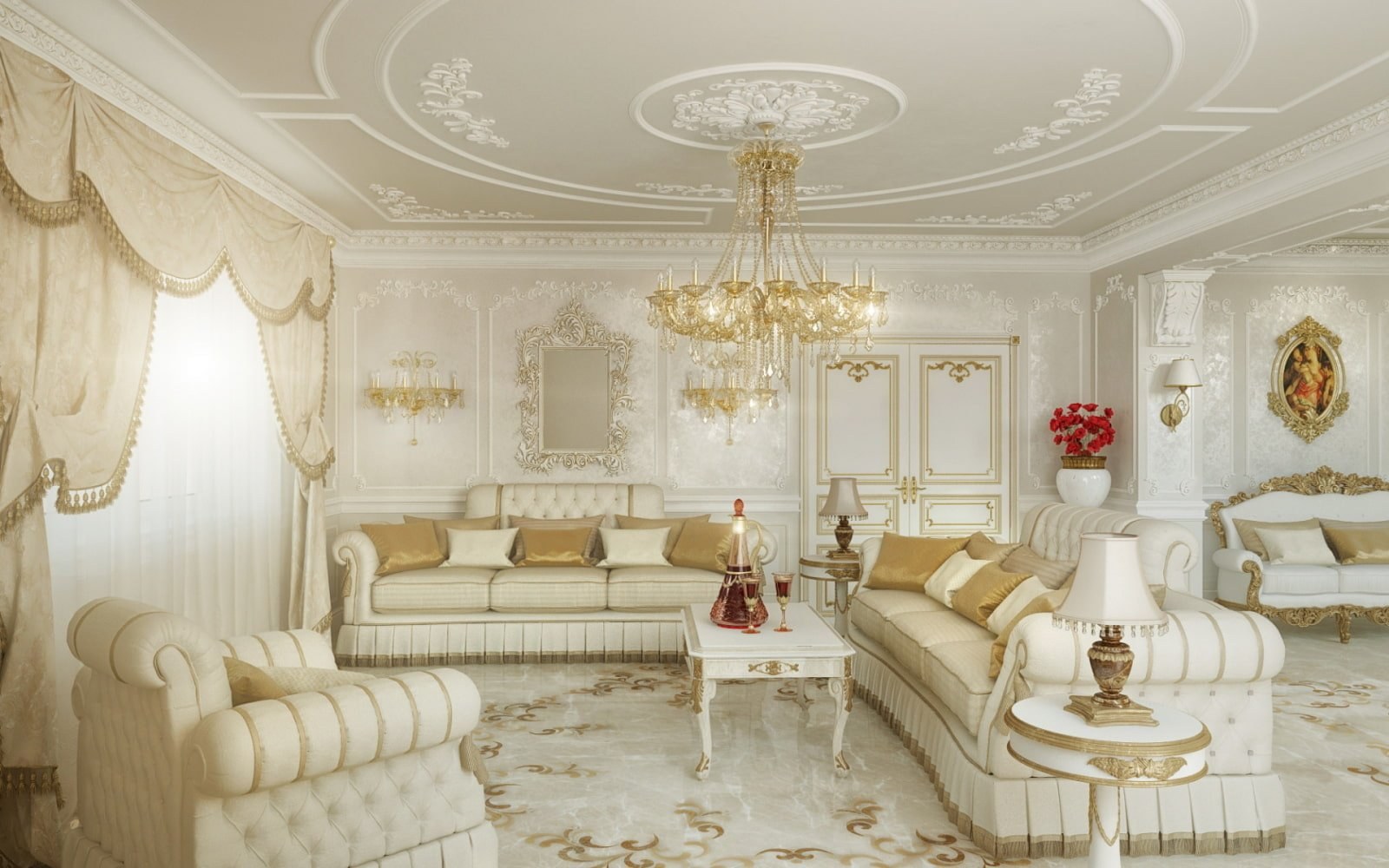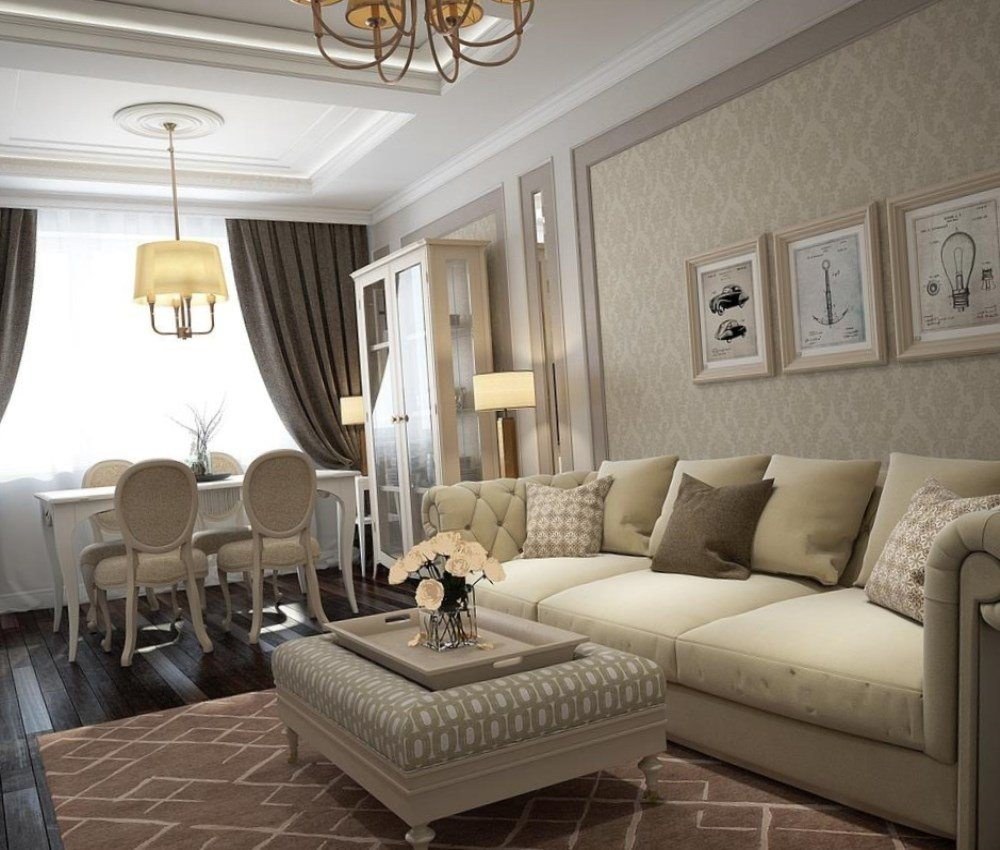 Обои в классическом стиле в интерьере в гостиной (95 фото)
