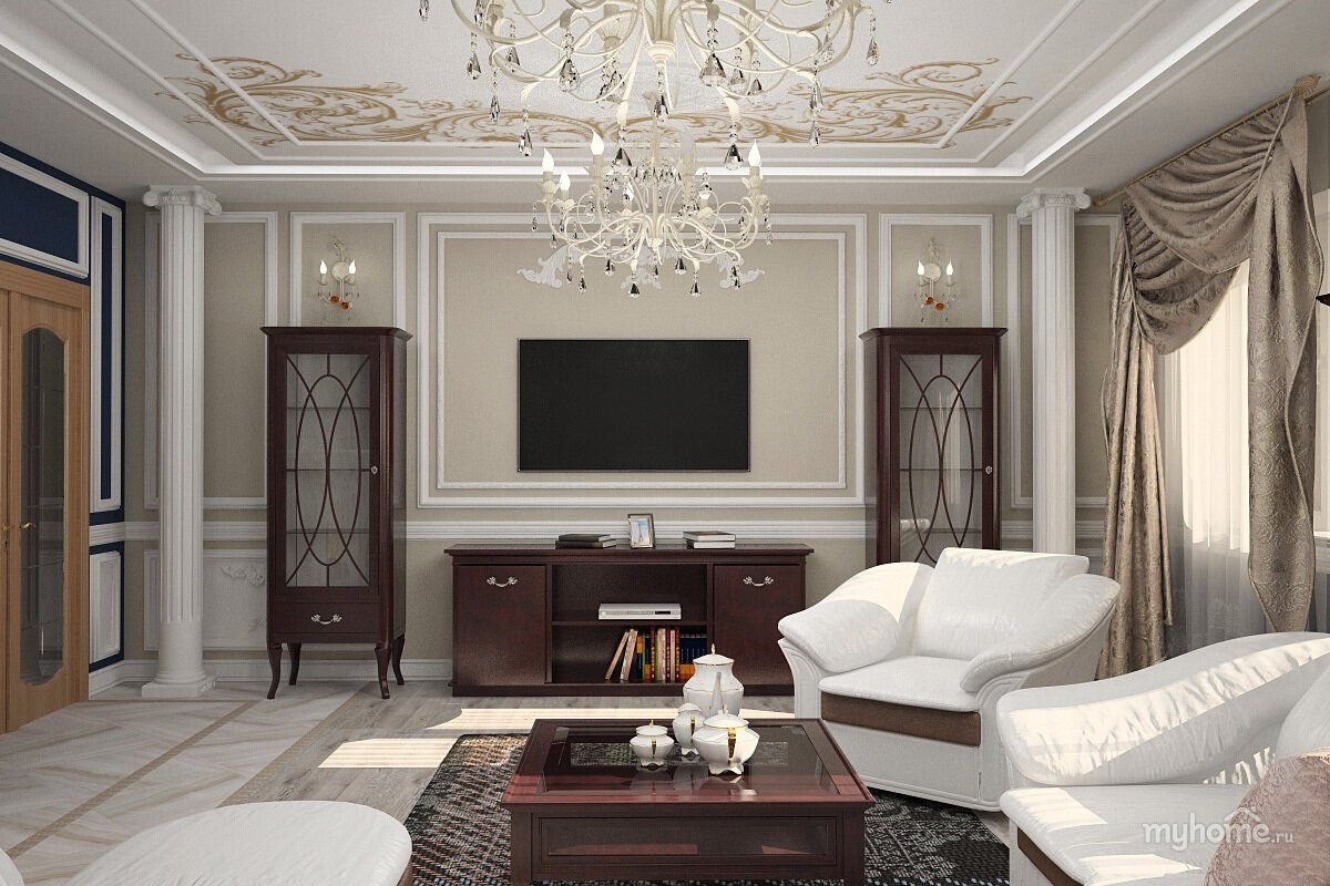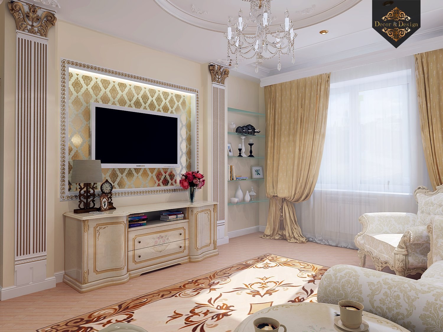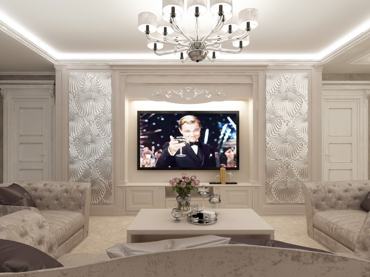 Линкруста в интерьере гостиной в стиле Неоклассика