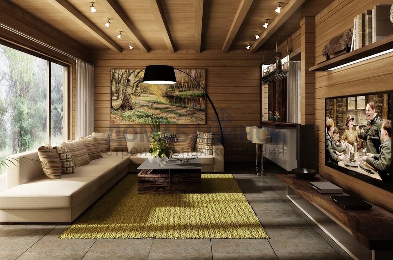 Интерьер гостиной в доме из клееного бруса