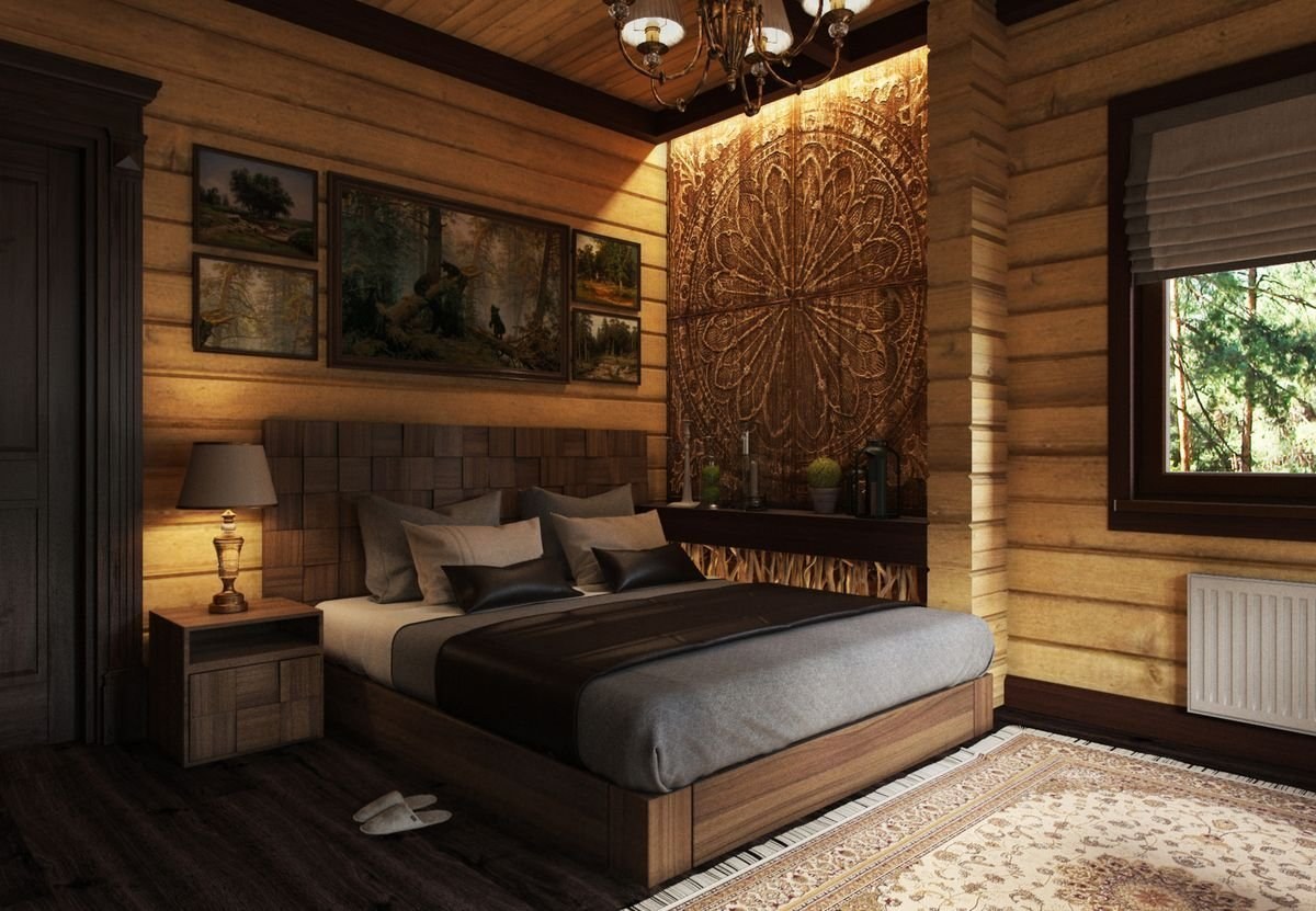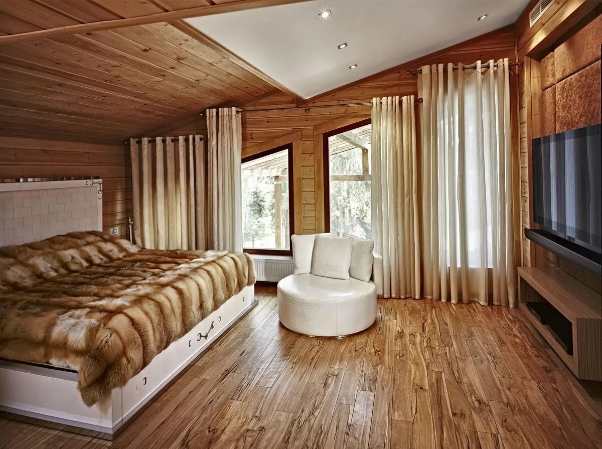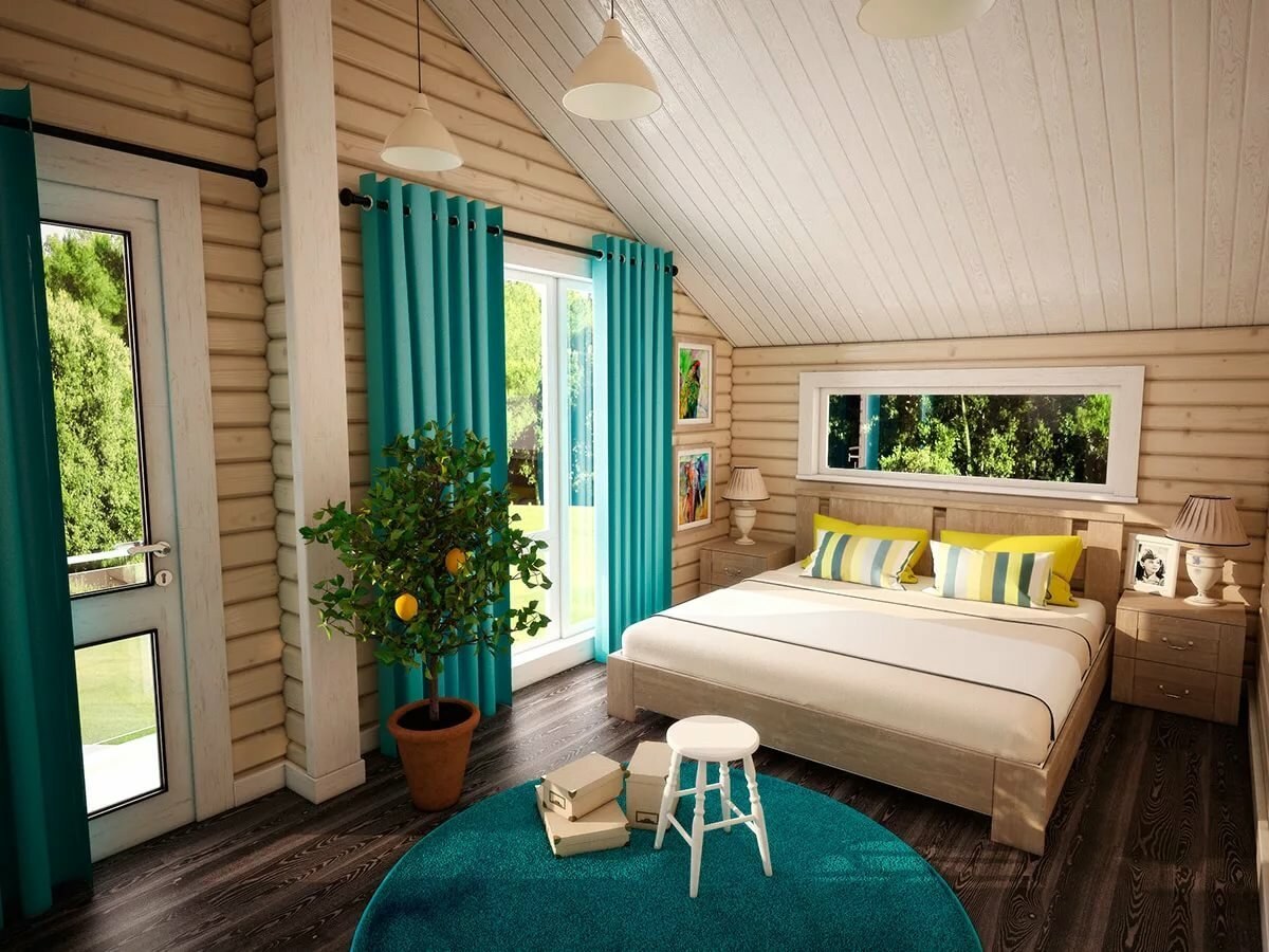 Интерьер спальни в деревянном доме