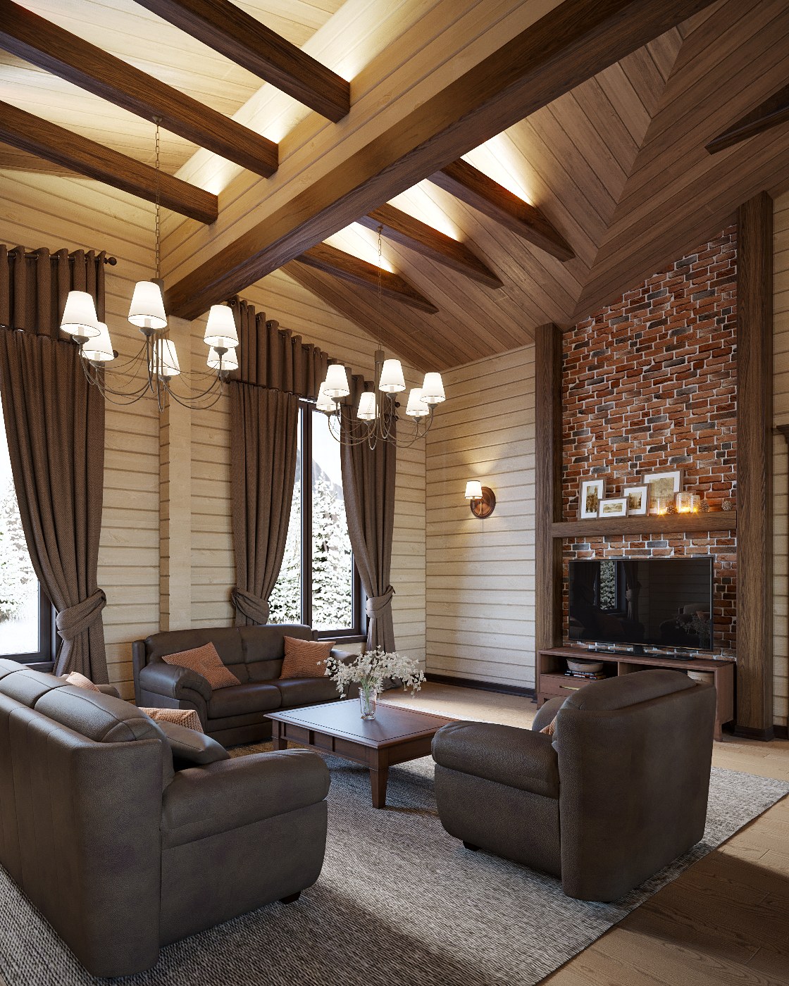 Интерьер брусового дома в стиле Кантри