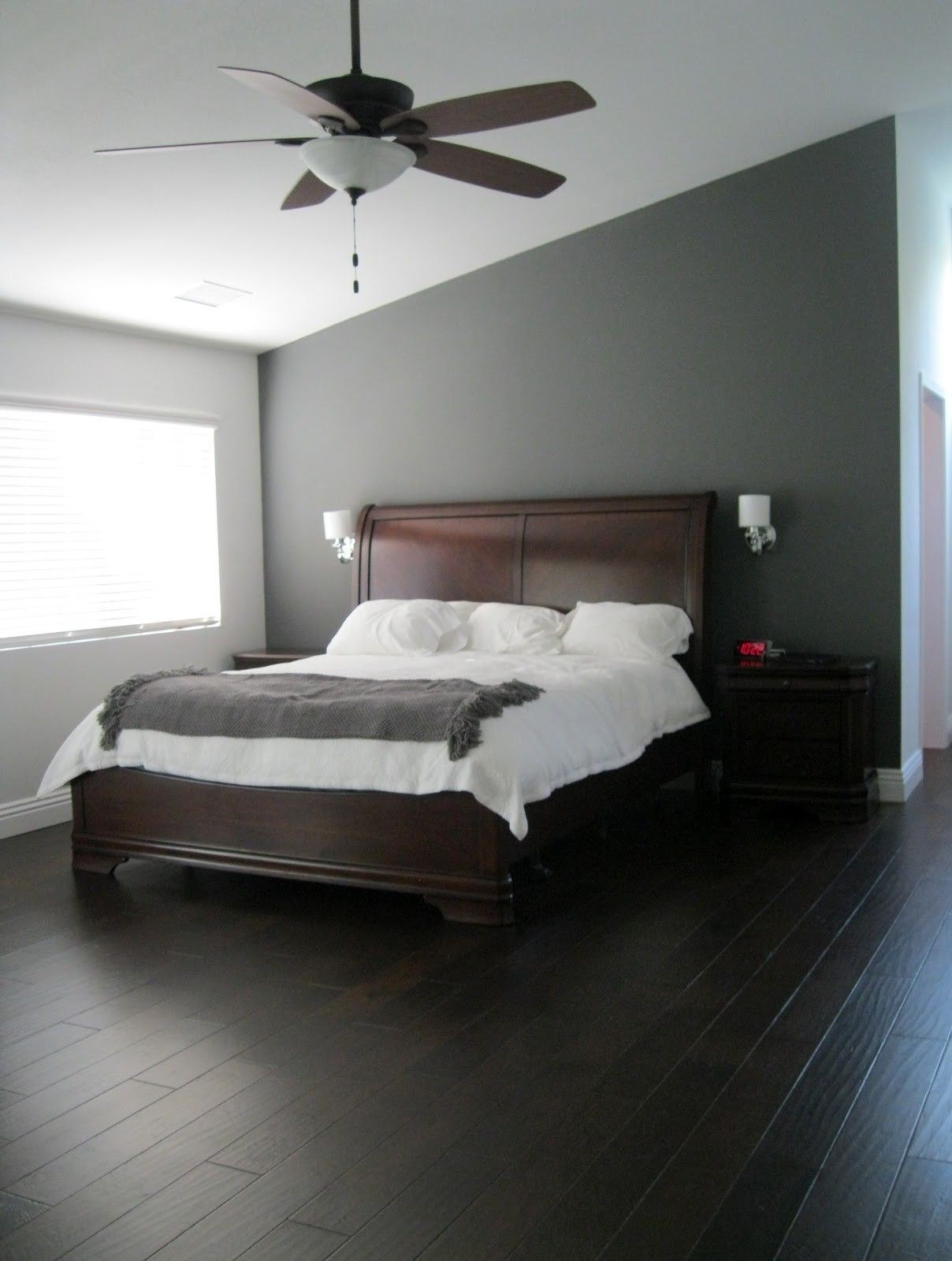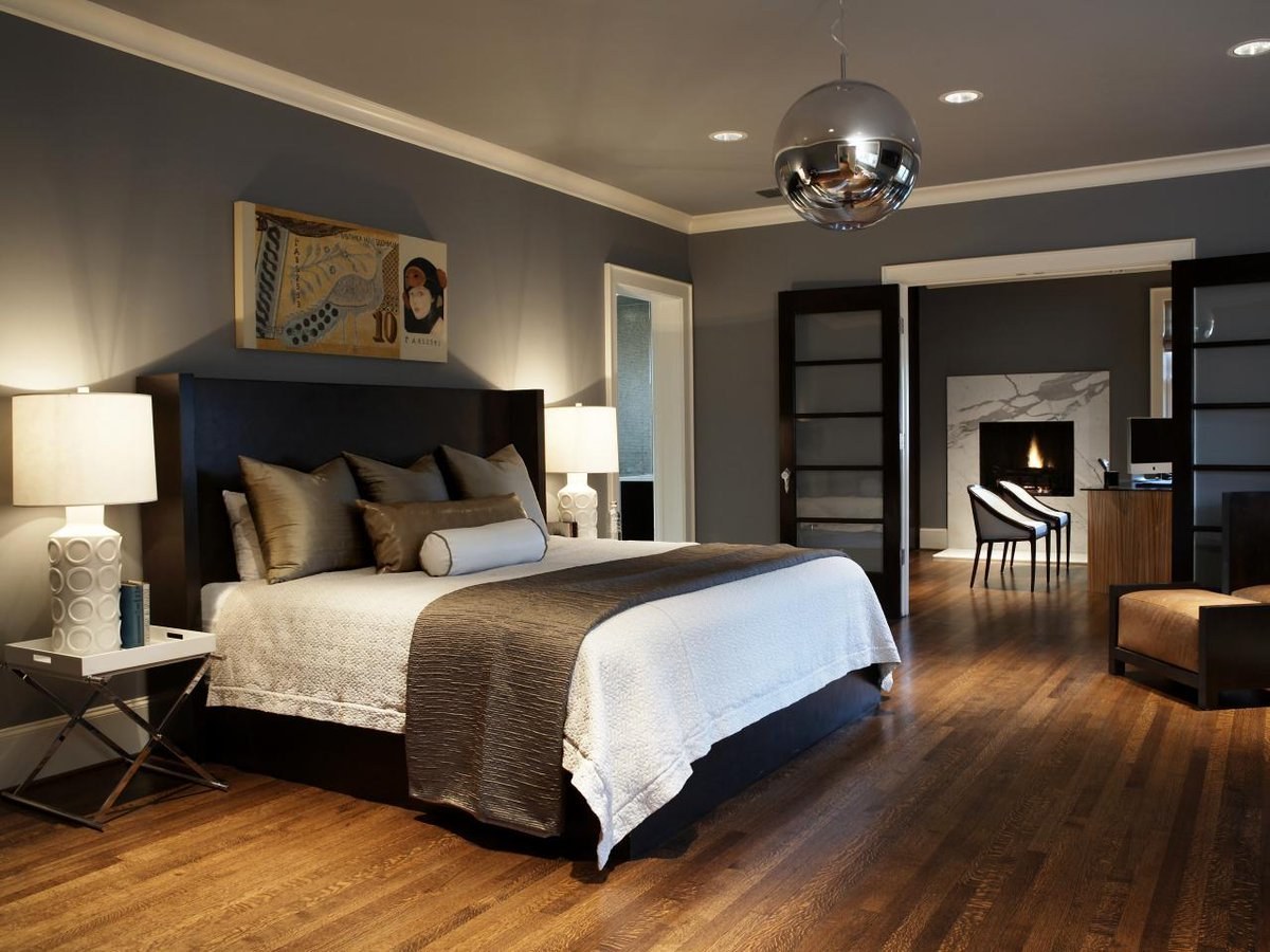 Спальня с темными полами