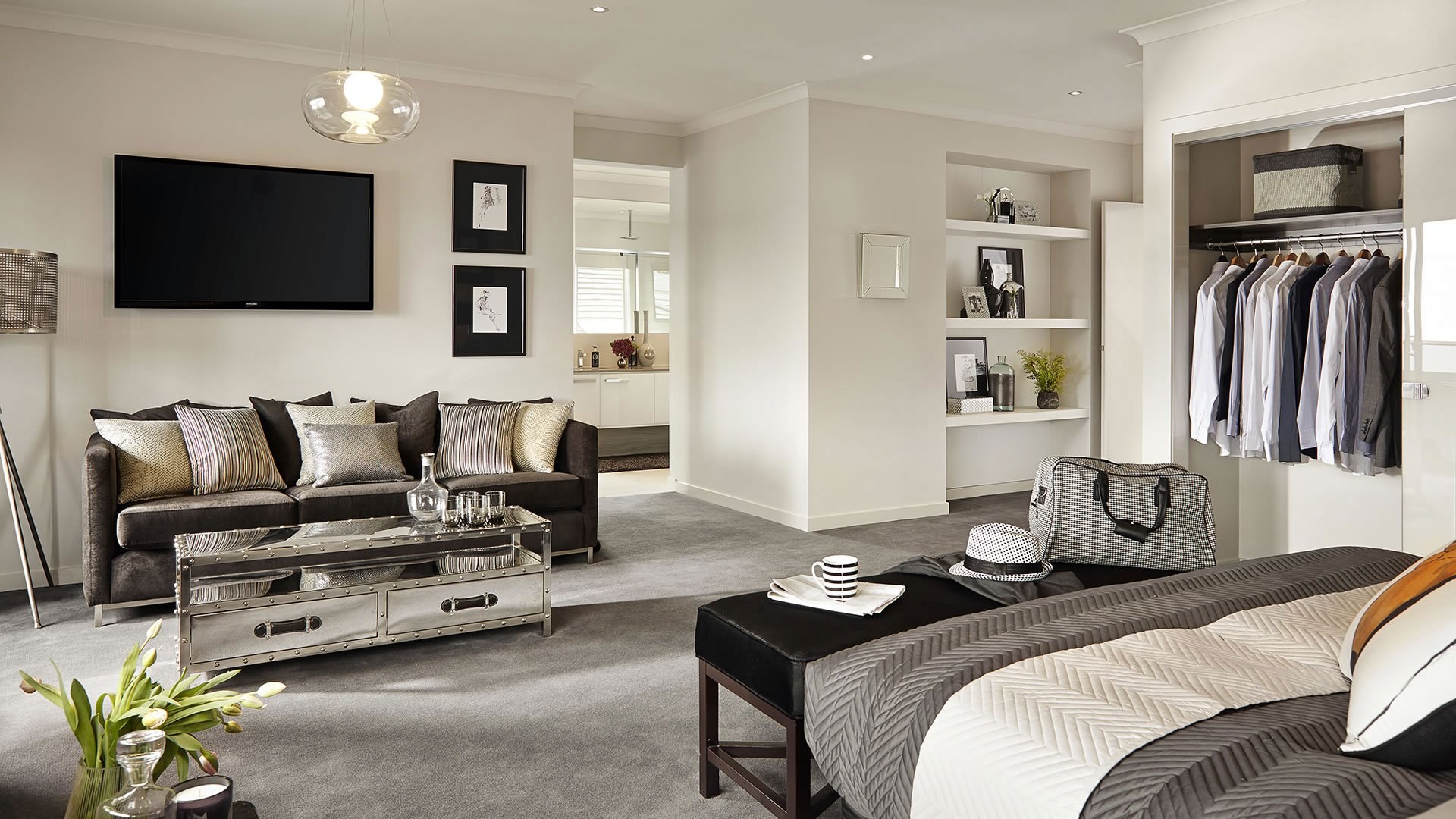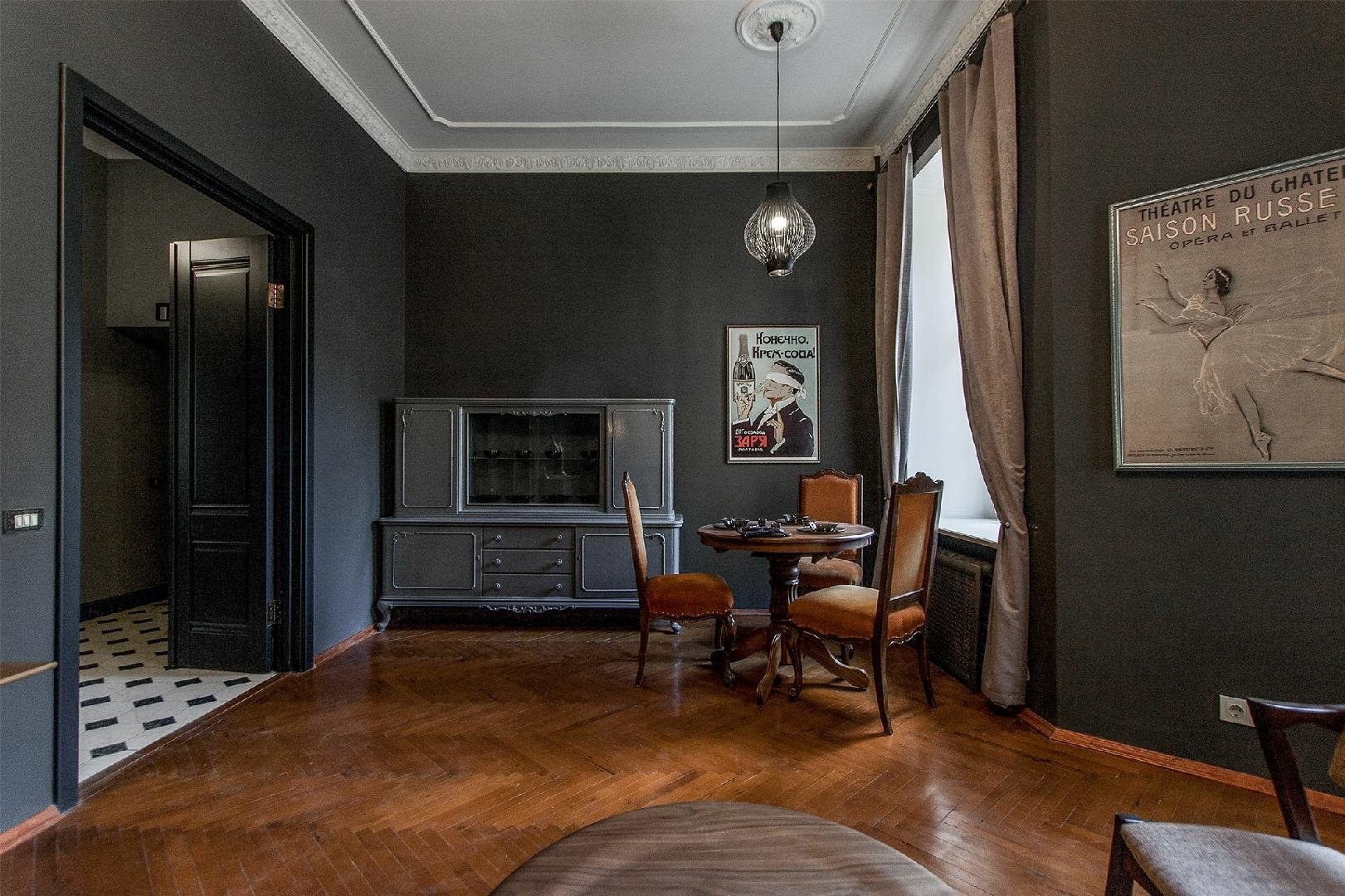 Серые стены черная мебель