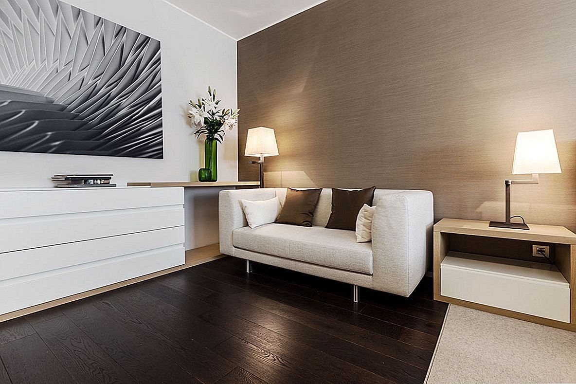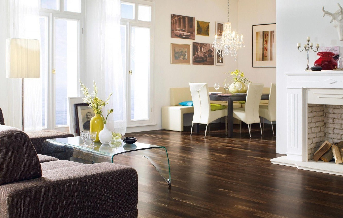 Коричневый ламинат в интерьере гостиной