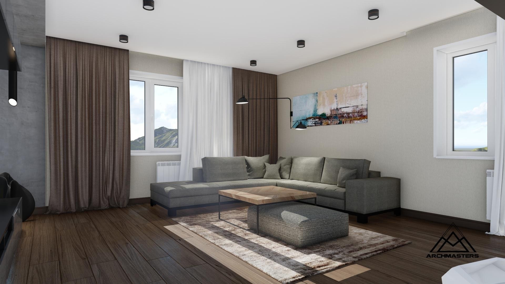 Гостиная с серым полом