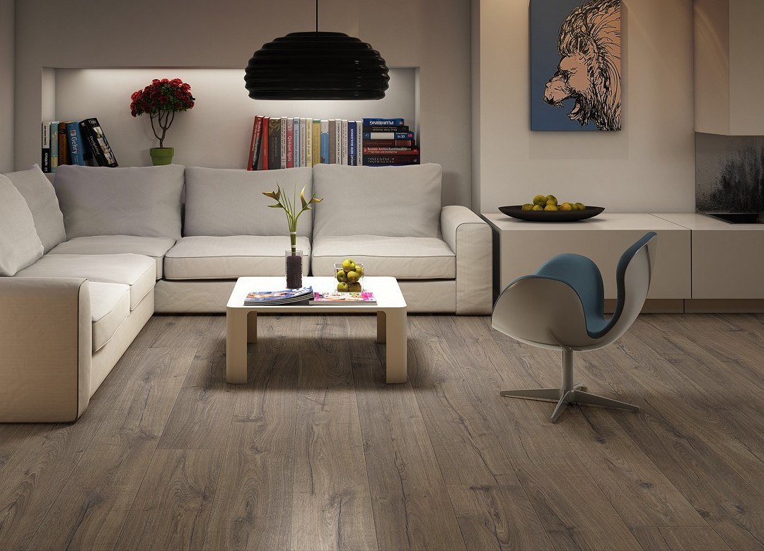 Серый ламинат в интерьере гостиной