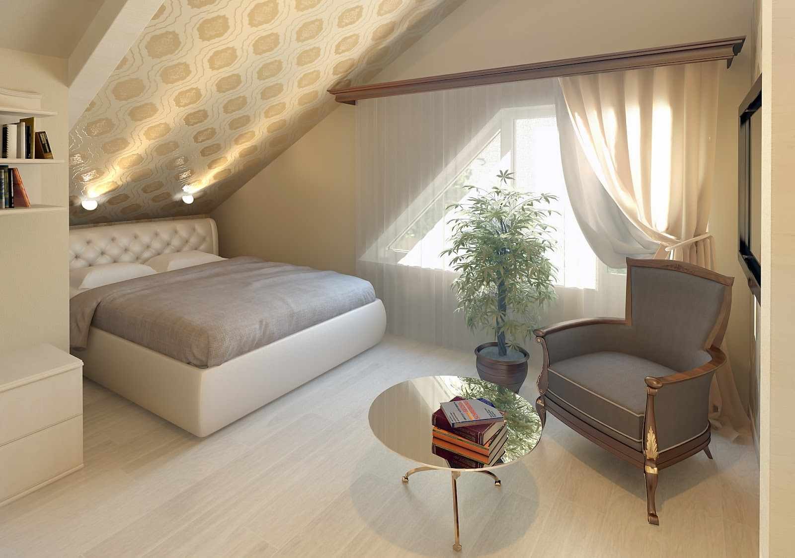 Отделка спальни в мансарде