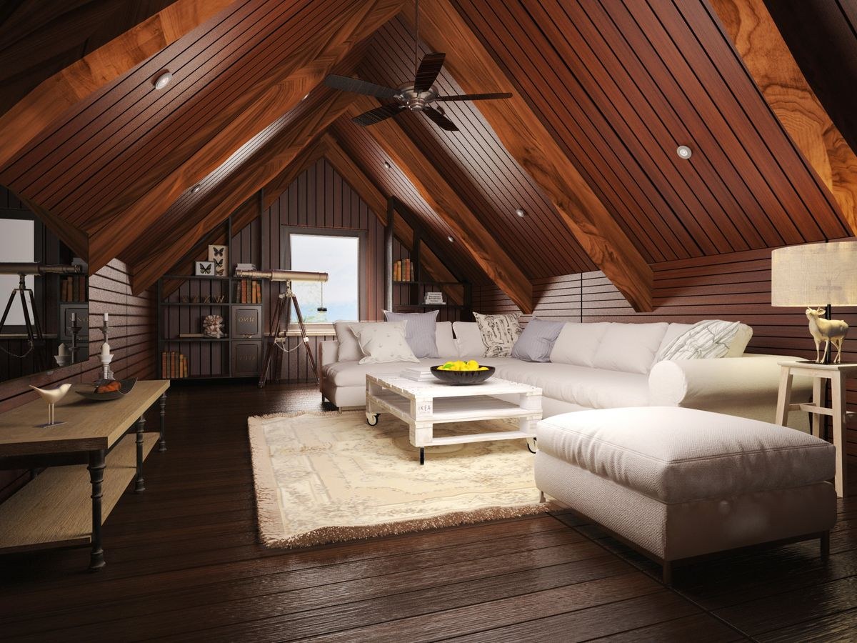 Интерьер чердака на даче