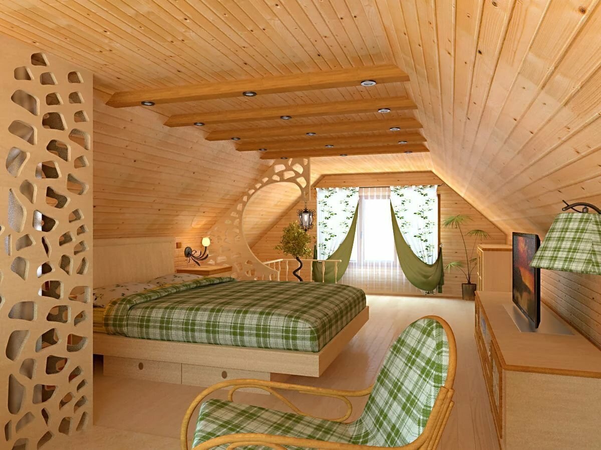 Деревянная мансарда интерьер