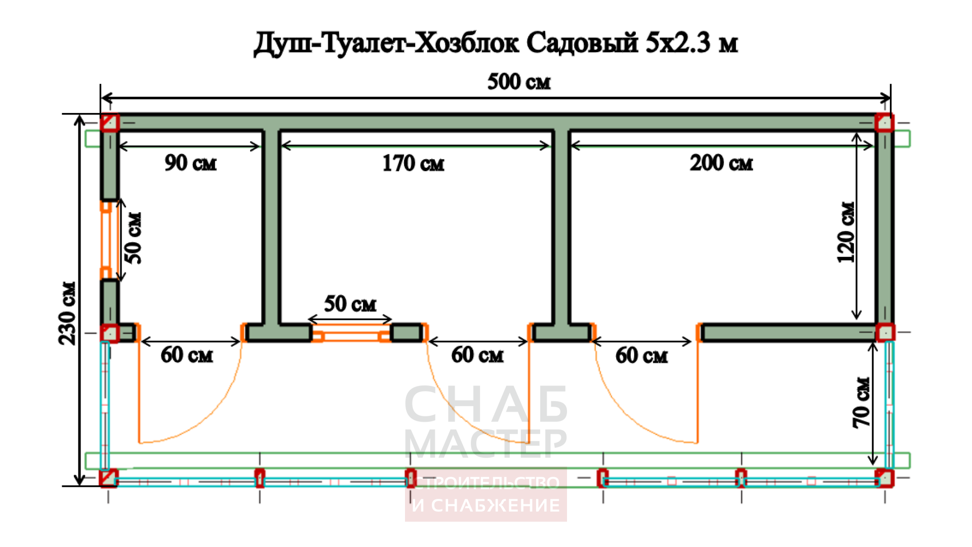 Туалет - душ - хозблок (размер 2-1,2-1,2 м)