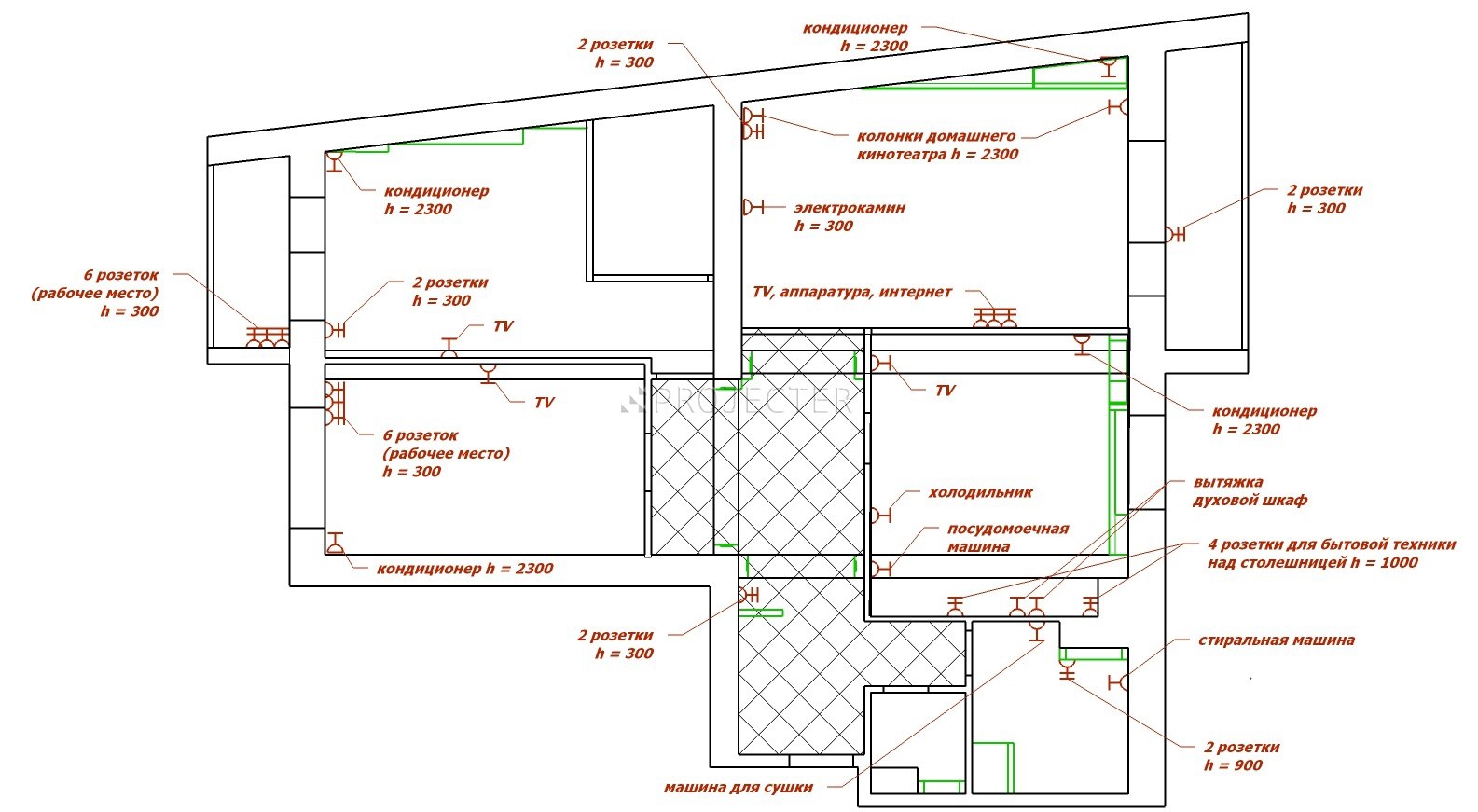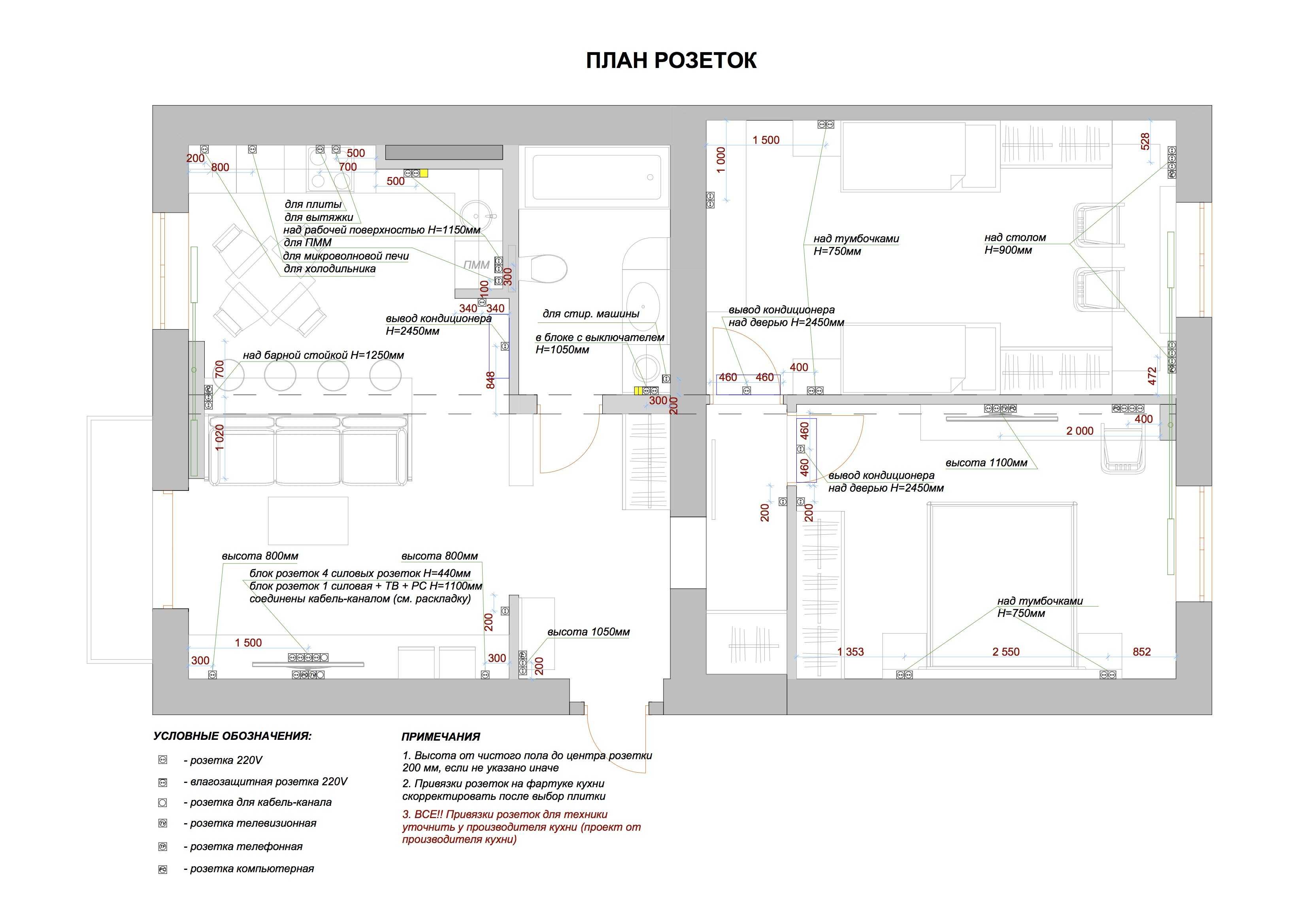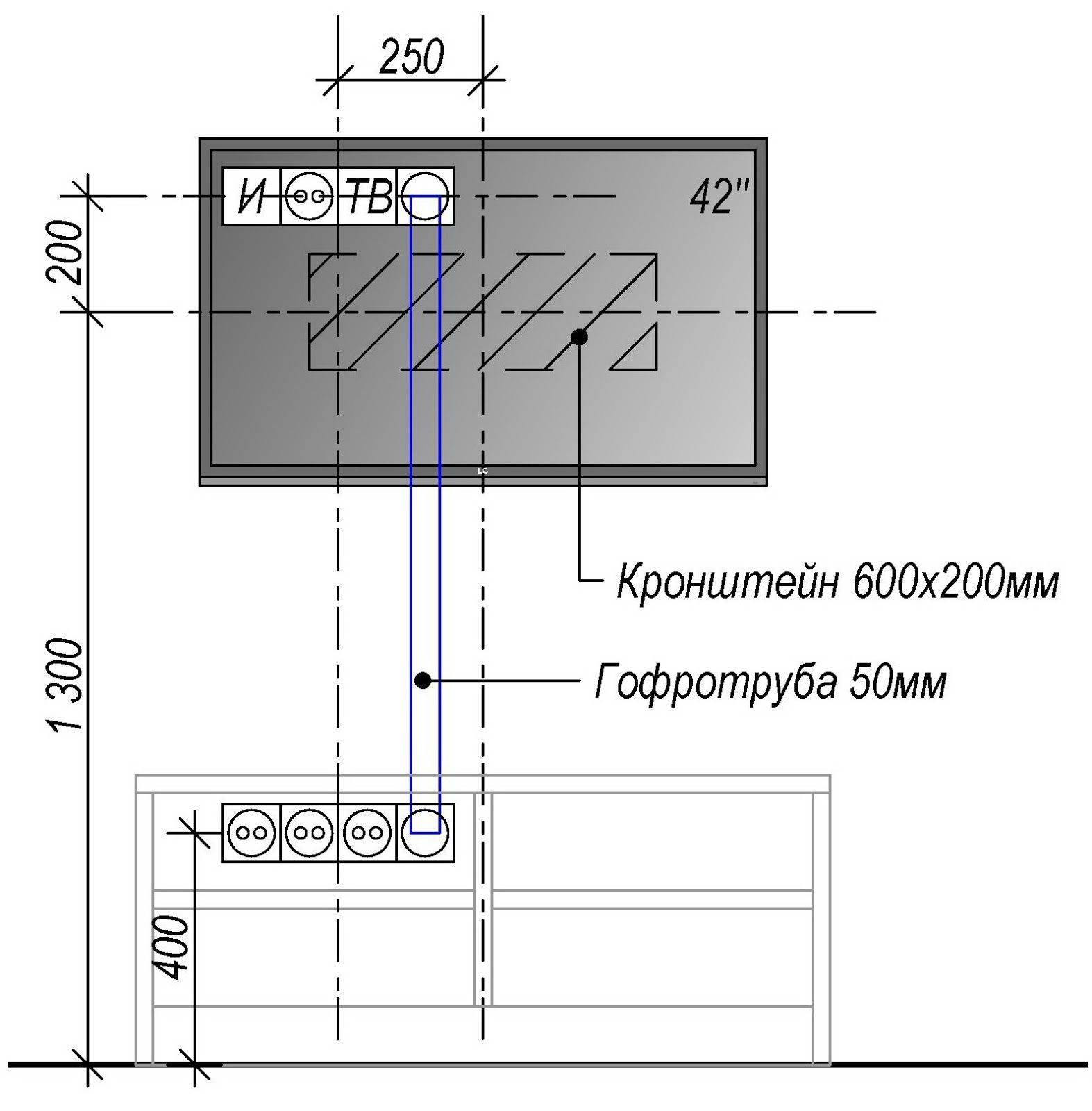 Блок розеток 220, антенна, интернет, HDMI для телевизора