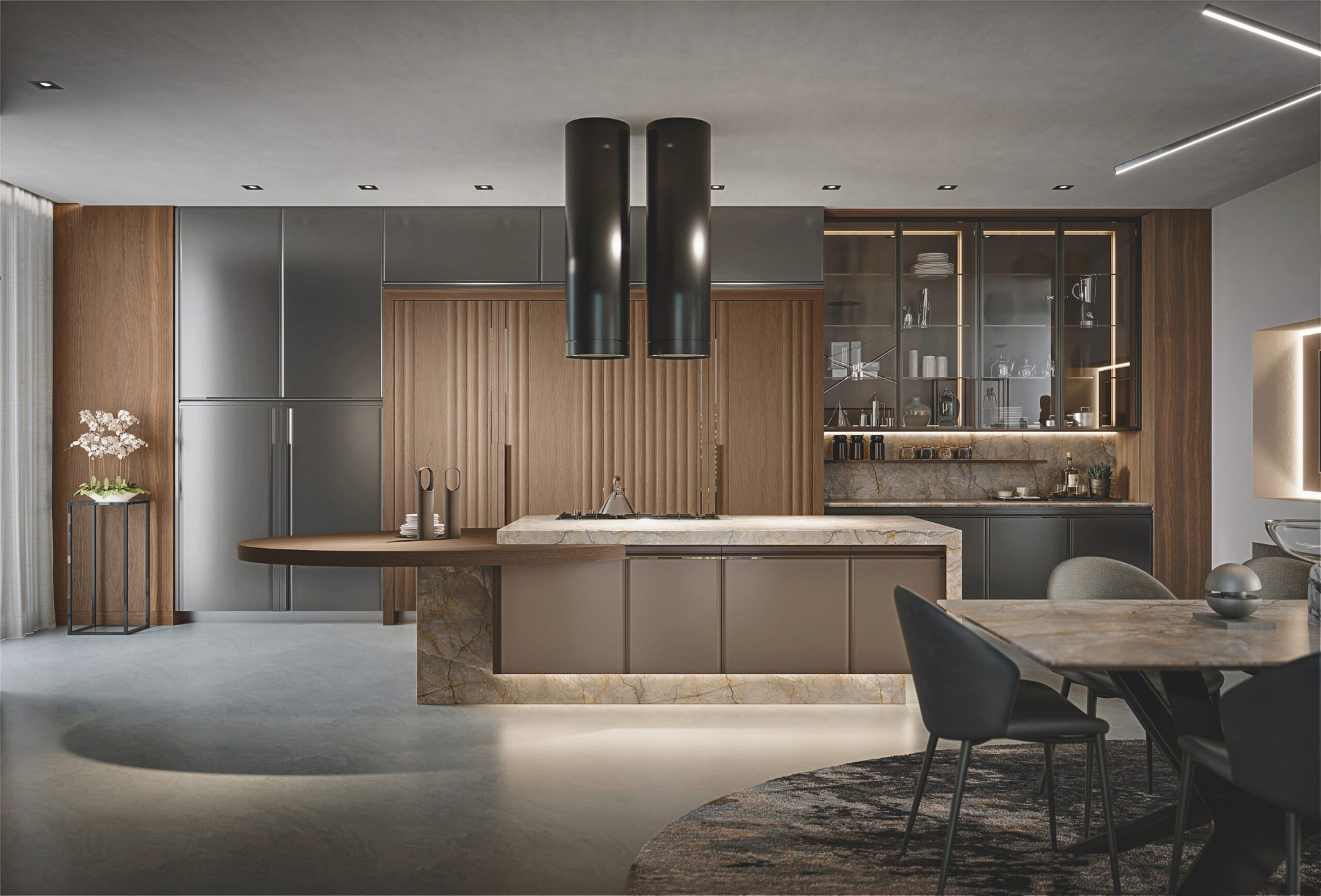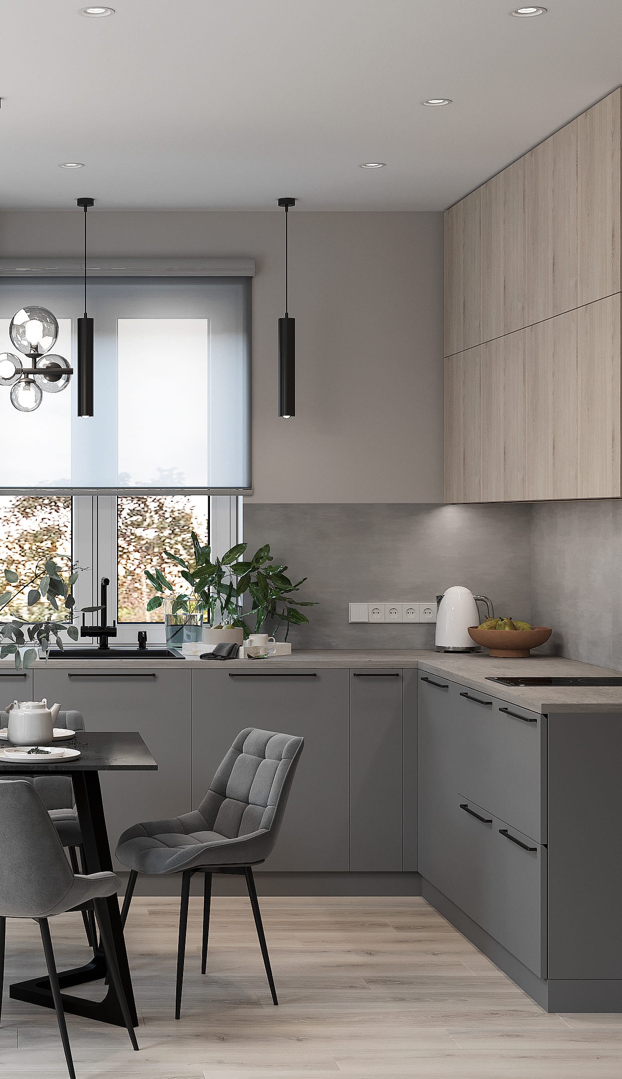 Обеденная зона для кухни графит и дерево