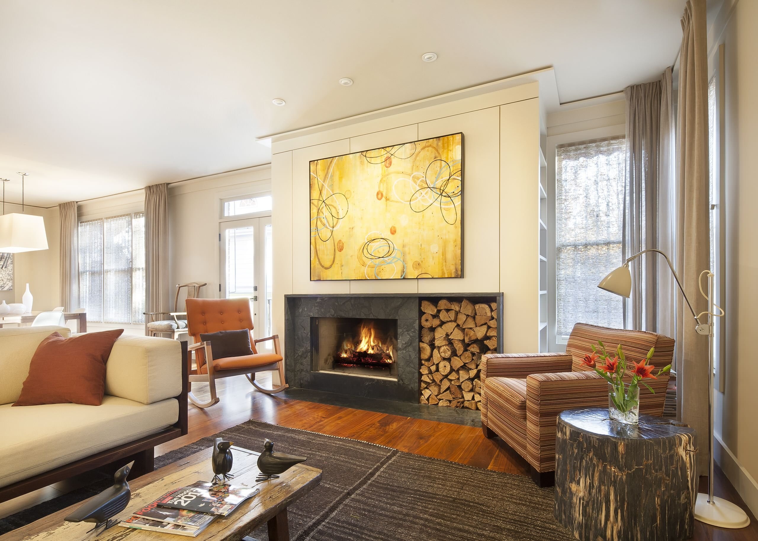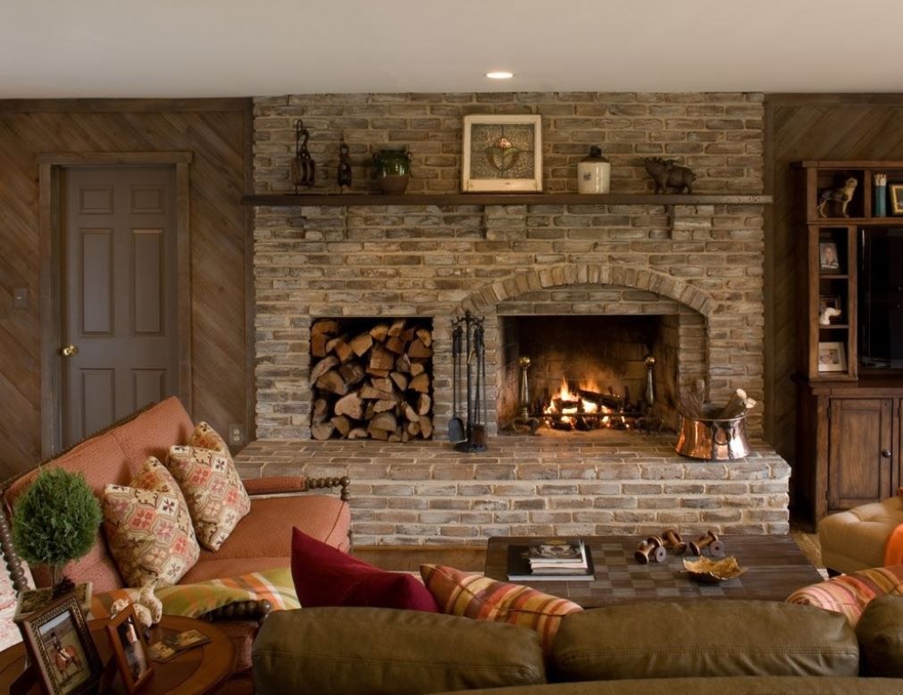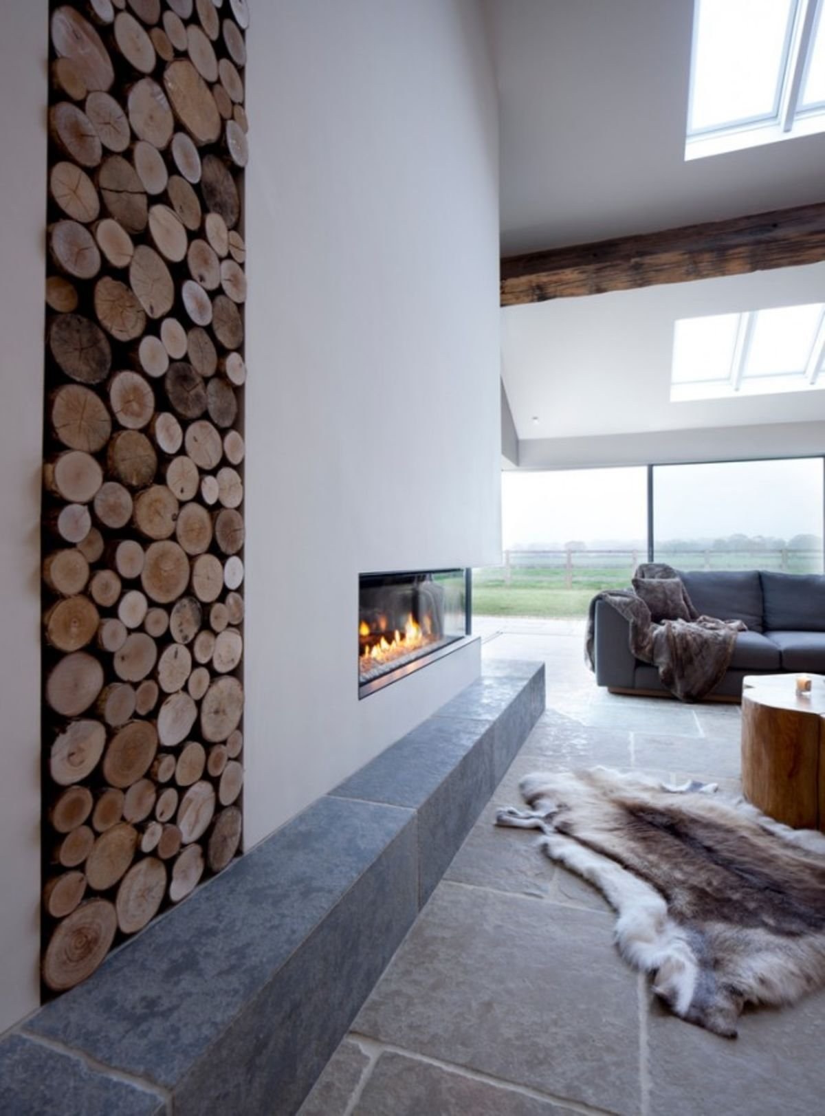 Камин с дровами в интерьере с чем сочетается (92 фото)