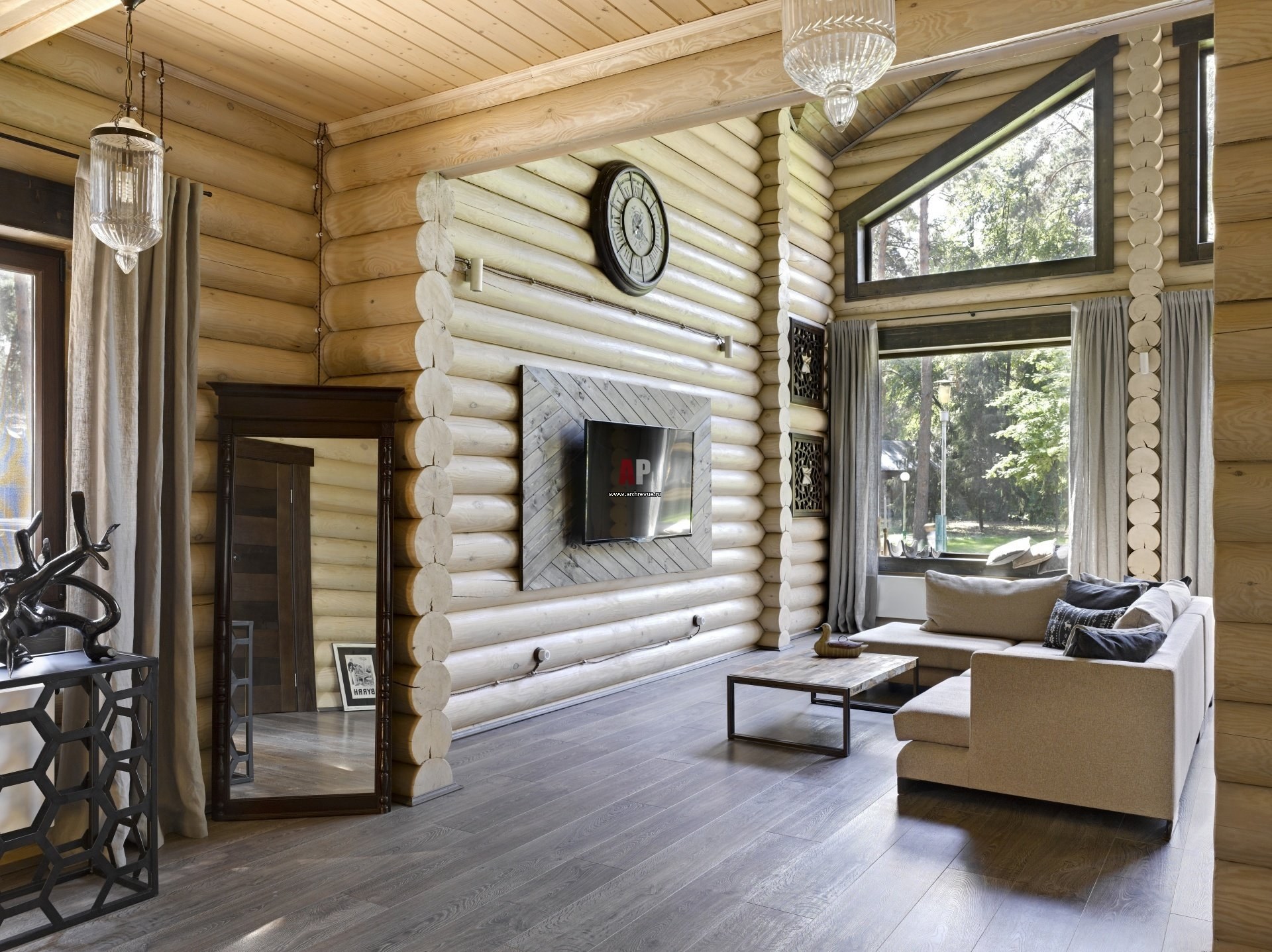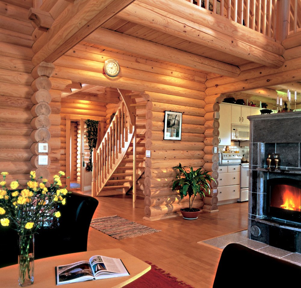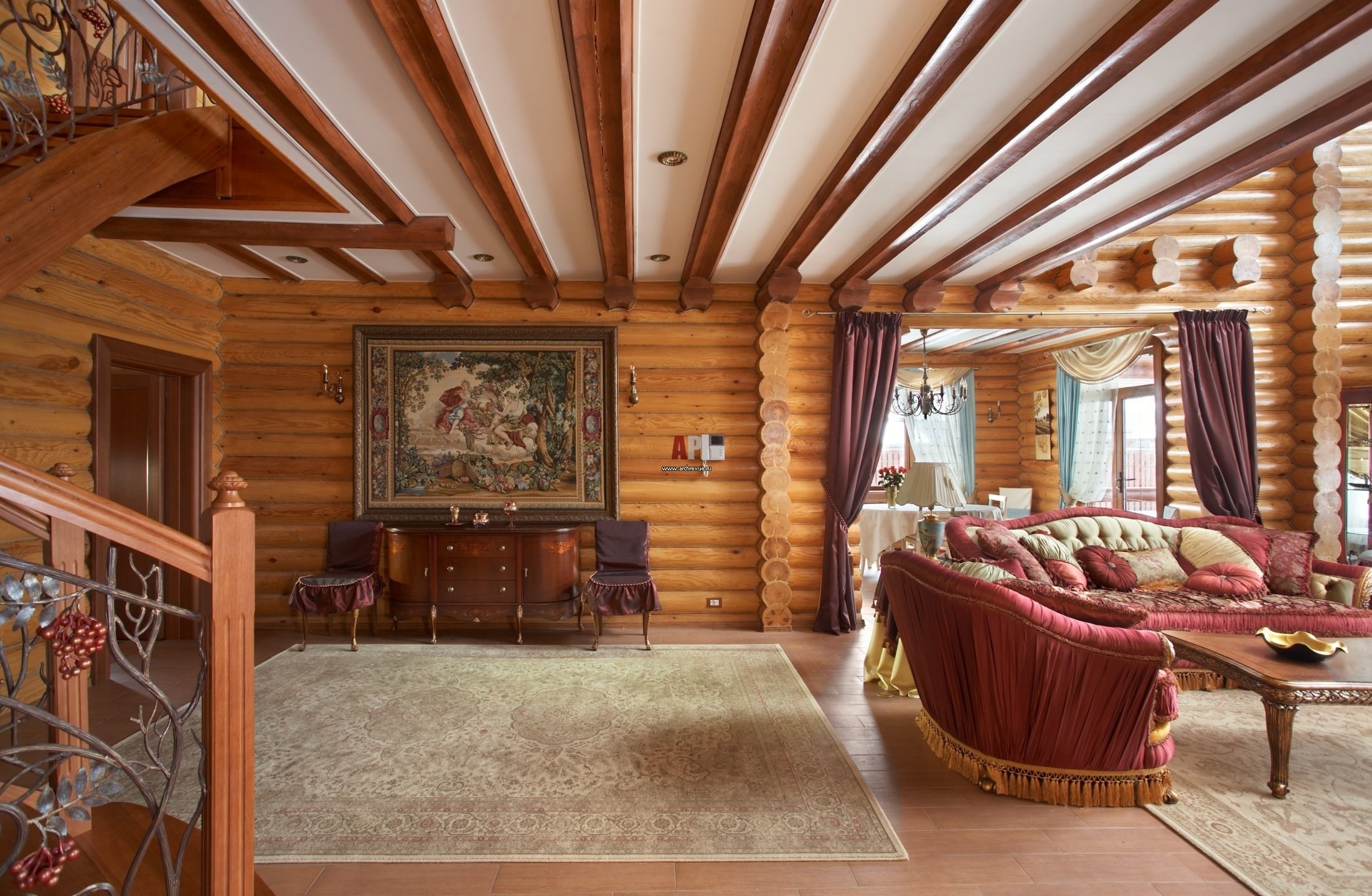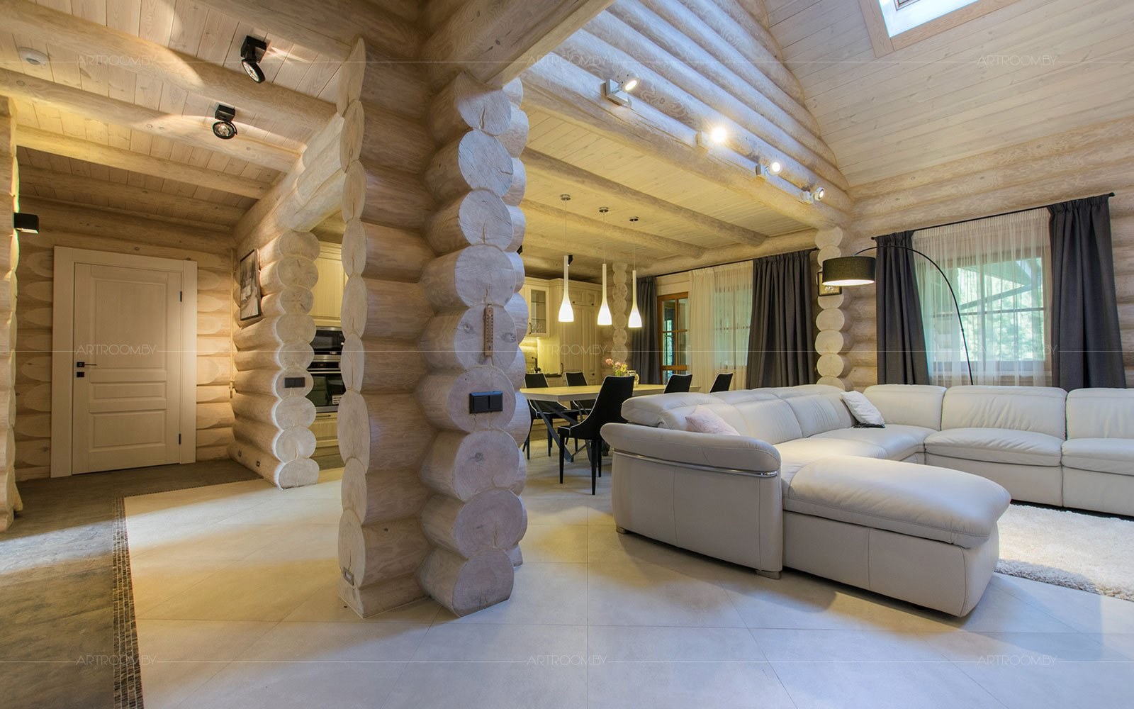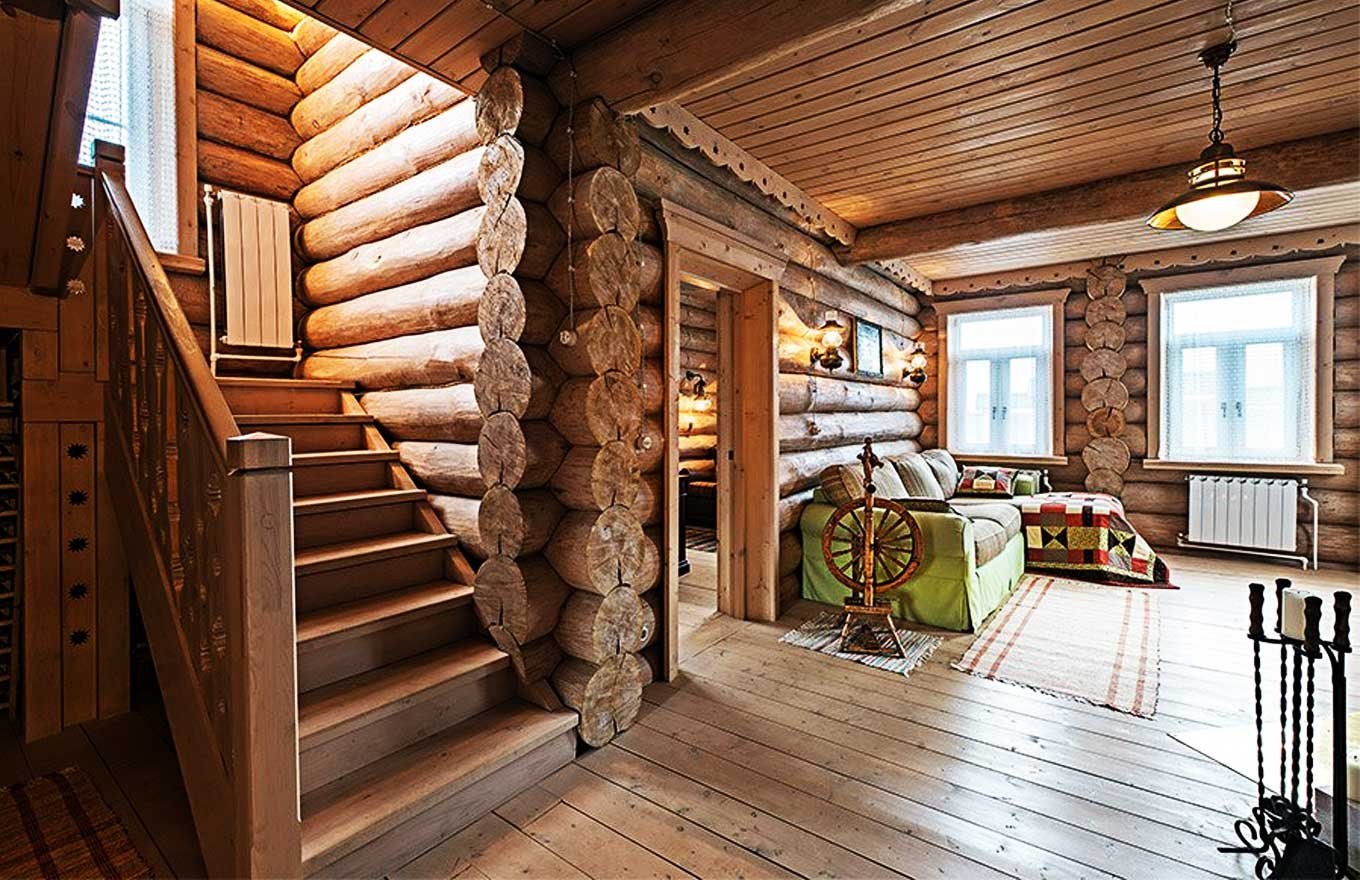Дом из оцилиндрованного бревна интерьер стиль Кантри
