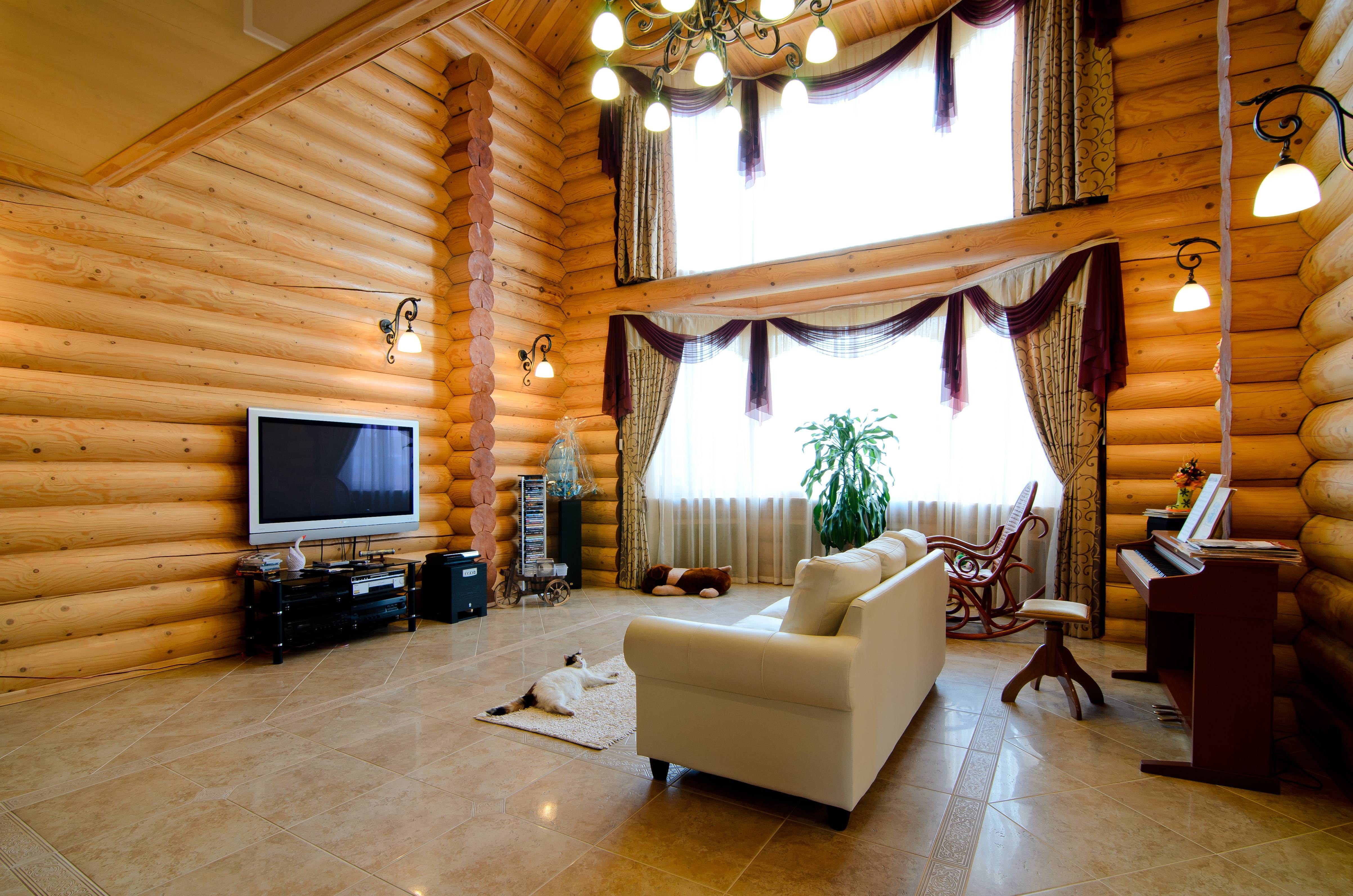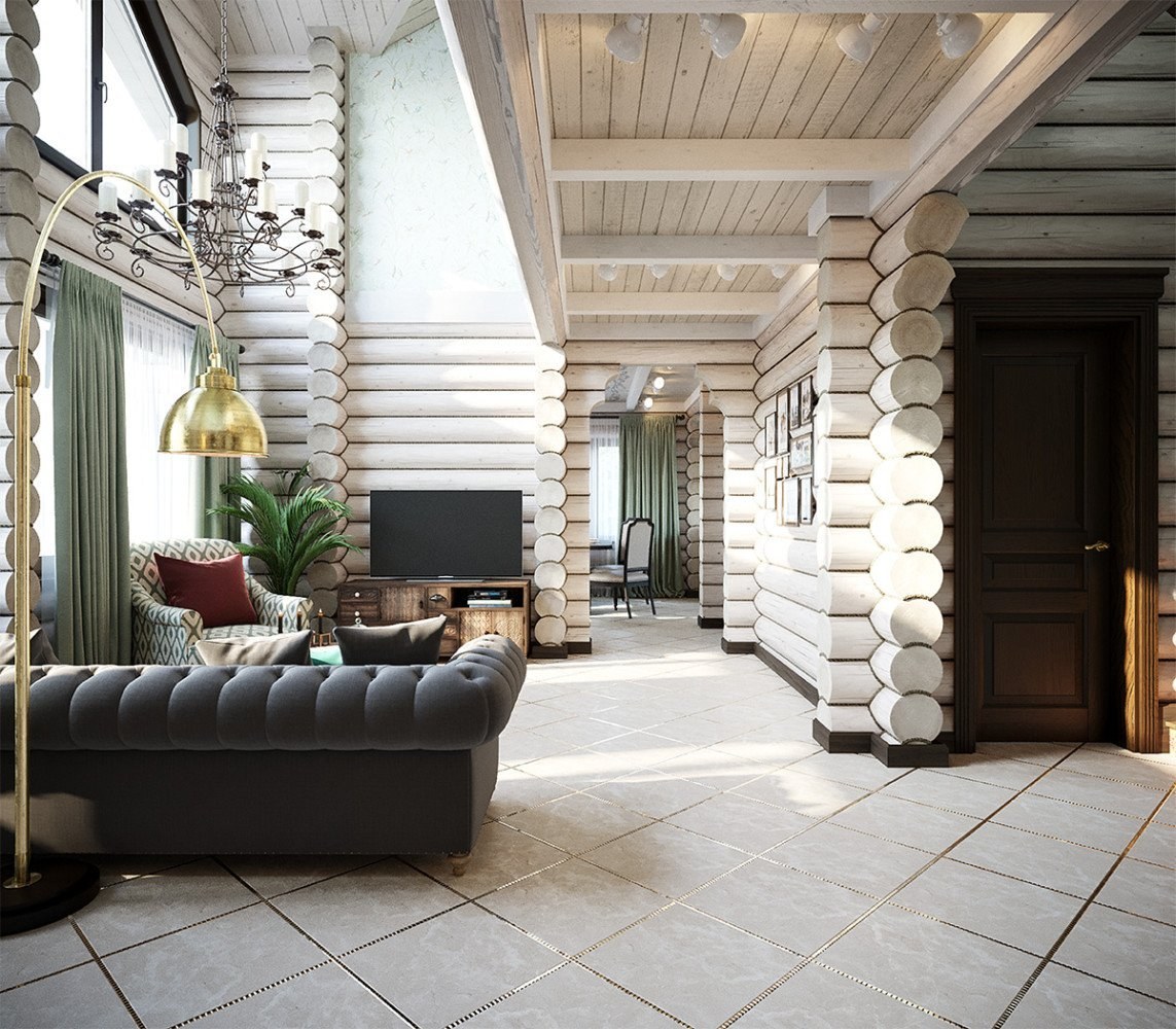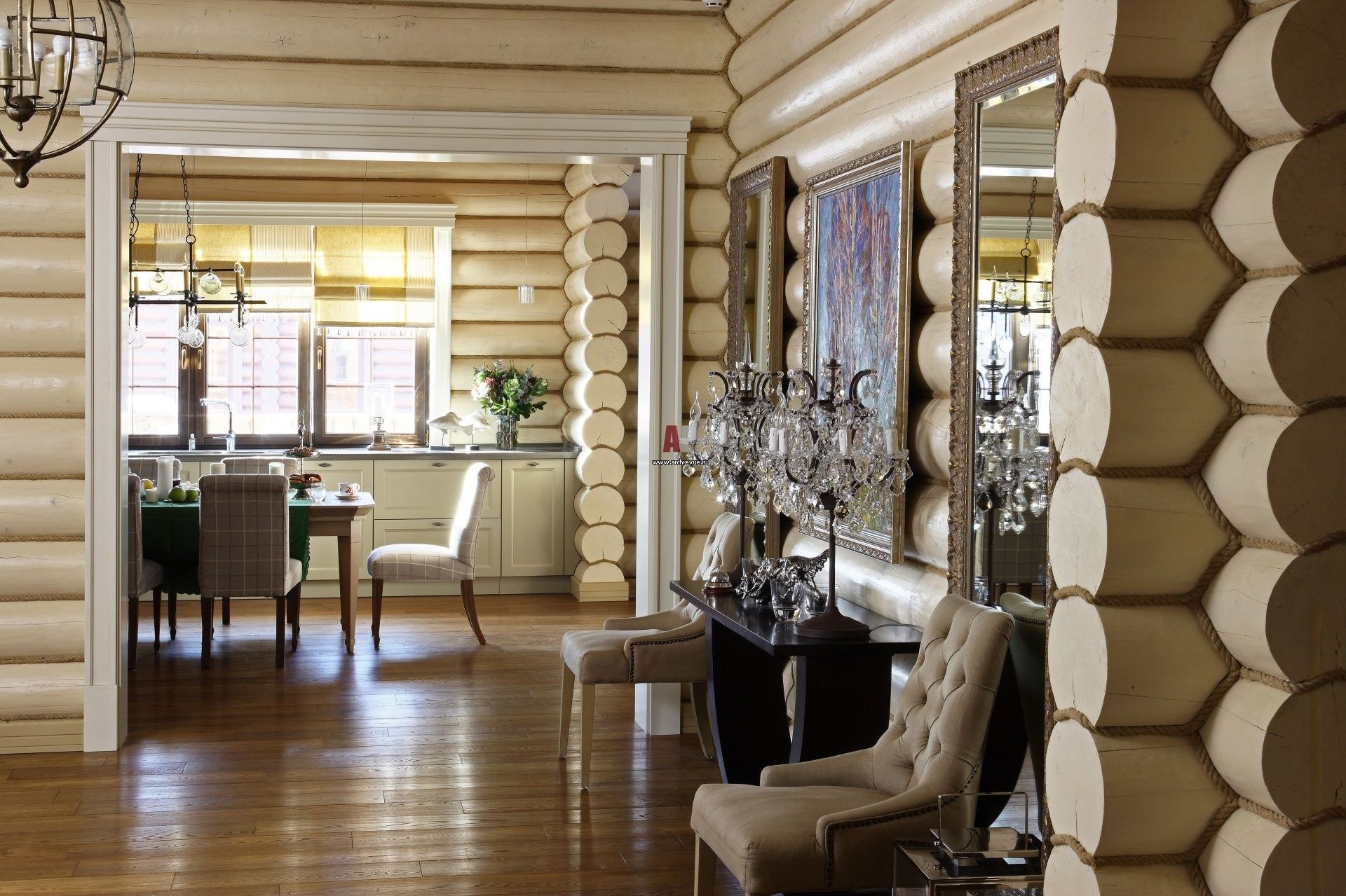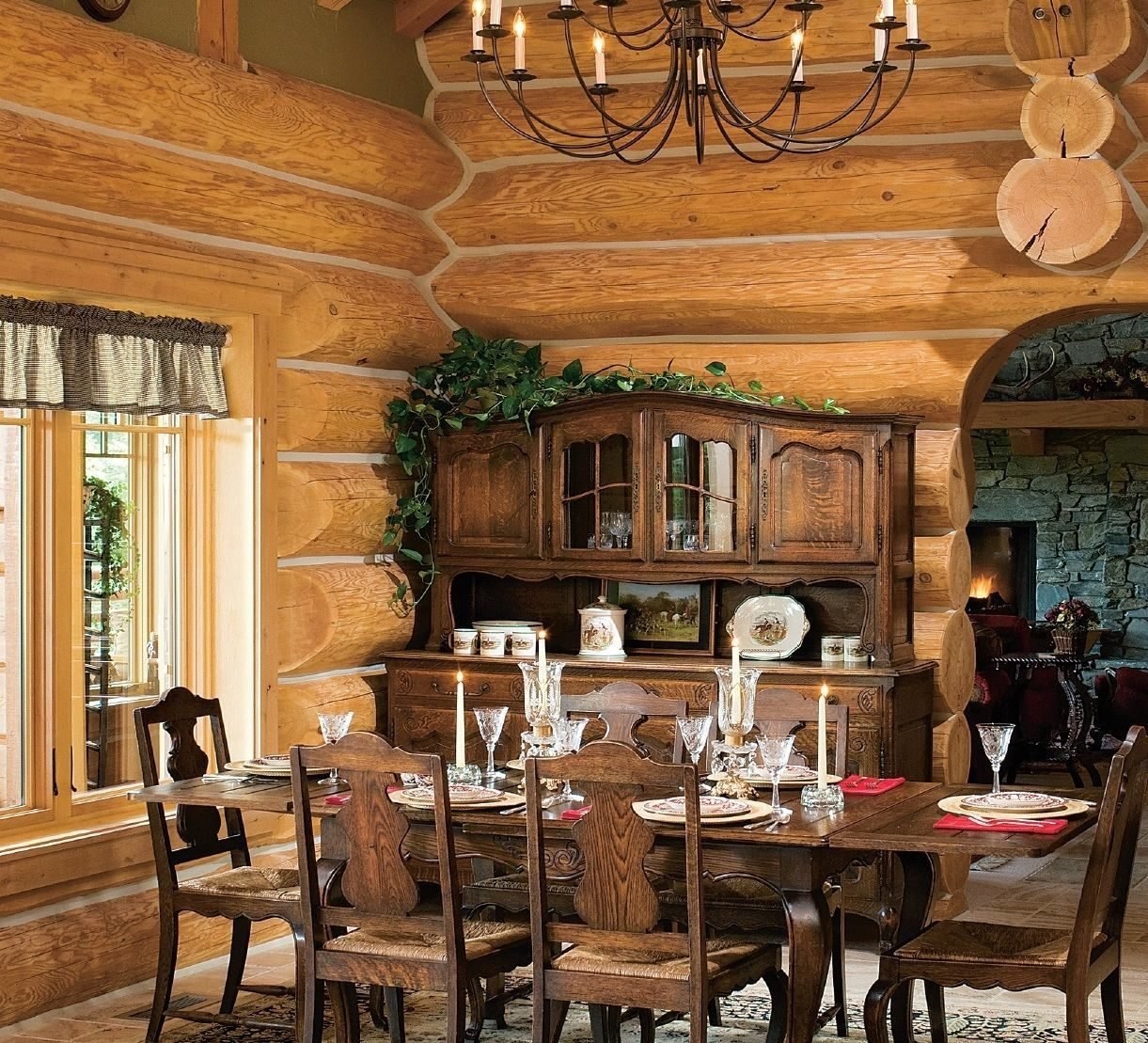 Дом из оцилиндрованного бревна интерьер стиль Кантри