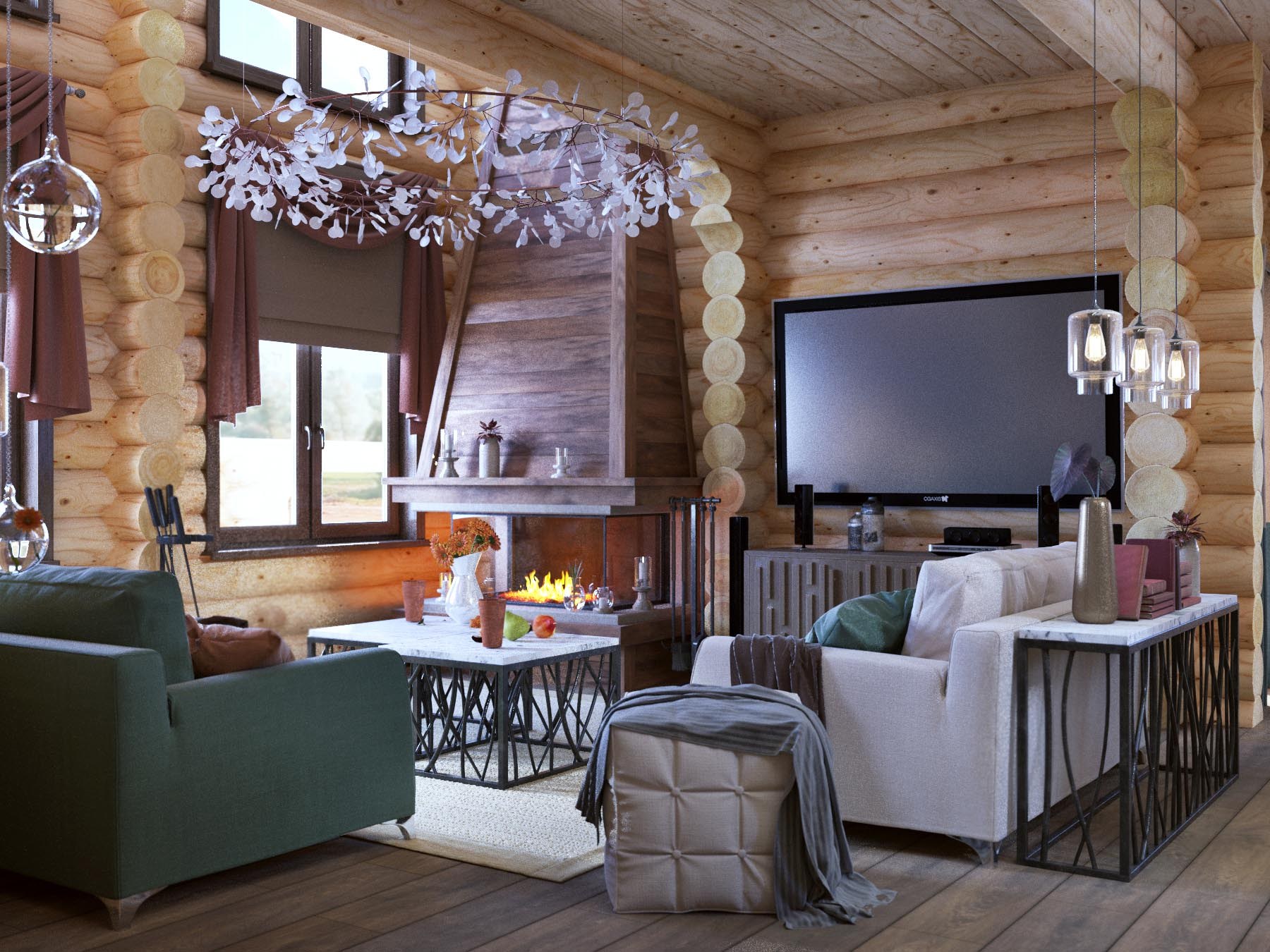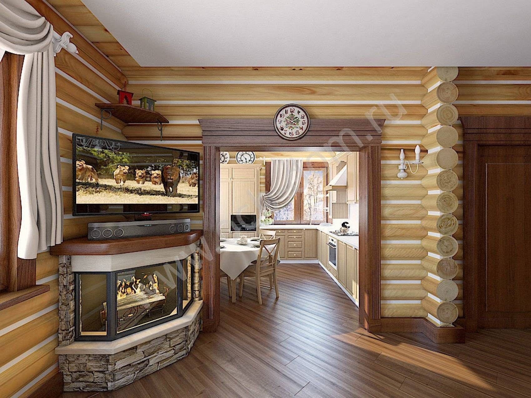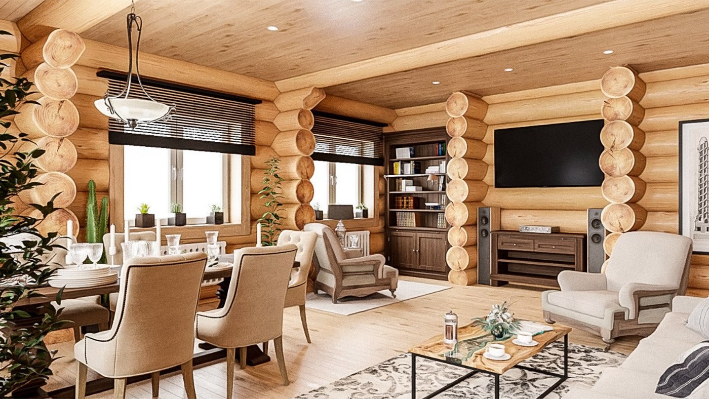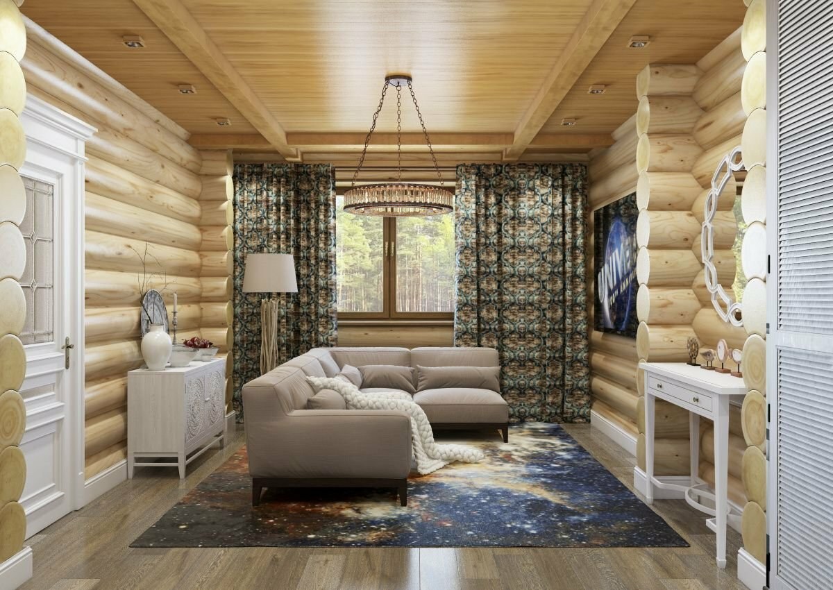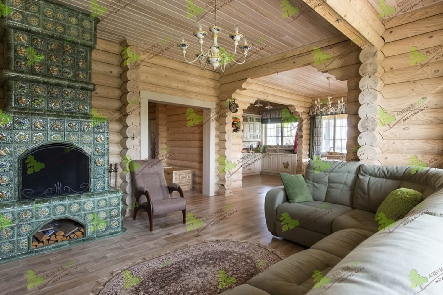 Дом из оцилиндрованного бревна интерьер стиль Кантри