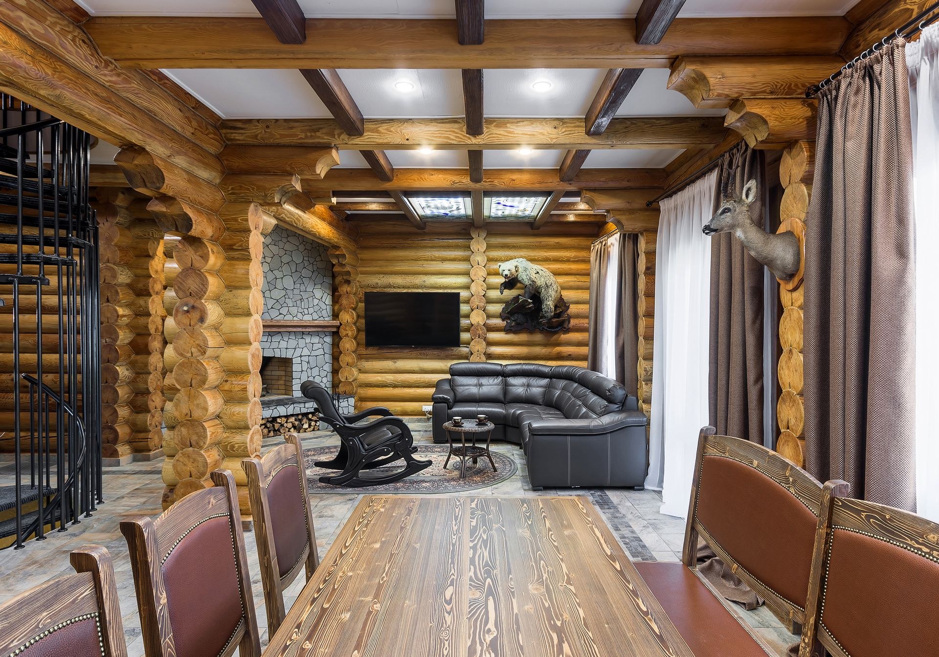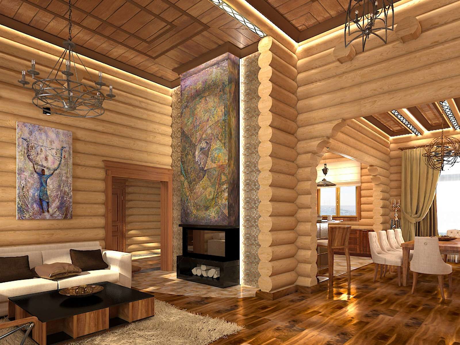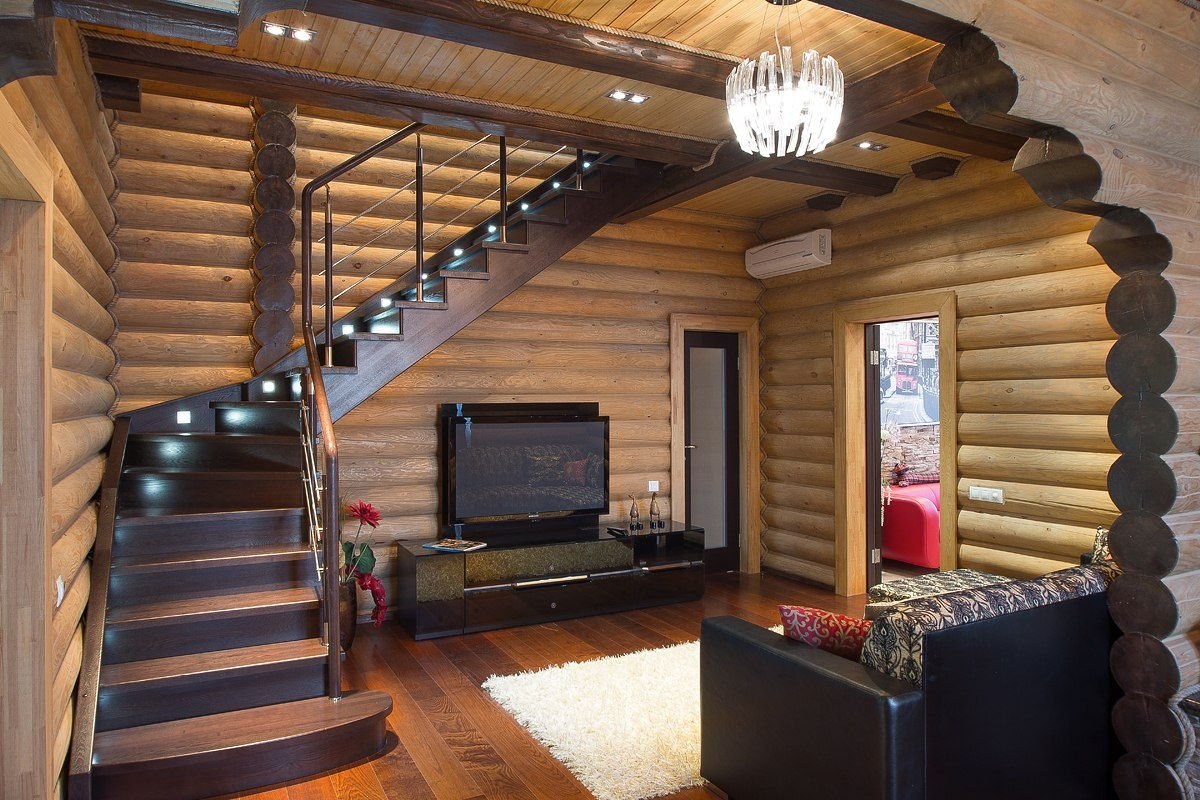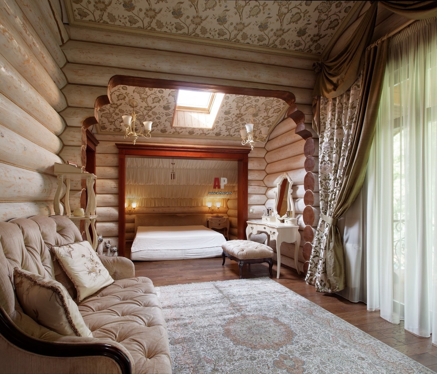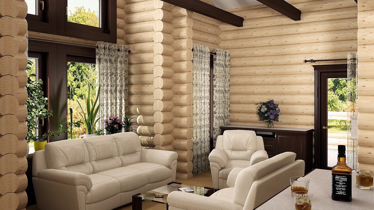 Дом из оцилиндрованного бревна интерьер стиль Кантри