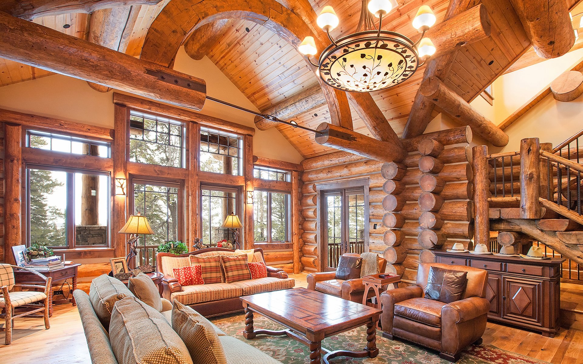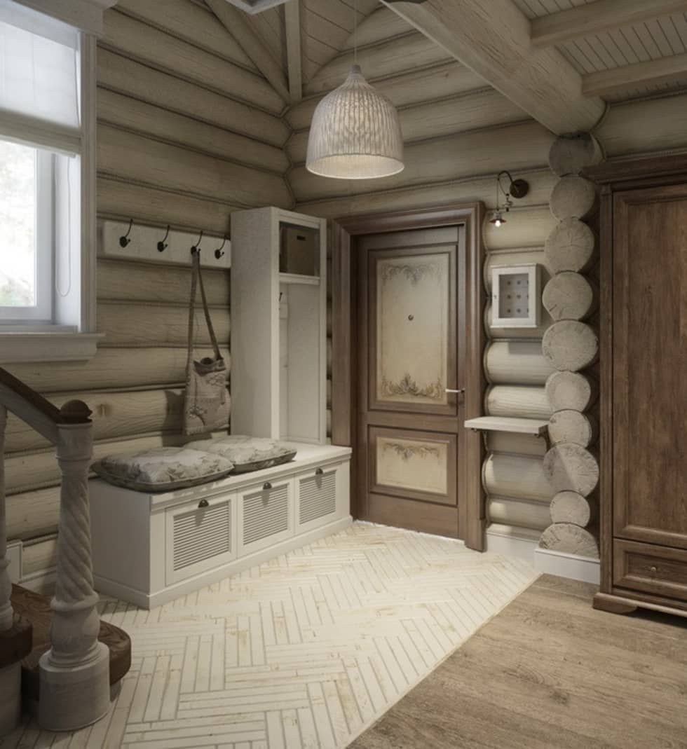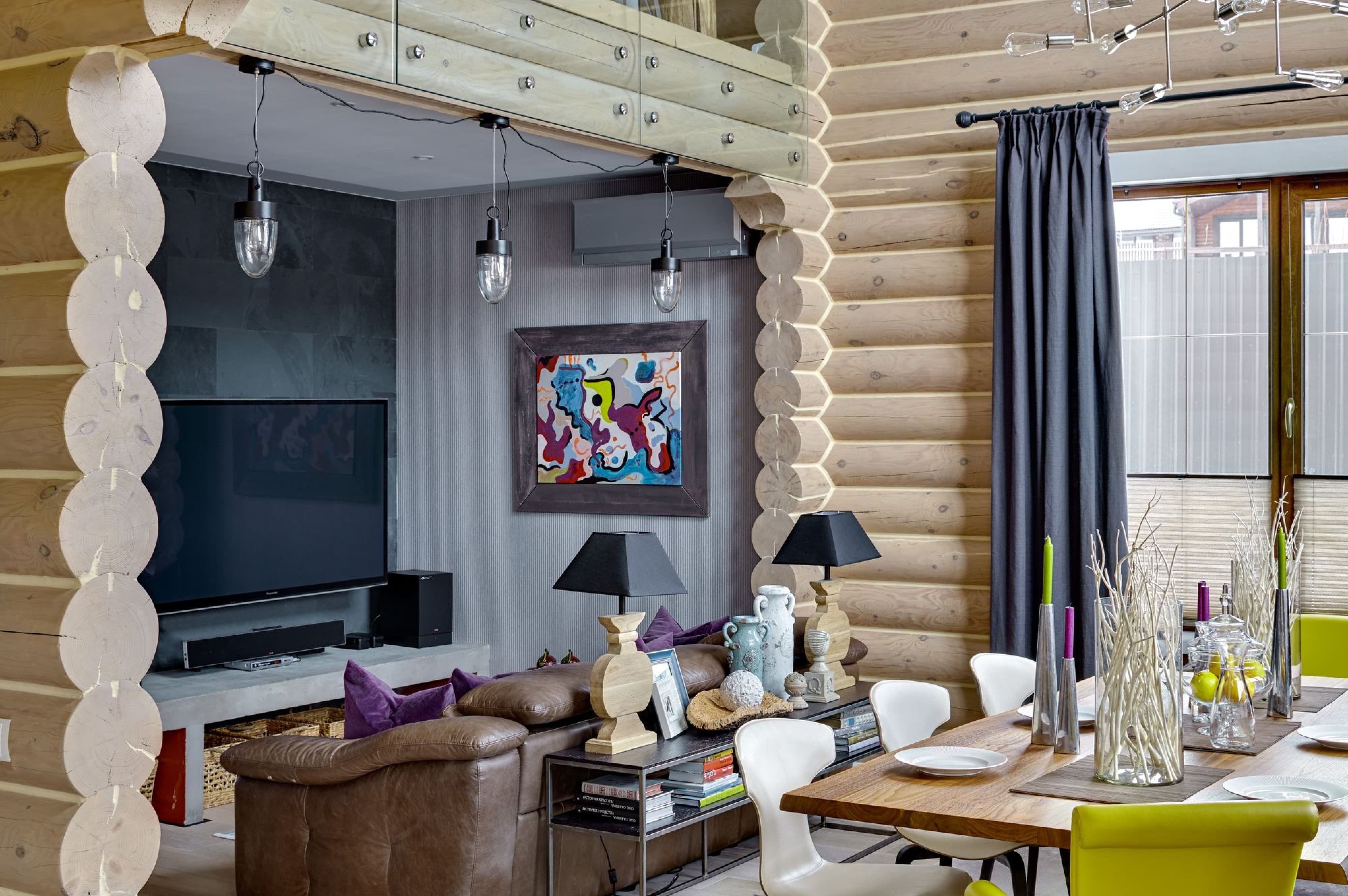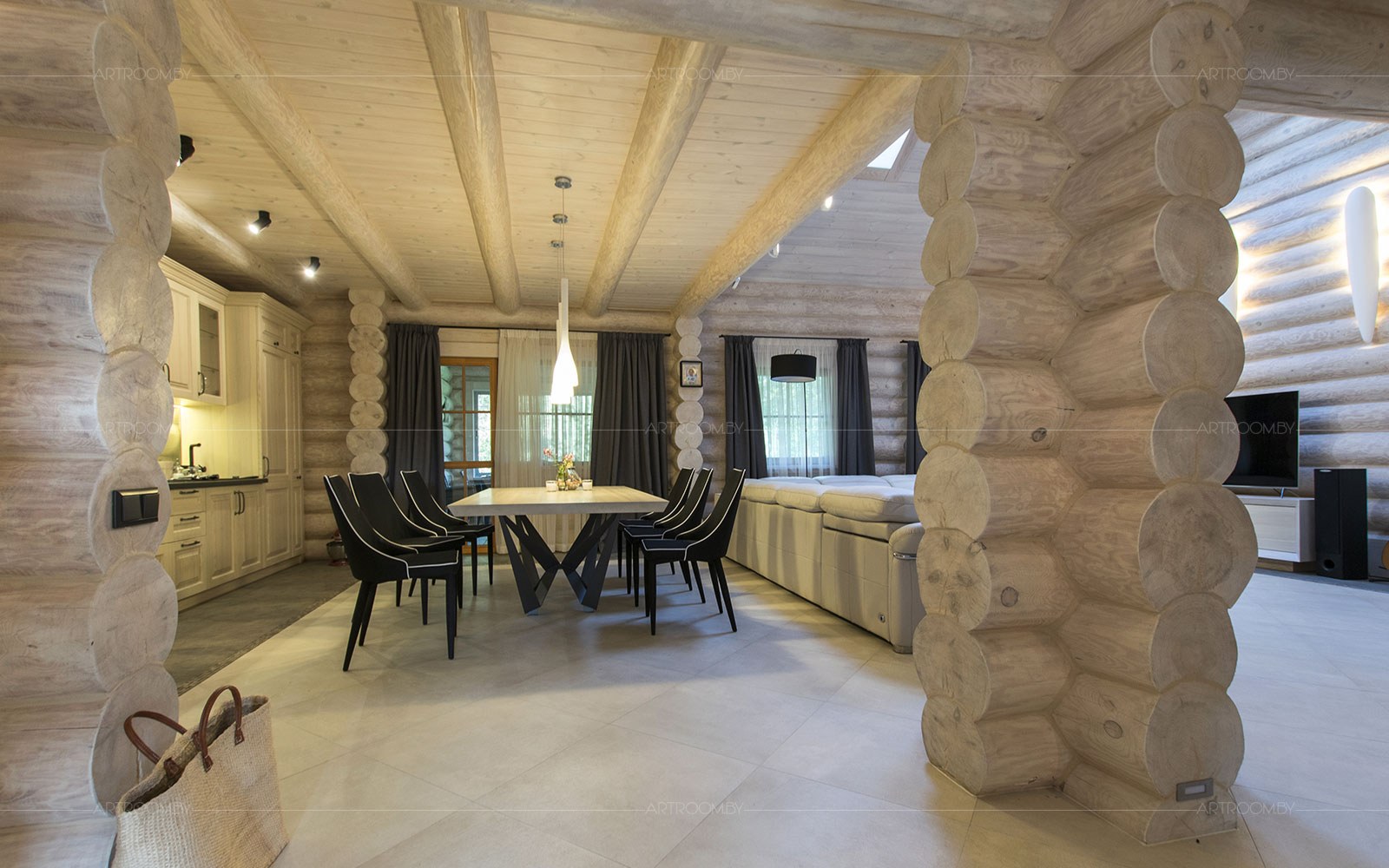 Дом из оцилиндрованного бревна интерьер стиль Кантри